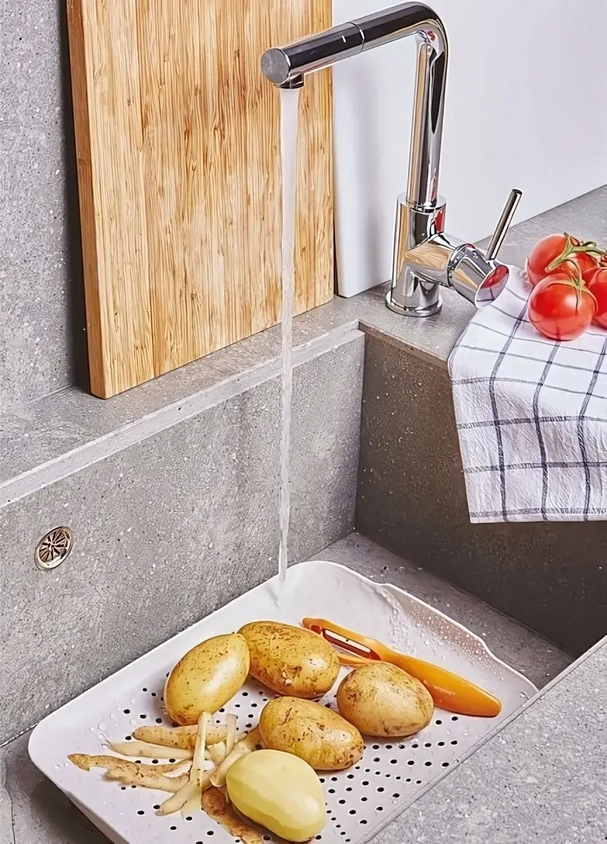 Сушилка-поддон предназначена для мытья и очистки овощей и фруктов. Она идеально подходит для домашнего использования, а также для профессиональных кухонь. Легкость в уходе — еще одно преимущество: поддон легко моется, в том числе в посудомоечной машине, что экономит ваше время и усилия.