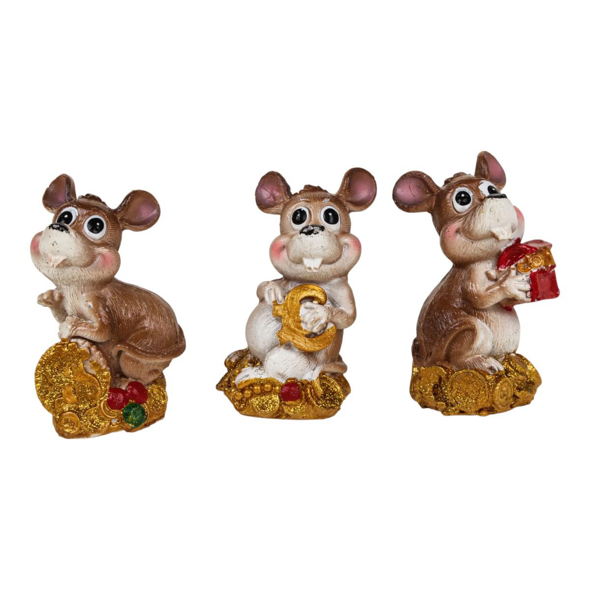 Сувенир мышь D-4457, коричневый, аксессуары: красная коробка, золотая монета, оригинальный декор для дома