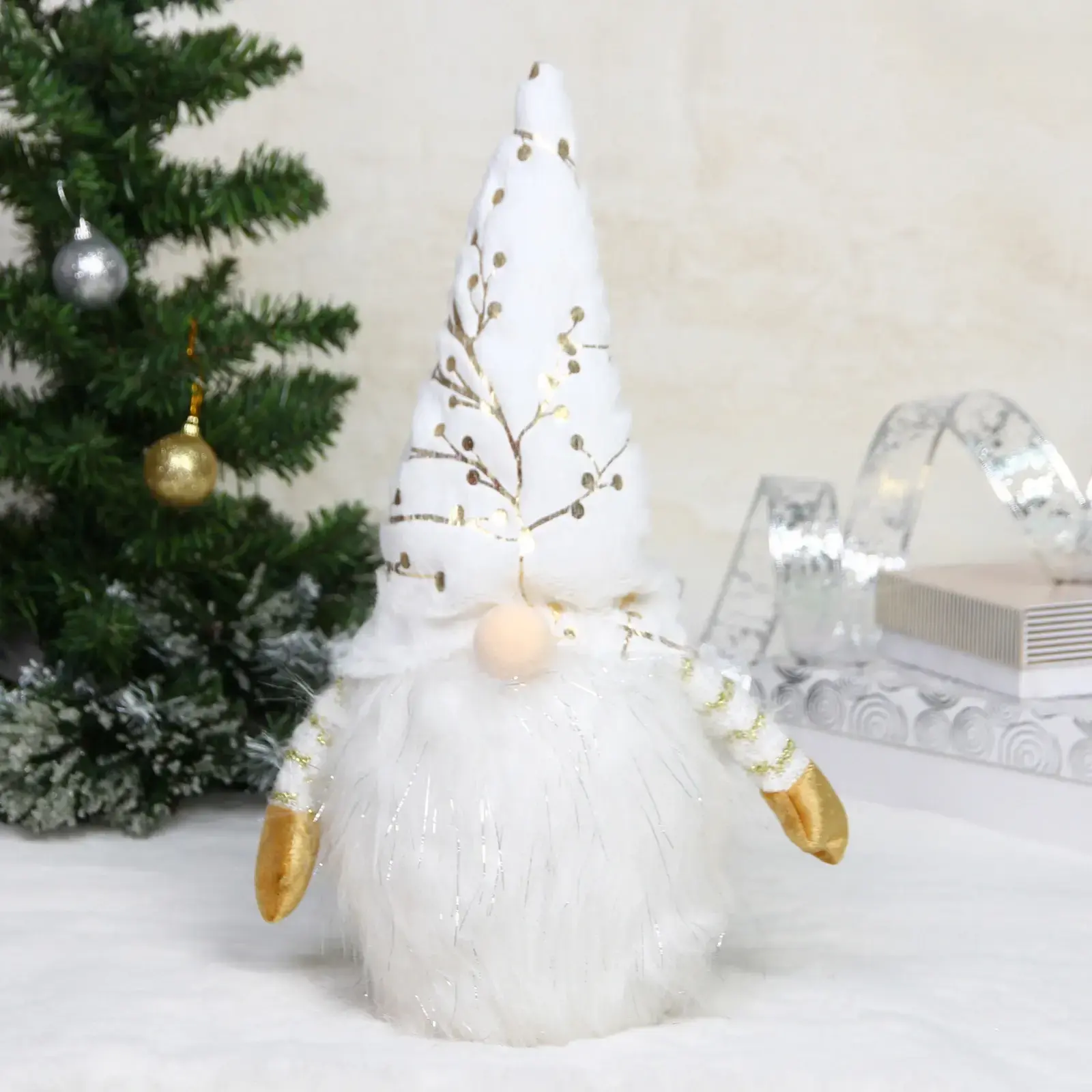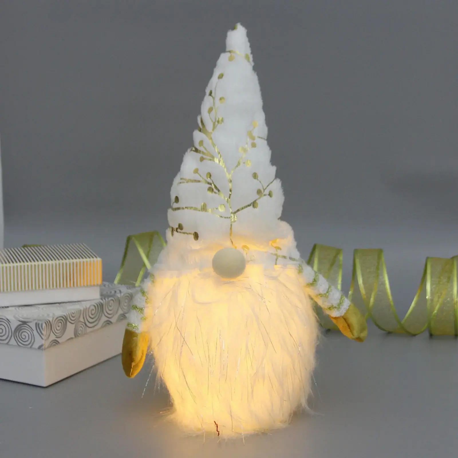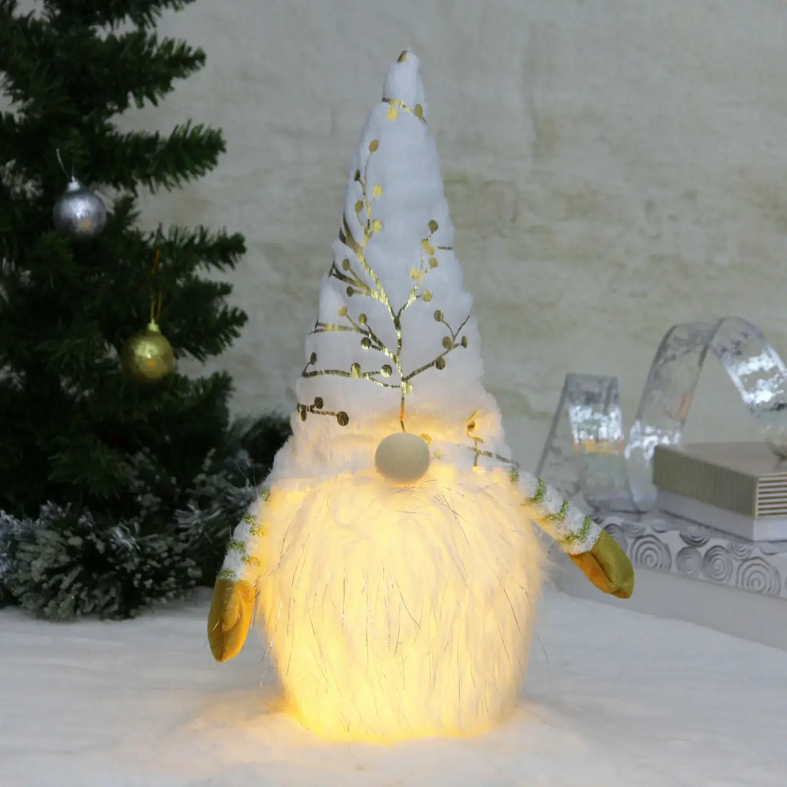 Новогодний гном "Лесовичок - Затейник" с подсветкой, 41*13 см, серебристо-белый