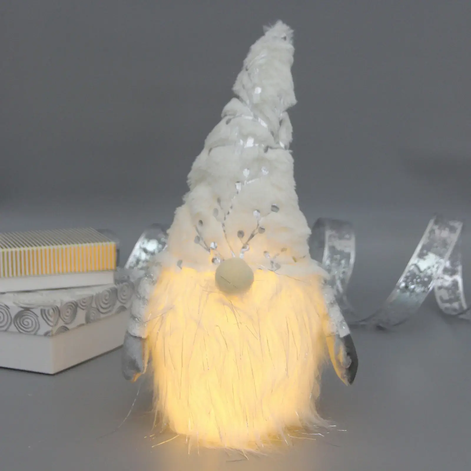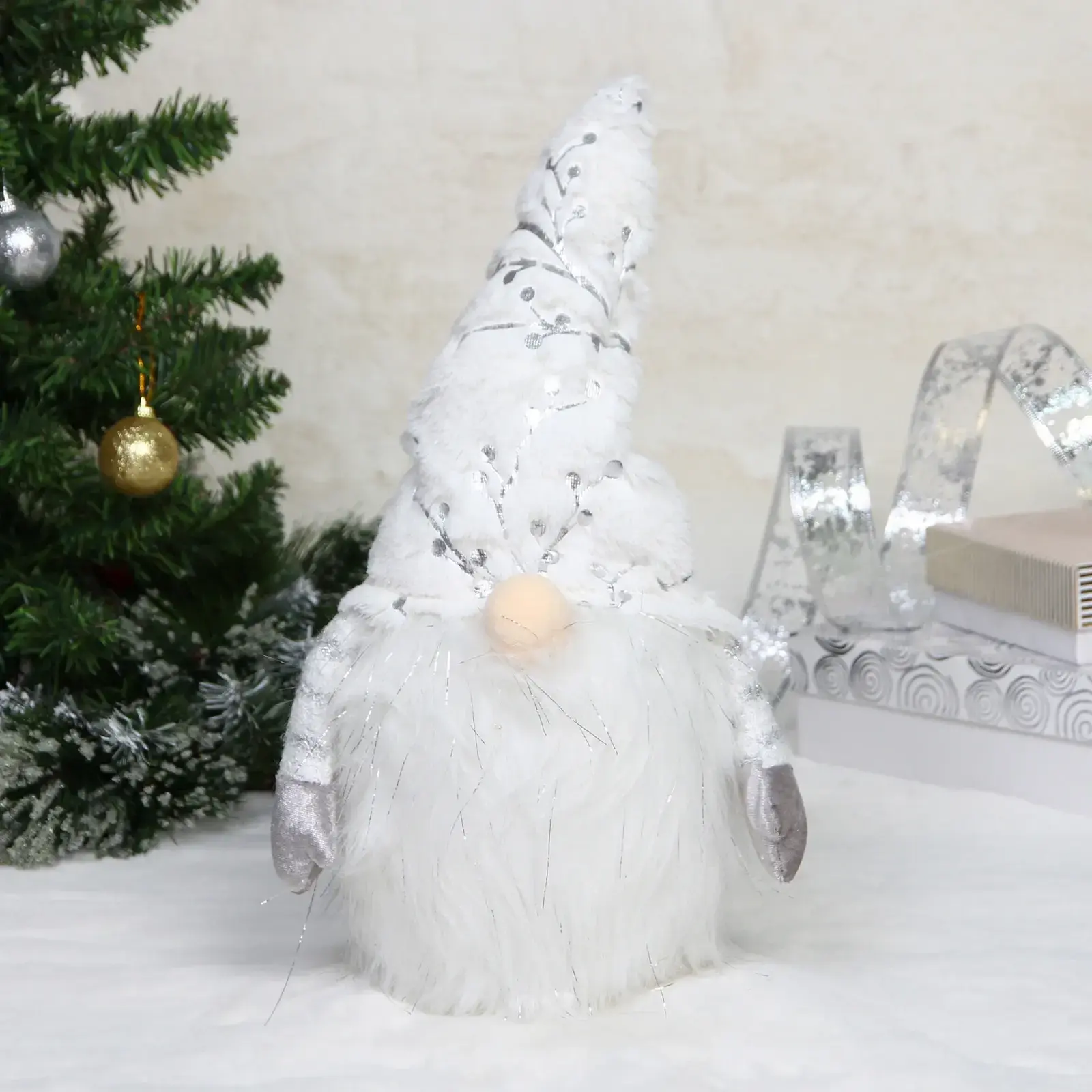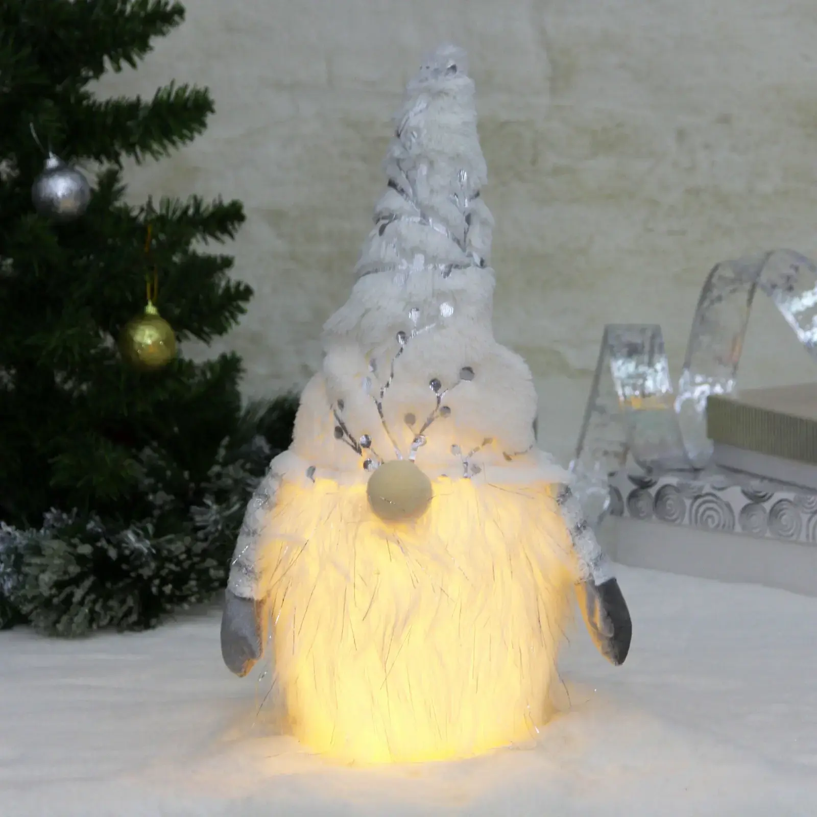 Декоративный гном с мягкой подсветкой станет главным акцентом вашего новогоднего интерьера. Тёплое свечение бороды создаёт уютное настроение, превращая обычный декор в живую сказку для взрослых и детей.