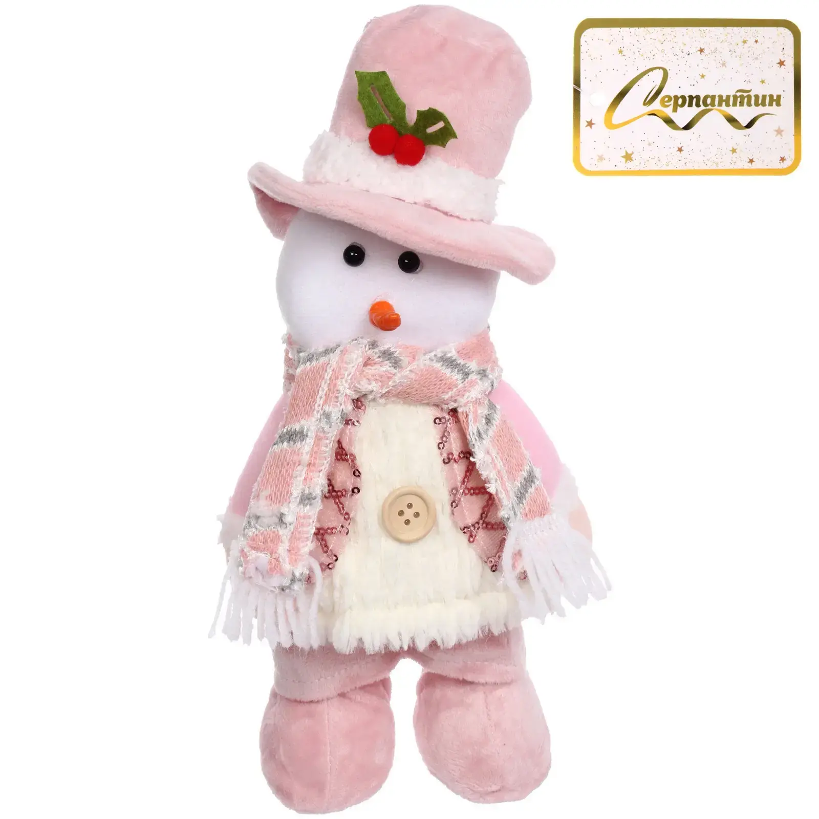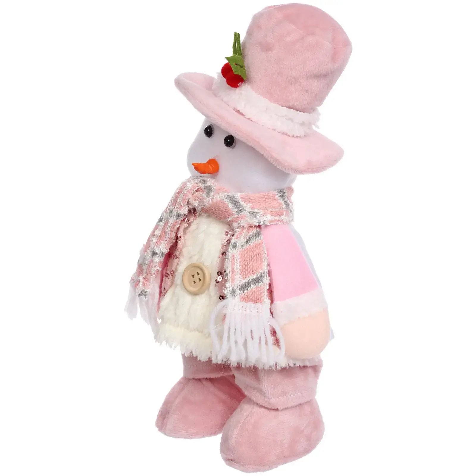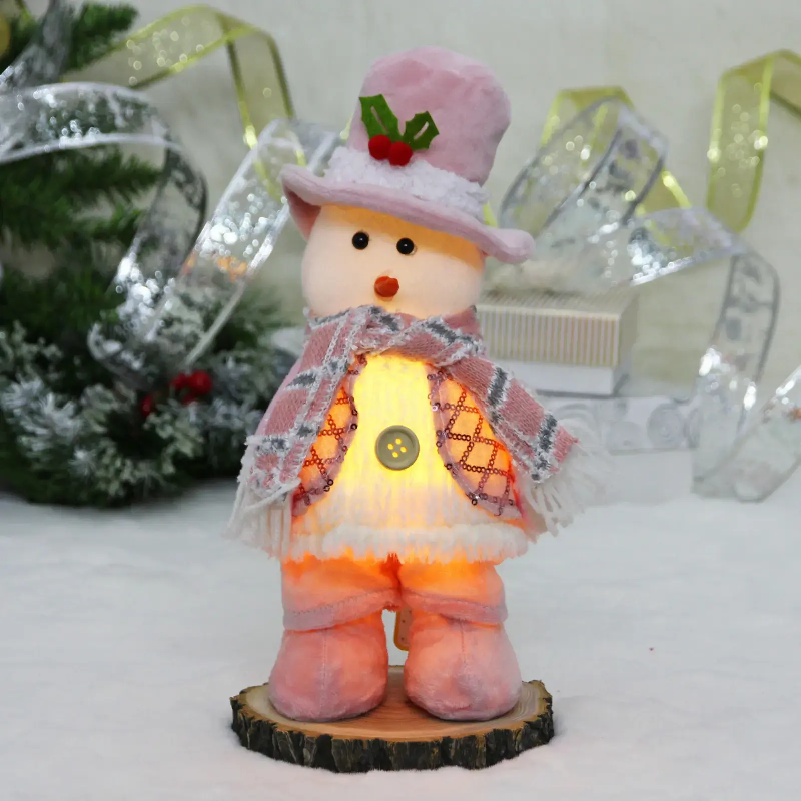 Светильник-снеговик «Новогоднее настроение» с подсветкой, розовый, пластик/текстиль, 14x30x8 см