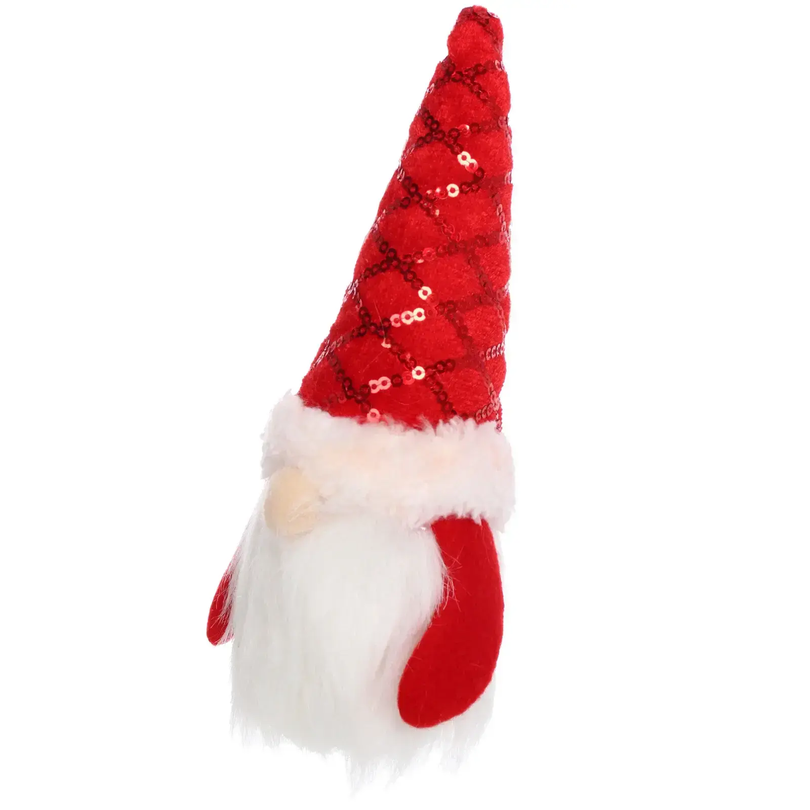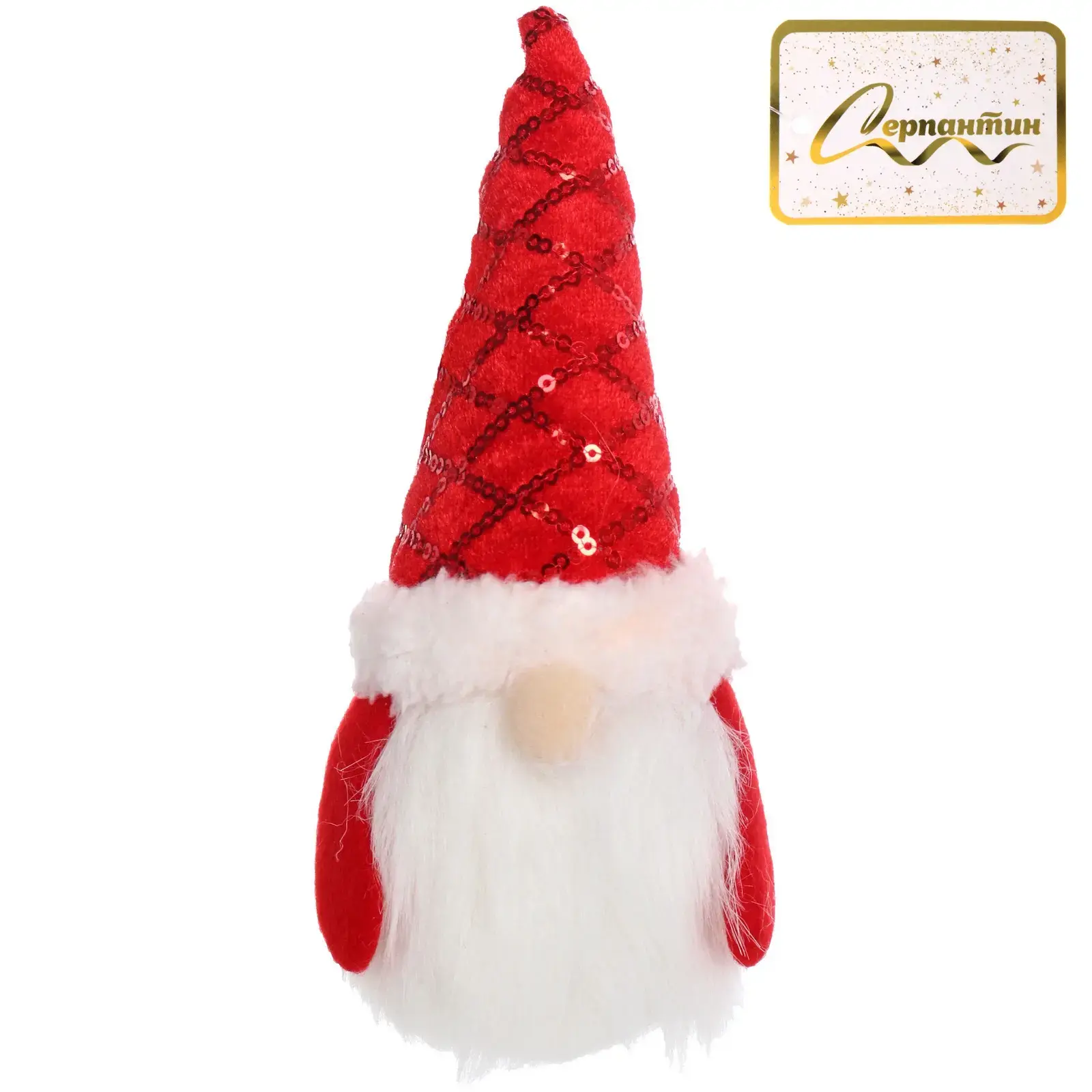 Сувенир выполнен в виде гнома с красной шляпой, украшенной пайетками, и белой бородой из мягкого материала. Он станет отличным подарком для друзей и близких, а также прекрасным дополнением к вашему новогоднему декору. Не упустите возможность добавить этот уникальный элемент в вашу коллекцию праздничных украшений!