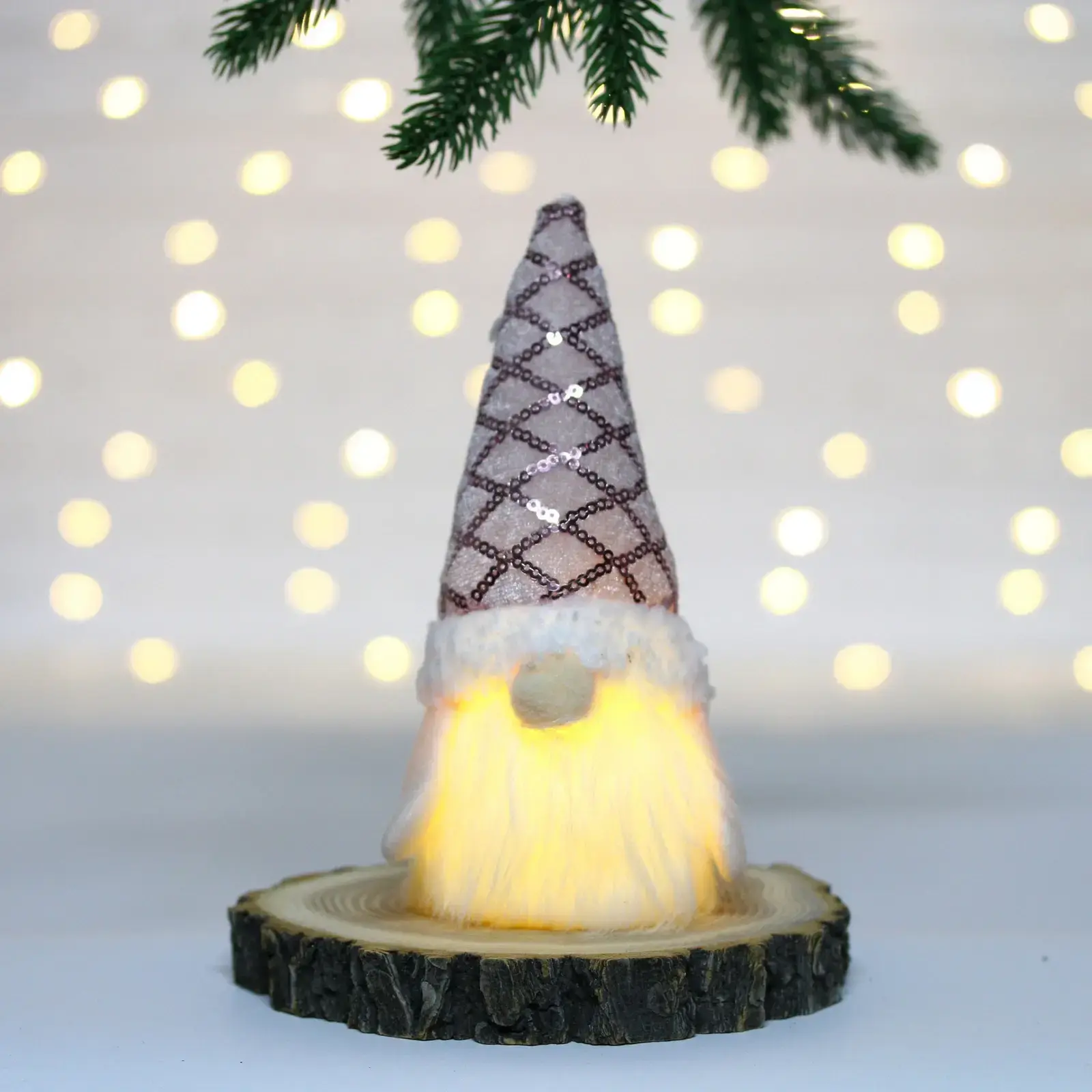 Декоративная фигурка «Новогодний лесовичок» с подсветкой, розовая, пластик/текстиль, 7х15х5 см