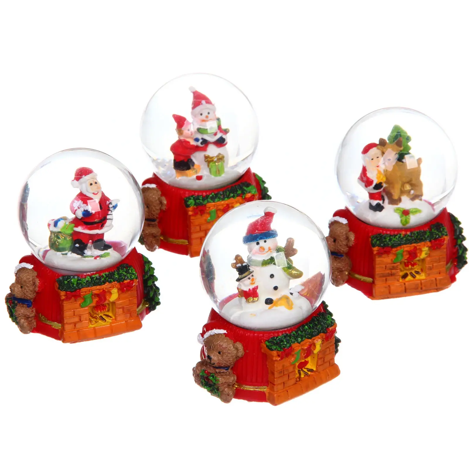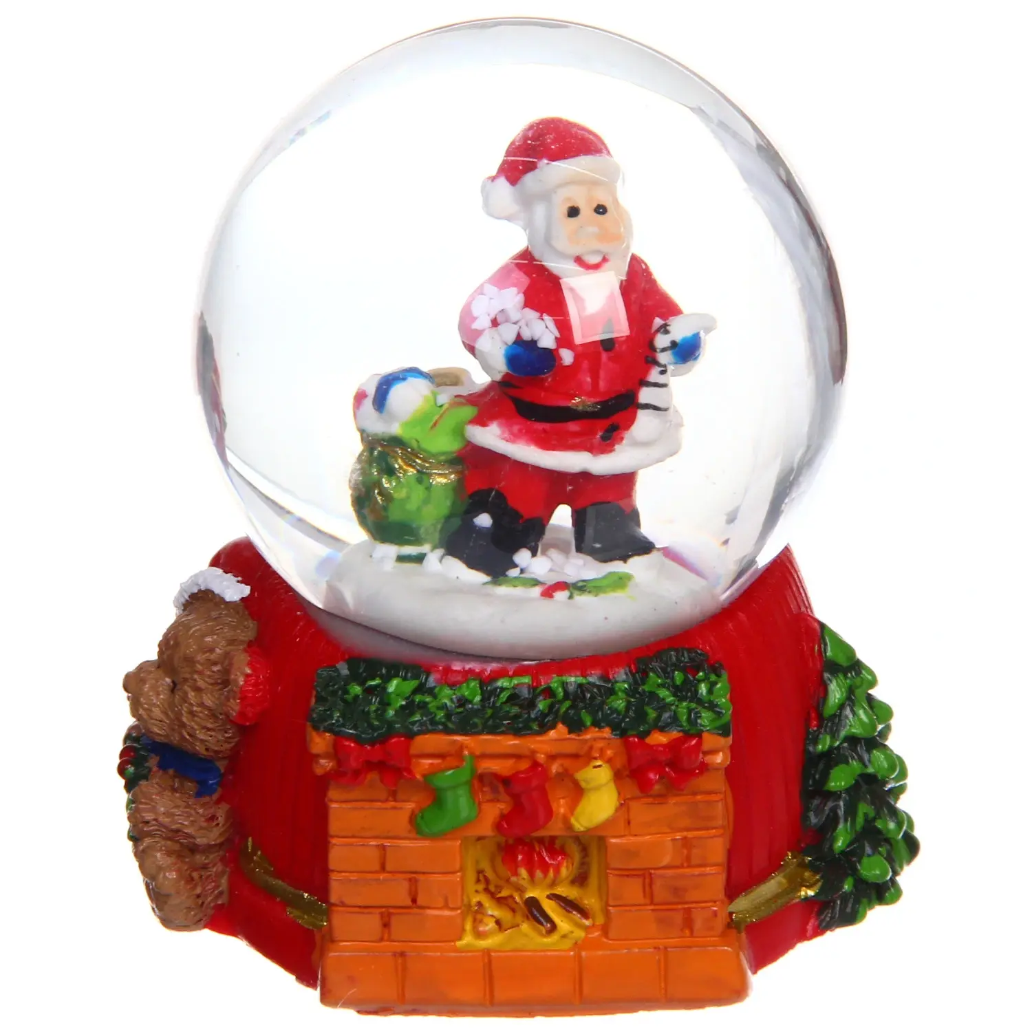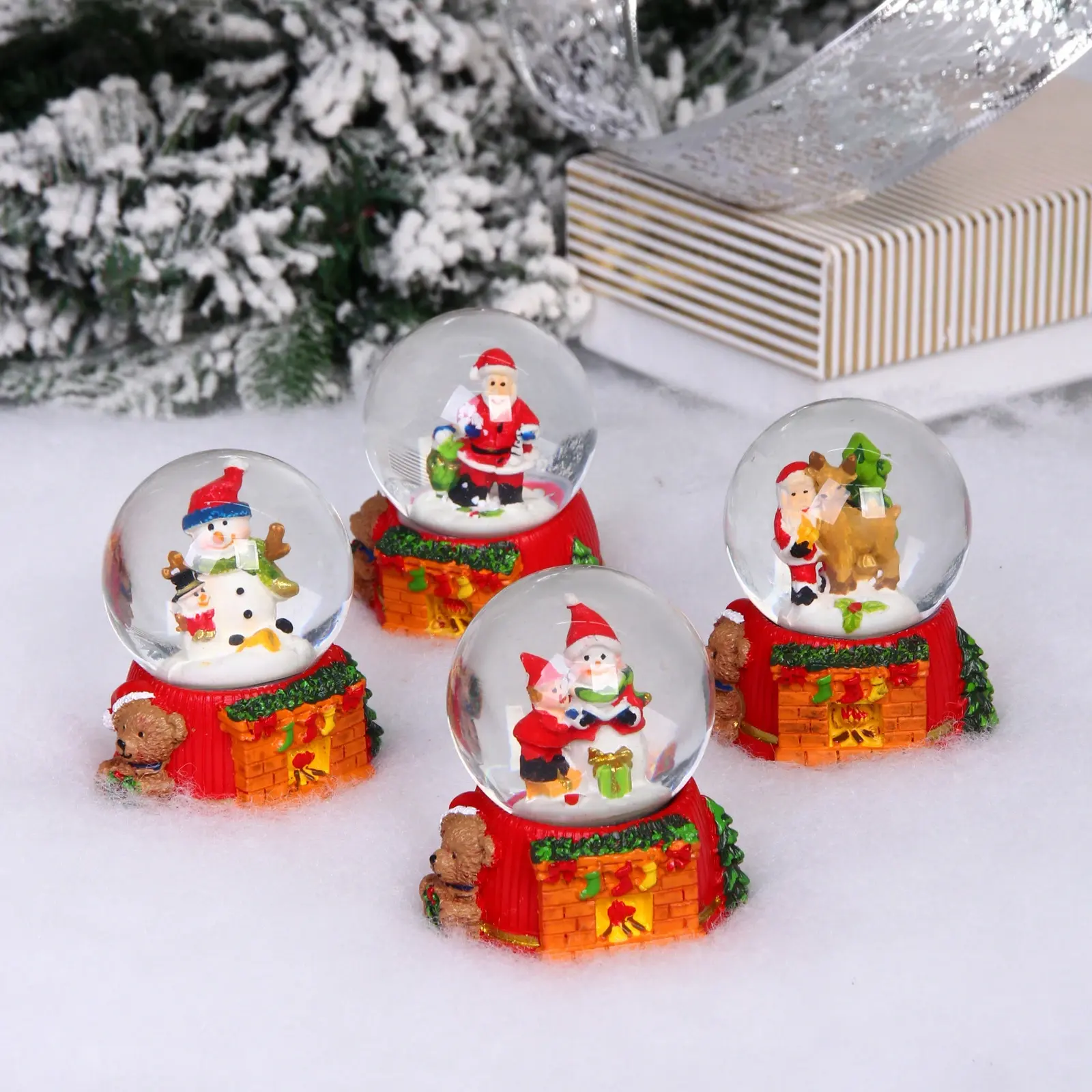 Этот снежный шар предназначен для праздничных интерьеров, подарков и новогодних композиции. Он подходит как для дома, так и для офиса, добавляя зимний стиль и настроение. Внутри расположены фигуры персонажей — снеговики, Санта-Клаусы, олени и другие тематические элементы, выполненные из полистоуна и стекла. Основание — декоративное, выполнено из пластика или полимера, с элементами украшения в зимней тематике.