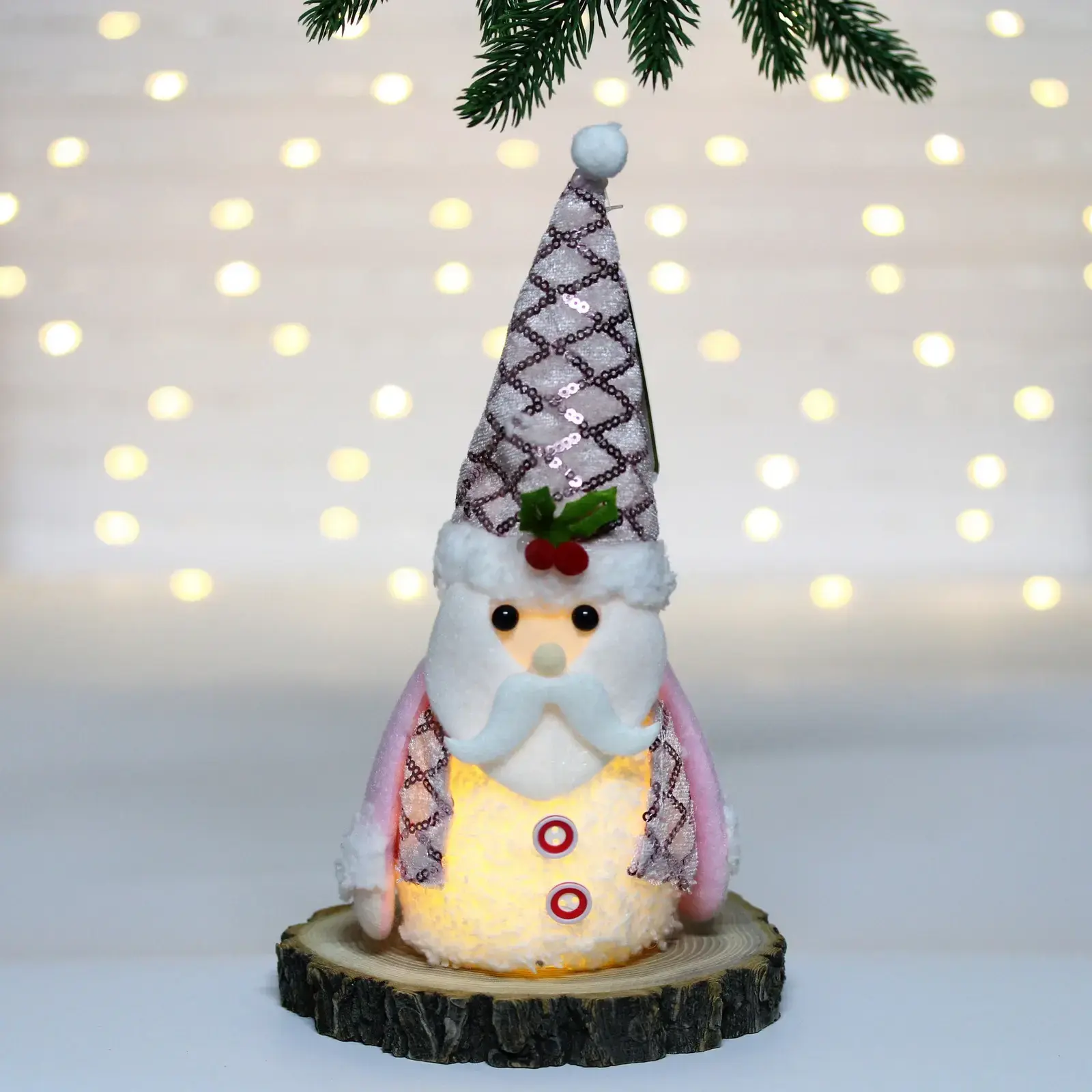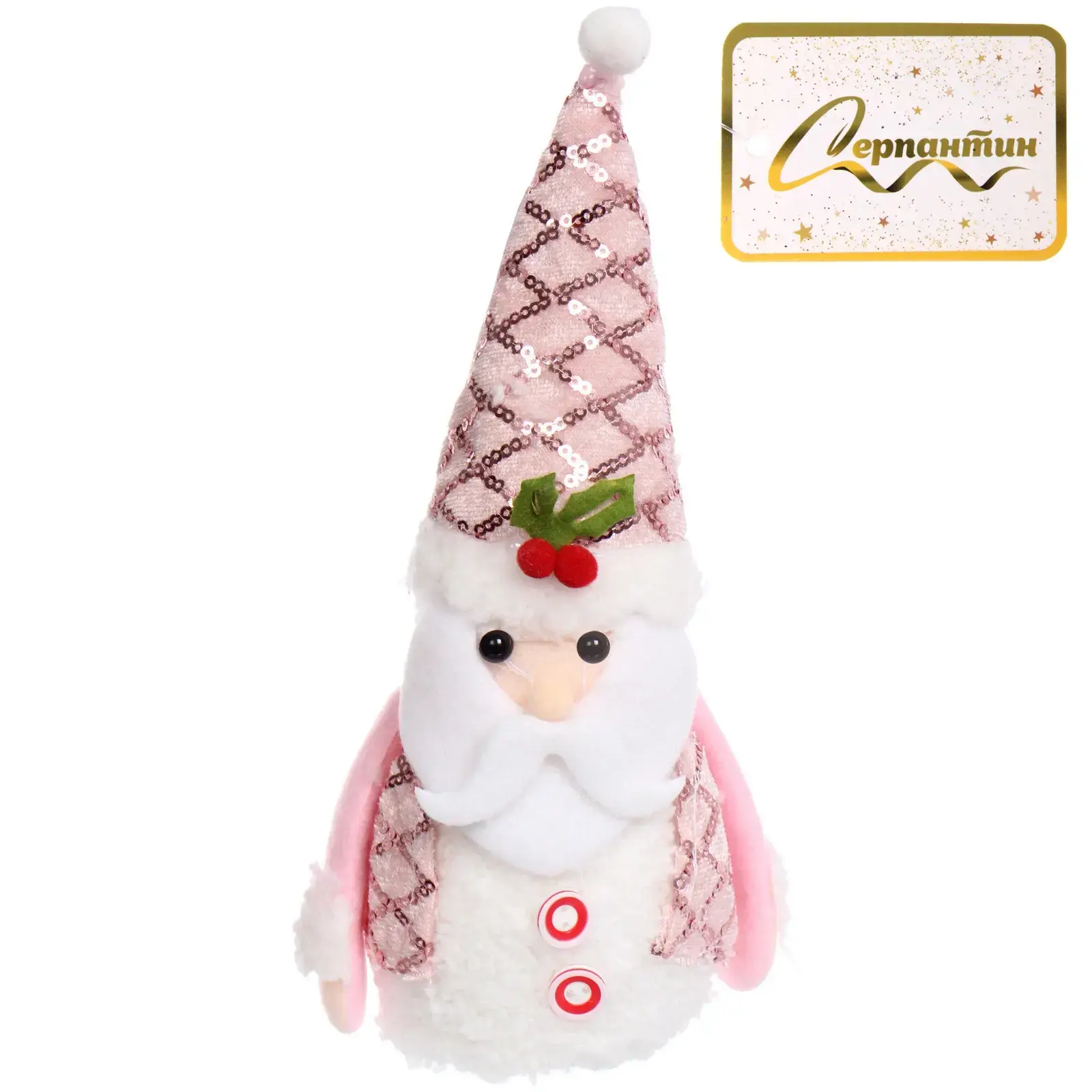 Фигурка новогодняя «Веселое настроение»: Дед Мороз с подсветкой, розовый, пластик и текстиль, 12х23х6,5 см