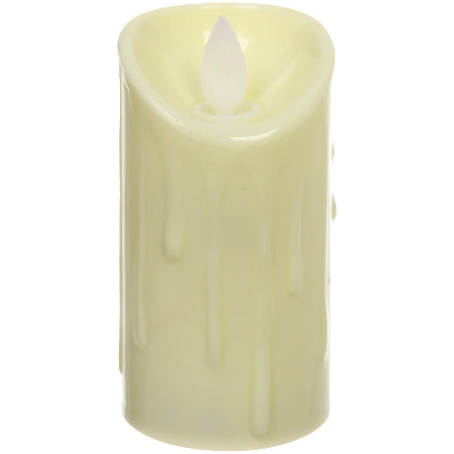 Практические детали: размеры – диаметр 5 см, высота 9 см; материал — пластиковый корпус, внутренняя подсветка LED, питание — батарейки, легко заменяемые. Дизайн в стиле классической свечи с фактурой, имитирующей капли воска и пламя, создаёт мягкое освещение и уютную атмосферу.