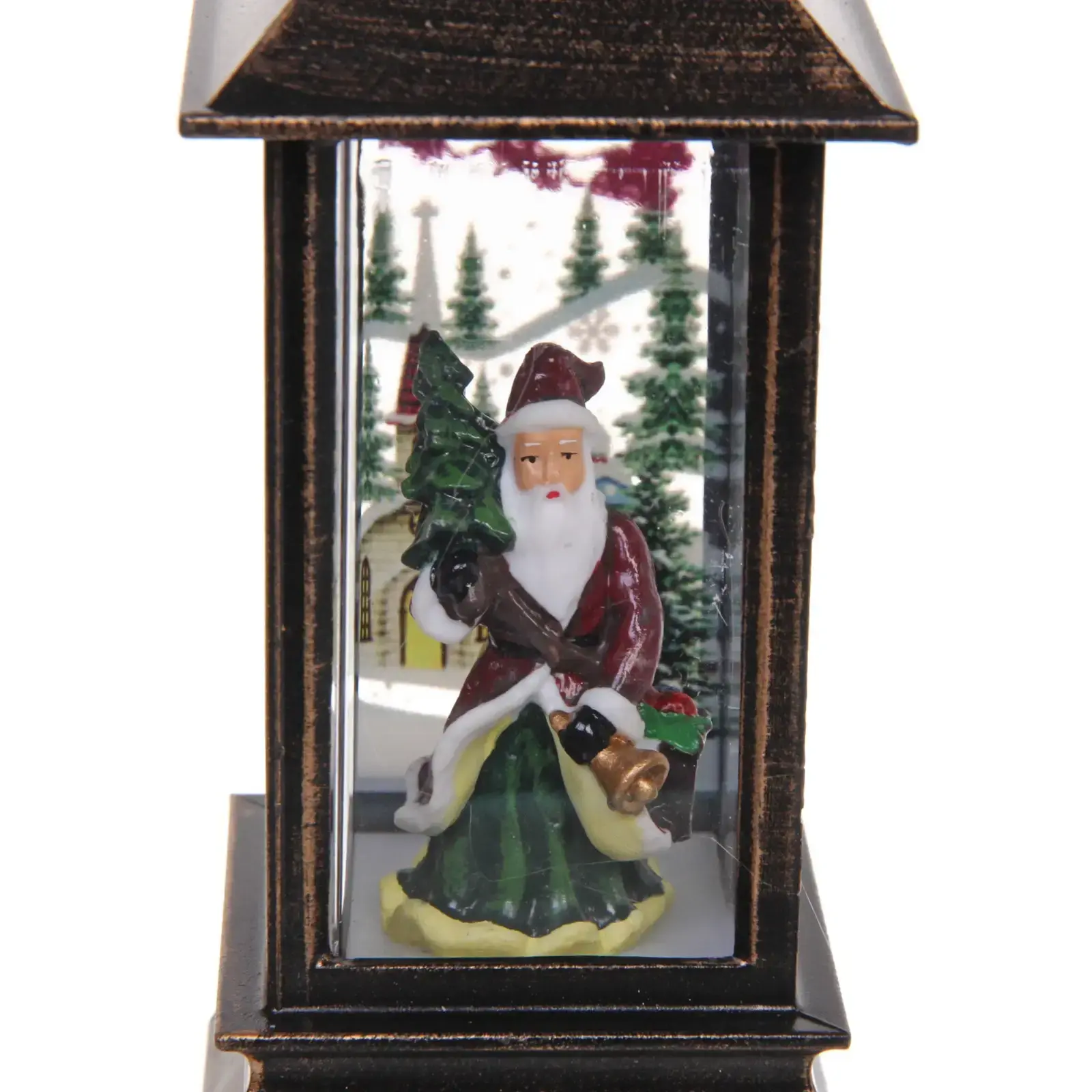 Размеры сувенира составляют 12,5 см в высоту, 5,5 см в ширину и 5 см в глубину, что делает его компактным и легким для размещения. Стеклянные стенки фонаря позволяют наслаждаться красивым внутренним оформлением, а металлическая рамка придает изделию стильный вид. Этот сувенир станет отличным акцентом в вашем новогоднем декоре и создаст атмосферу волшебства и радости.