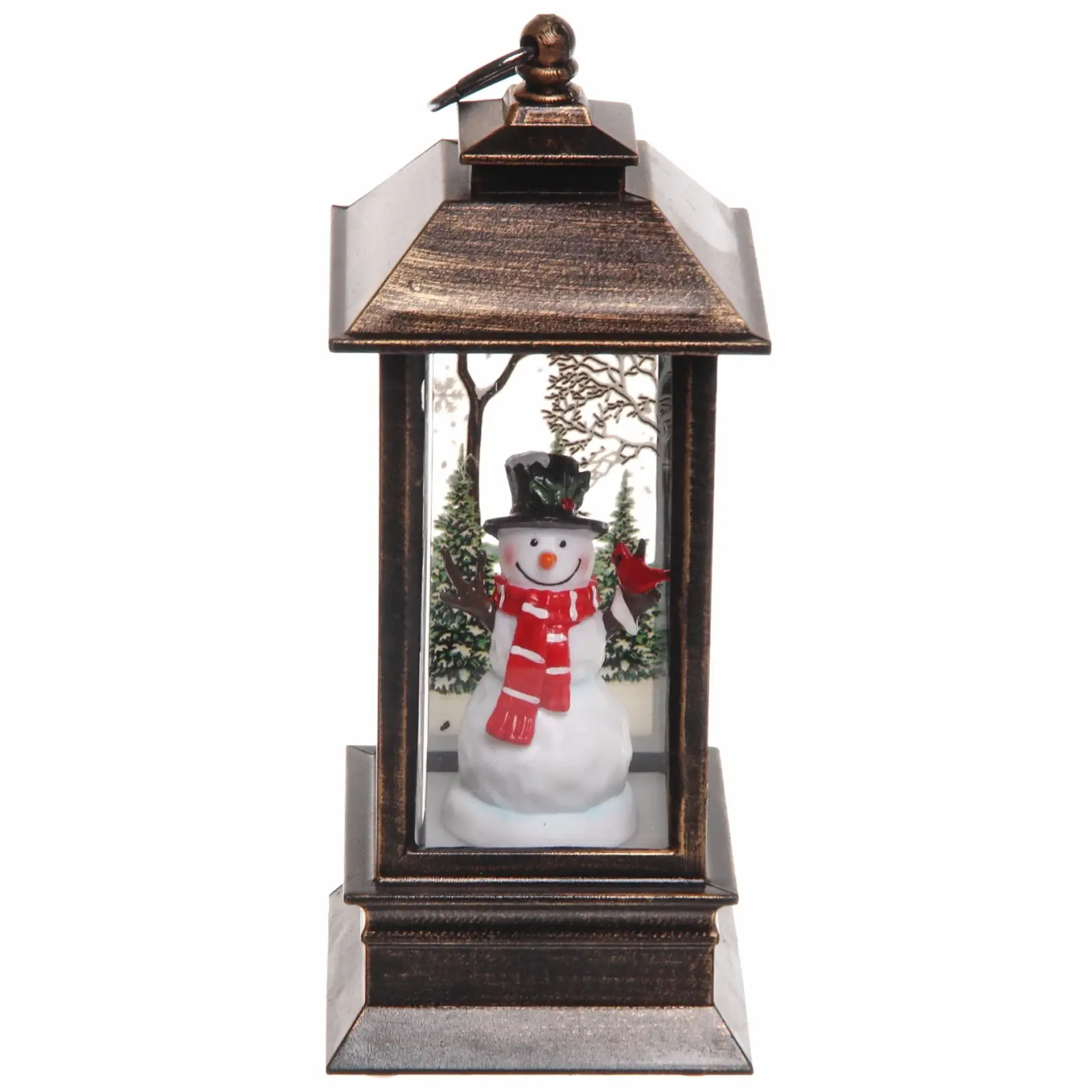 Обратите внимание, что внутри — светильник с фигуркой снеговика, которая оживляет любой уголок дома, дополняя рождественские украшения. Уникальный дизайн и световая подсветка позволяют использовать его как самостоятельный декор или часть более крупной композиции.