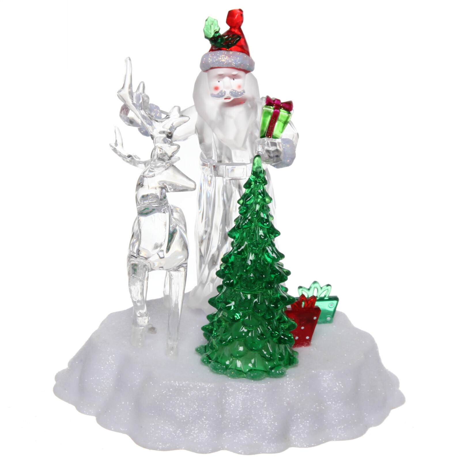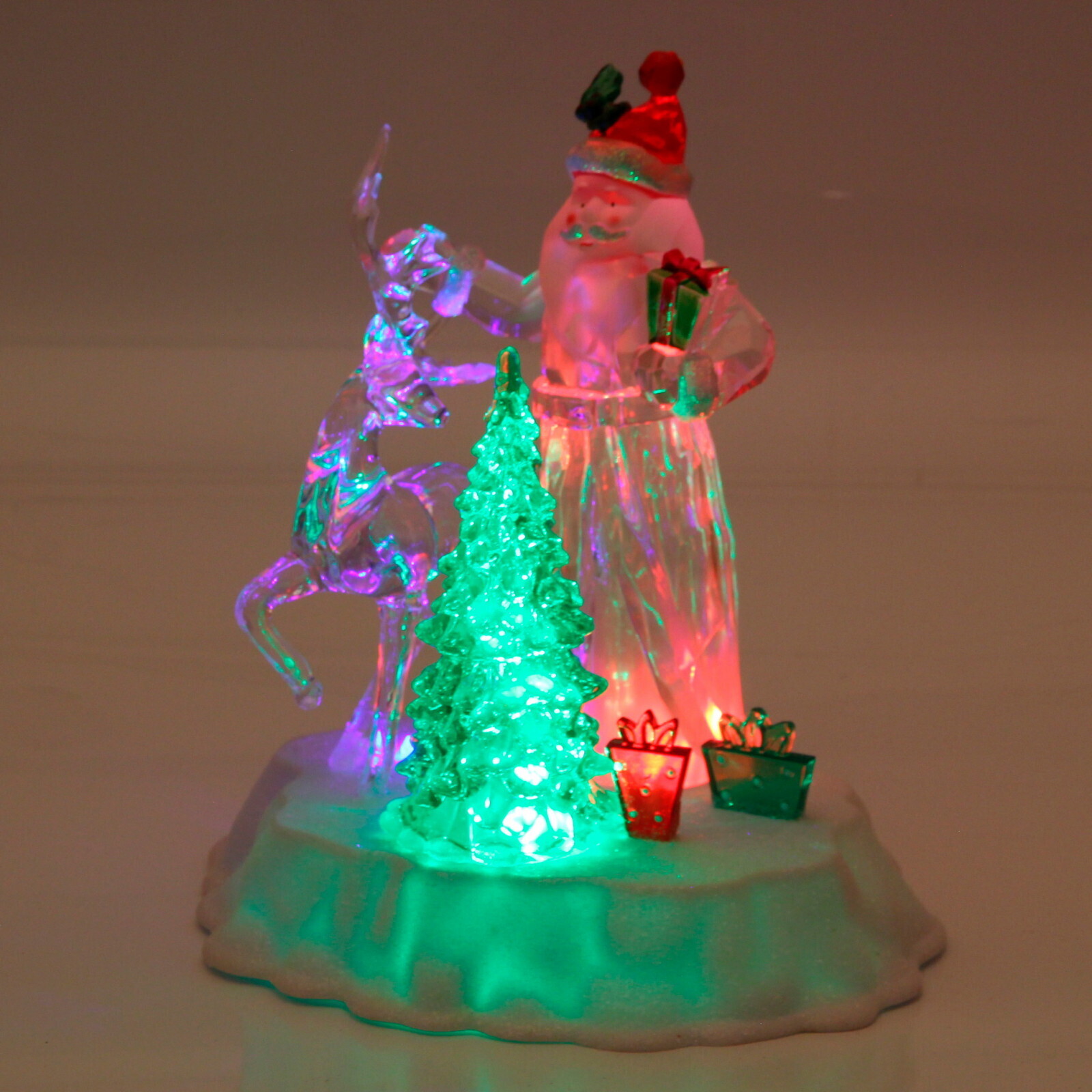 Этот удивительный сувенир с подсветкой станет ярким акцентом вашего новогоднего декора. Он наполнит ваш дом атмосферой праздника и уюта, создавая незабываемые моменты для вас и ваших близких. С фигурками Санта-Клауса и оленя, выполненными из прозрачного материала, этот сувенир выглядит особенно эффектно, когда включается подсветка, создавая игру цветных огней.