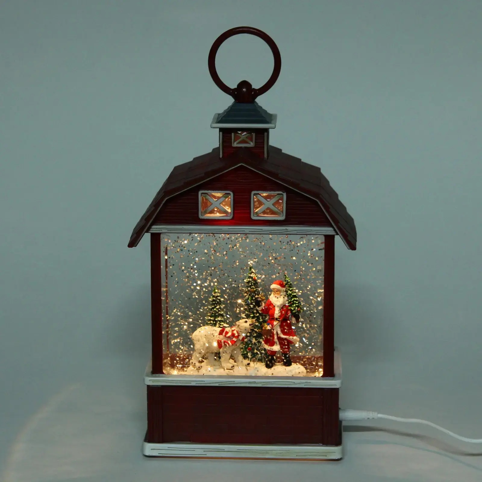 Сувенир работает как от 3 батареек типа AA, так и от USB, что делает его удобным в использовании. Вы можете разместить его на столе, полке или повесить на стену благодаря специальному кольцу. Он отлично подходит для создания новогоднего декора, а также станет замечательным подарком для близких и друзей.