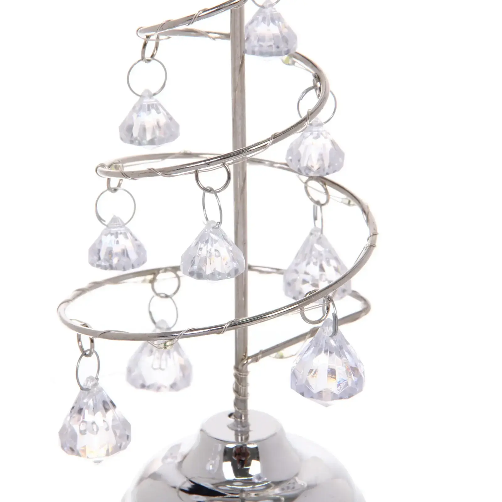 Елочка декоративная с подсветкой "Хрустальная", 18см, диаметр 8см, серебро/белый