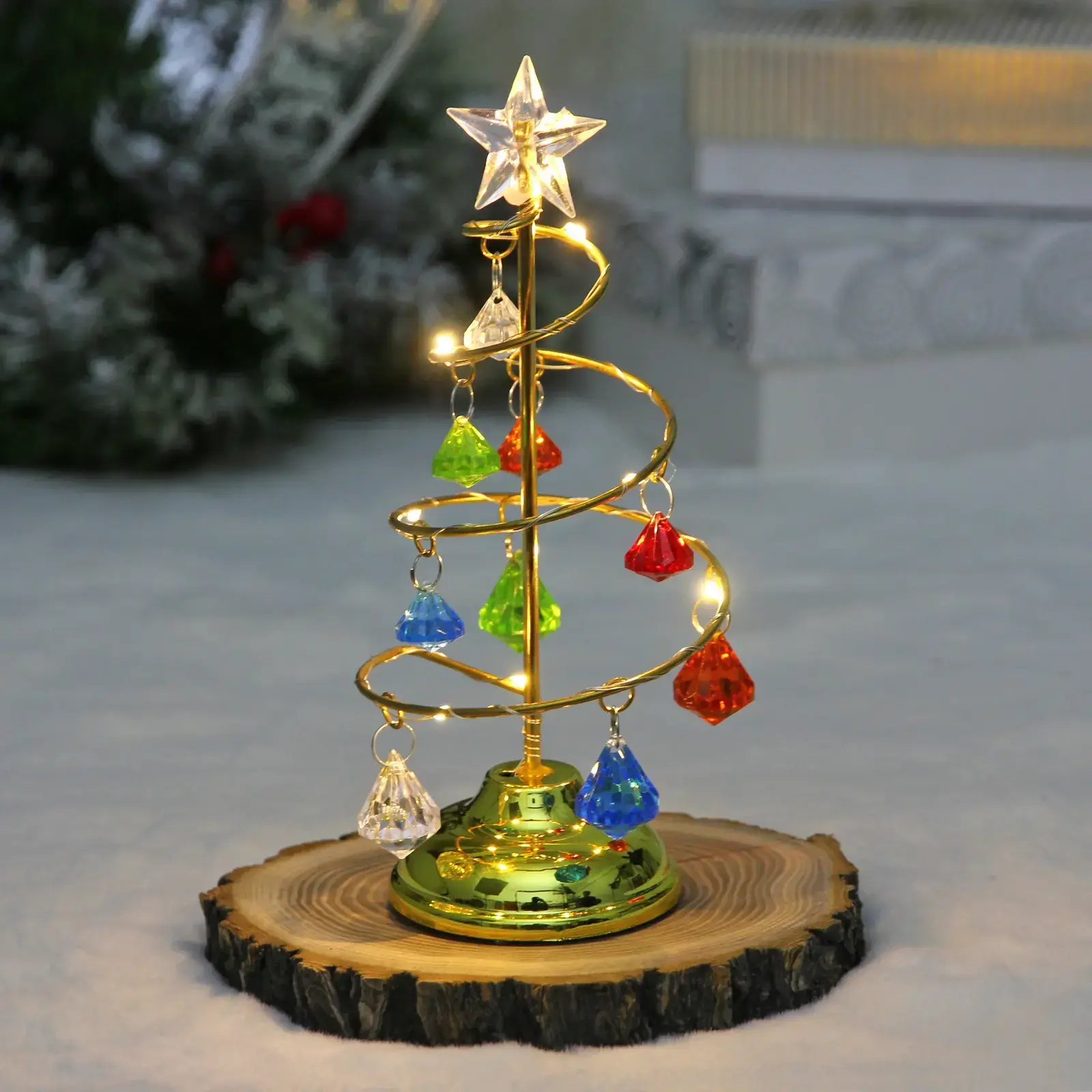 Сувенир имеет спиралевидную форму и украшен разноцветными подвесками, что делает его не только источником света, но и стильным элементом декора. Основание выполнено в золотом цвете, что подчеркивает его праздничный вид. «Елочка Хрустальная» станет настоящим украшением вашего дома в новогодние праздники и создаст атмосферу волшебства и уюта.