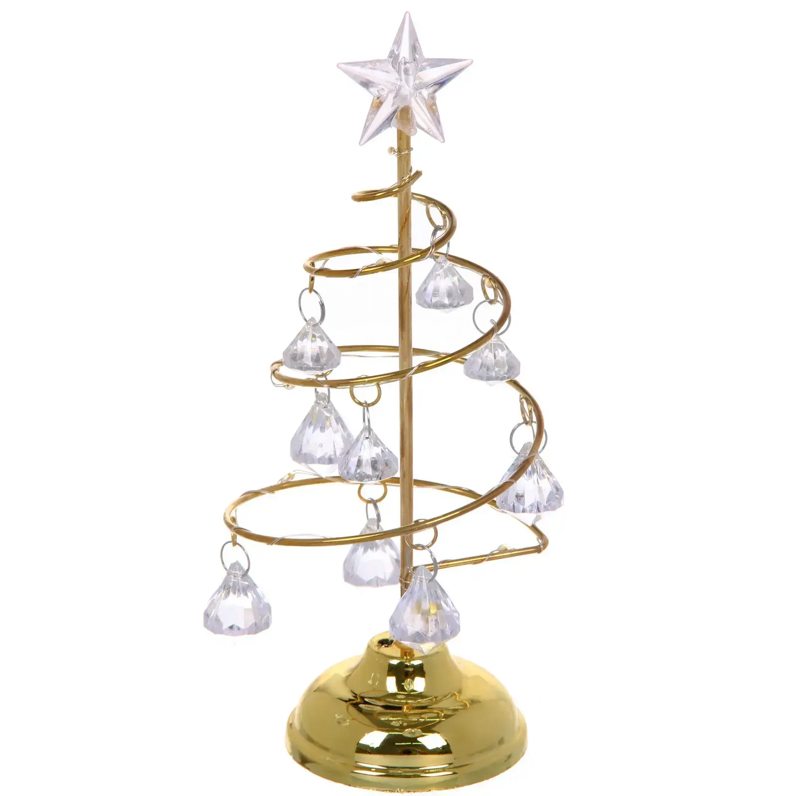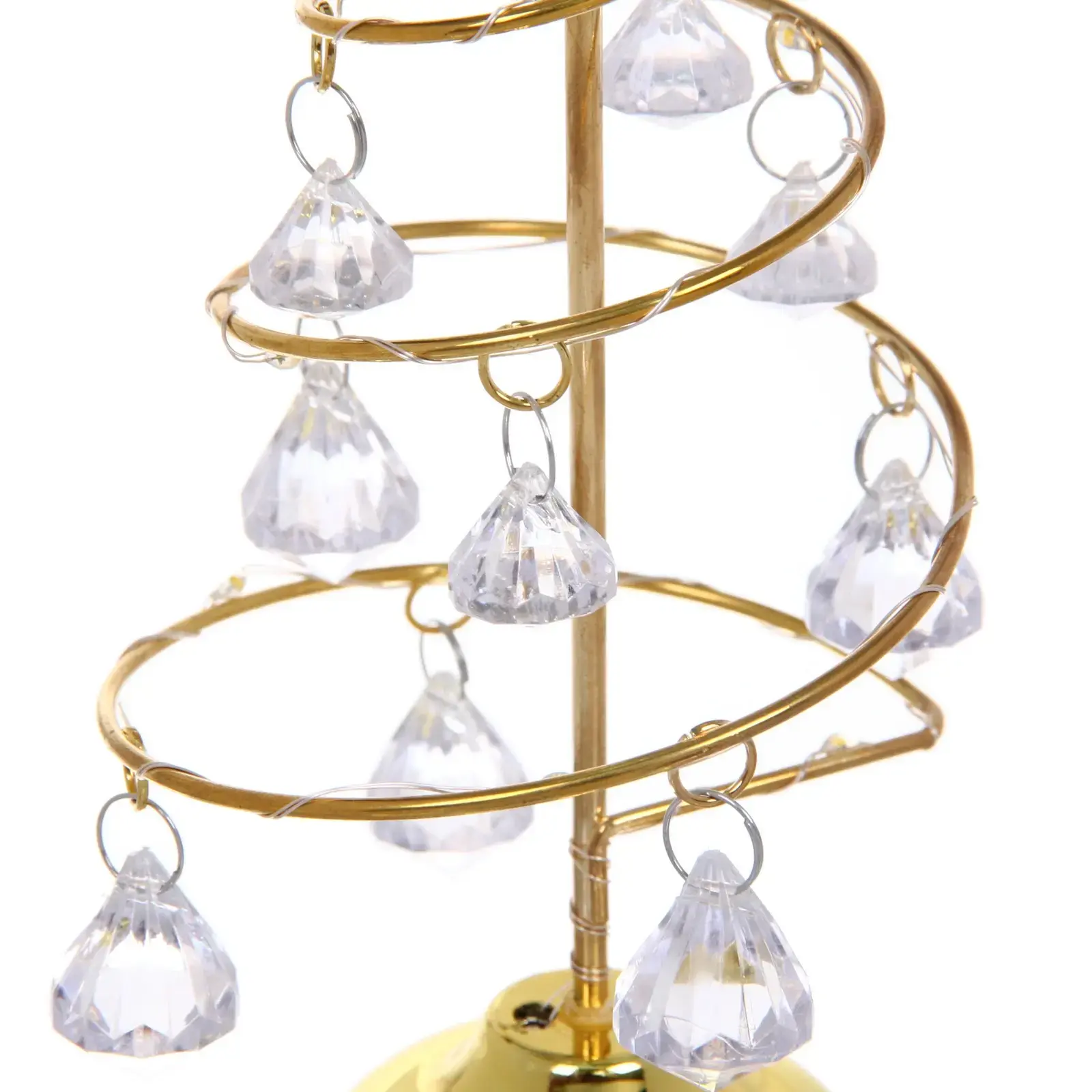 Елочка хрустальная с подсветкой 18см, диаметр 8см, основание золото, теплый свет