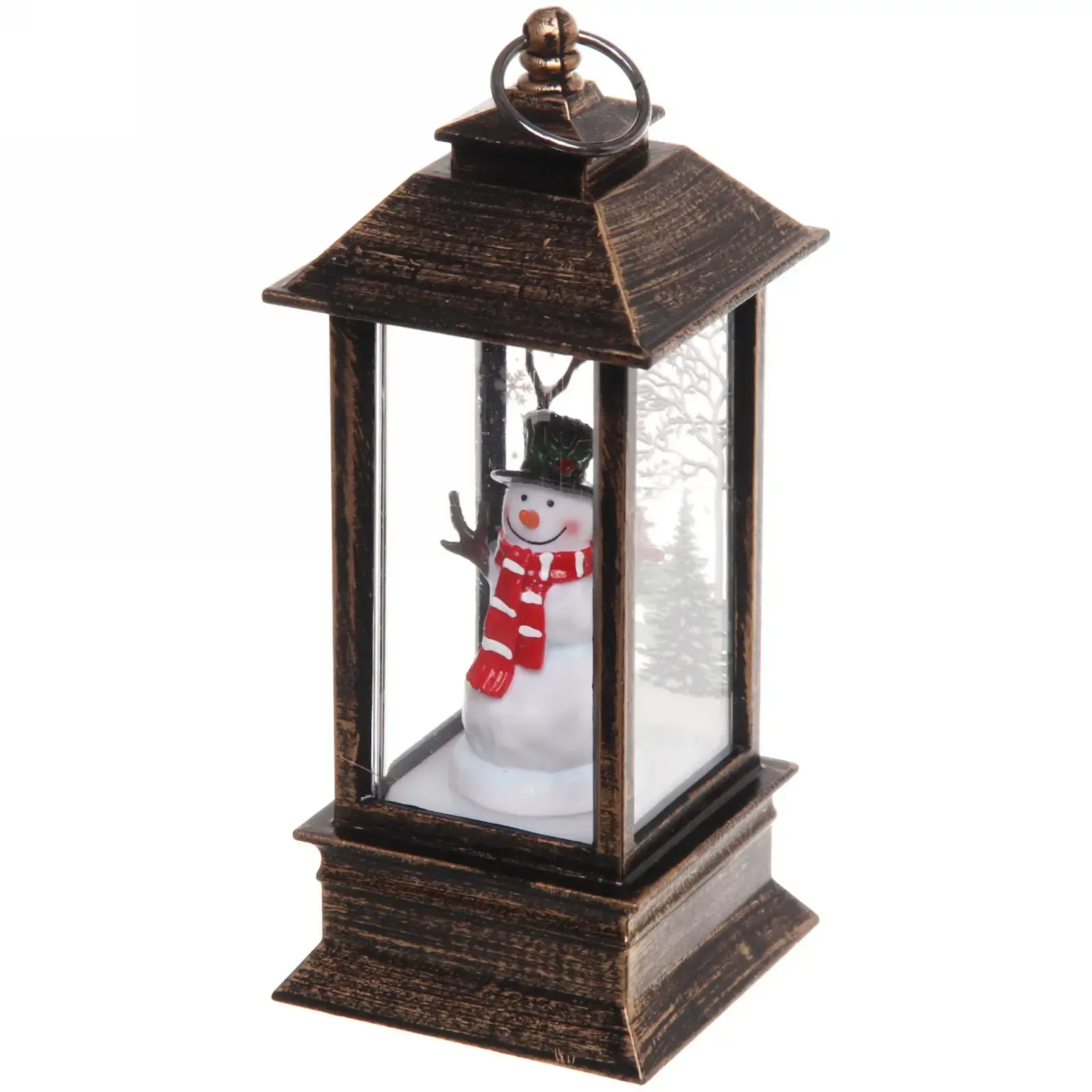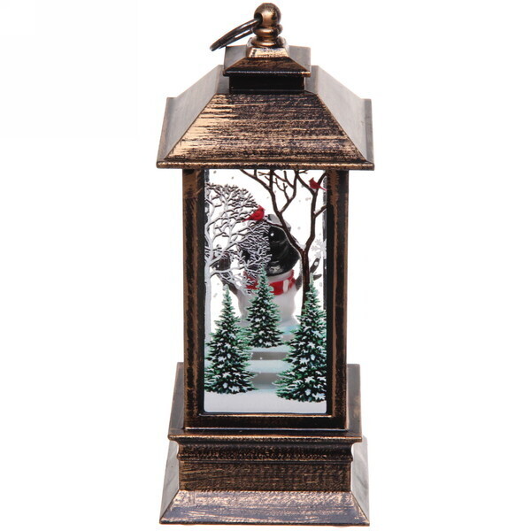 Фонарь имеет размеры 5,3 см в ширину, 5,3 см в глубину и 12,5 см в высоту. Он выполнен в бронзовом цвете, что придает ему антикварный вид. Внутри фонаря находится снеговик, который держит в руке красную птичку, а также элементы зимнего пейзажа, что делает его еще более привлекательным. Этот фонарь станет отличным подарком для друзей и родных, а также прекрасным дополнением к вашему новогоднему декору.