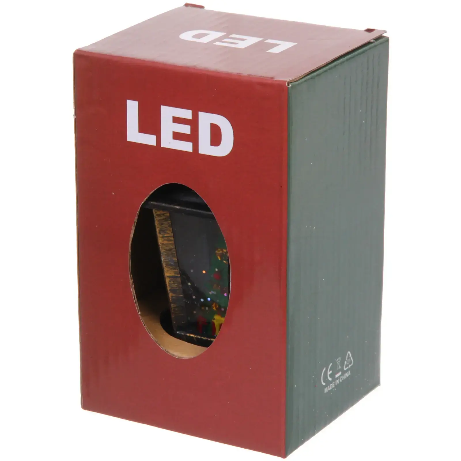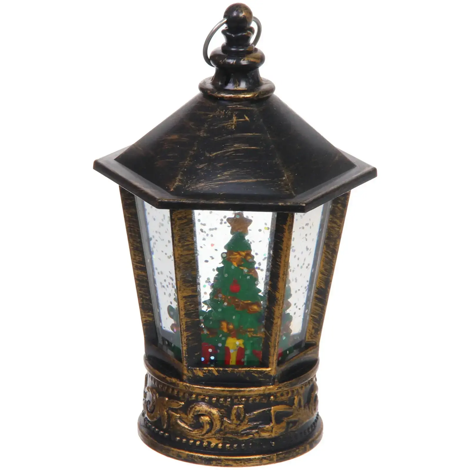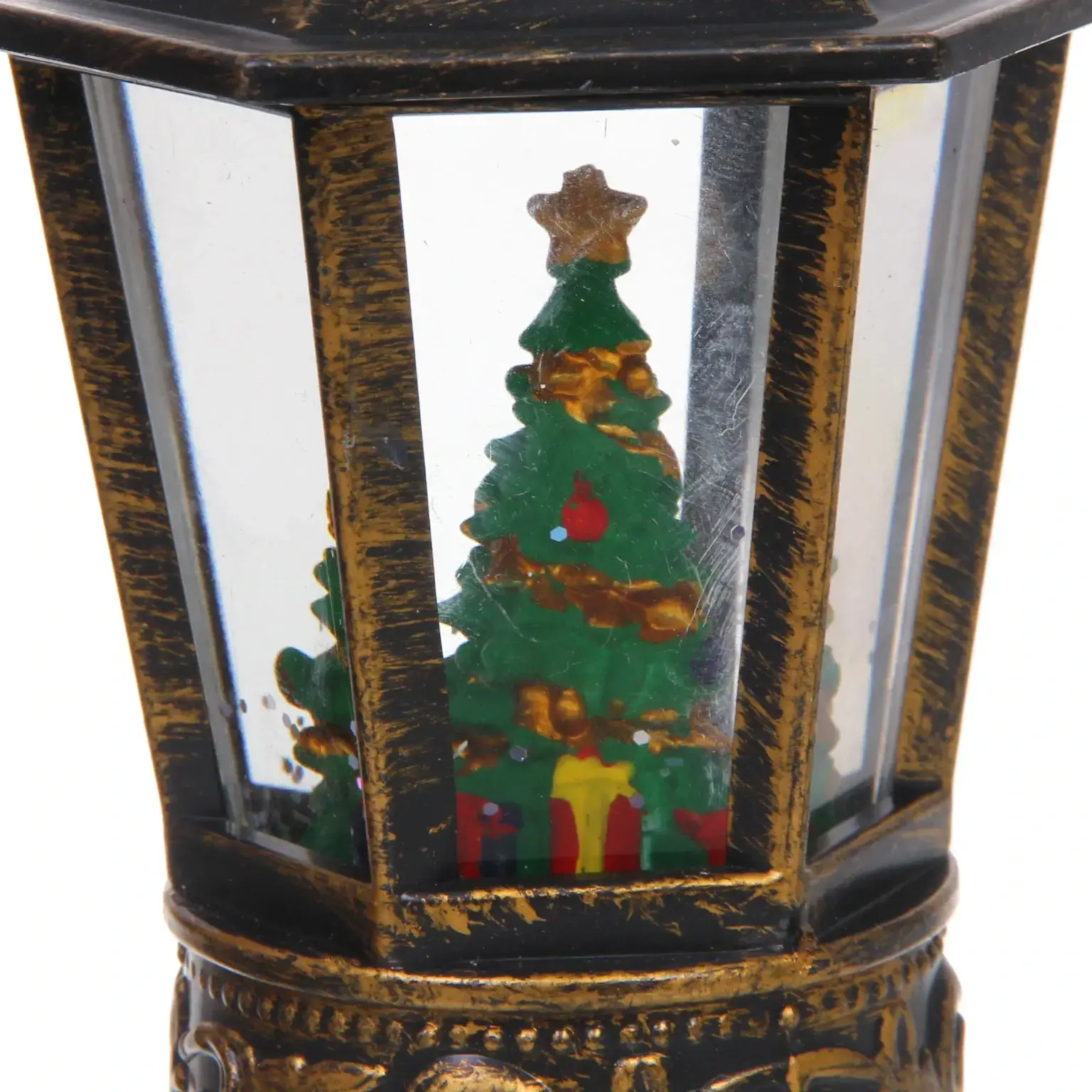 Фонарь идеально подходит для использования в интерьере, его можно разместить на столе, полке или повесить благодаря металлической петле. Он станет прекрасным украшением для новогодних праздников, создавая волшебное настроение. Внутри фонаря находится миниатюрная рождественская ёлка с цветными украшениями и подарками, что добавляет ему особый шарм.
