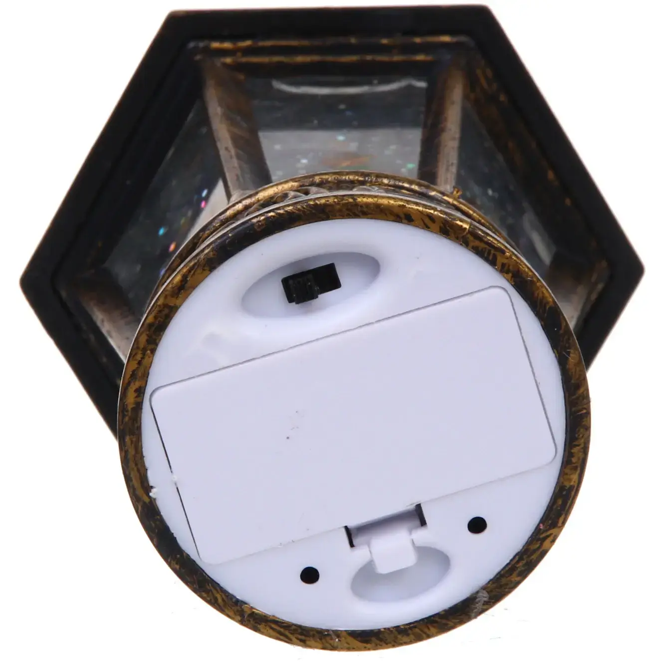 Этот фонарь не только красив, но и практичен. Он оснащён подсветкой, которая создаёт эффект мерцания благодаря блесткам внутри. Это делает его идеальным элементом декора для создания романтической или праздничной атмосферы. Кроме того, фонарь выполнен из качественных материалов — металла и пластика, что обеспечивает его долговечность и надежность.
