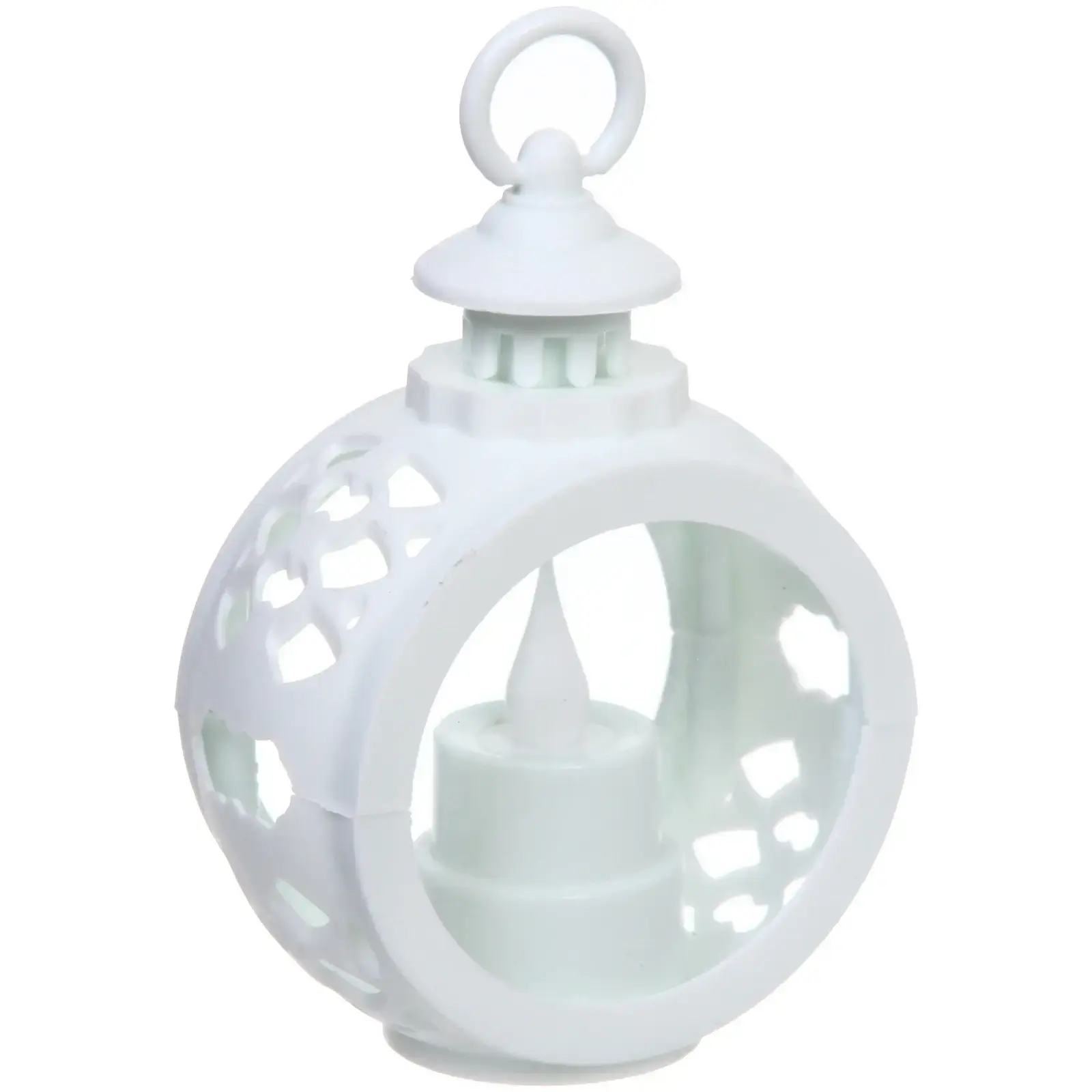 Фонарь выполнен из качественного пластика и имеет компактные размеры 8,5х12 см, что позволяет удобно размещать его на столах, полках или использовать для декорирования мероприятий. Он идеально подходит для создания романтической обстановки, а также для использования на праздниках и торжествах. Благодаря ручке на верхней части, фонарь можно легко подвешивать или переносить.