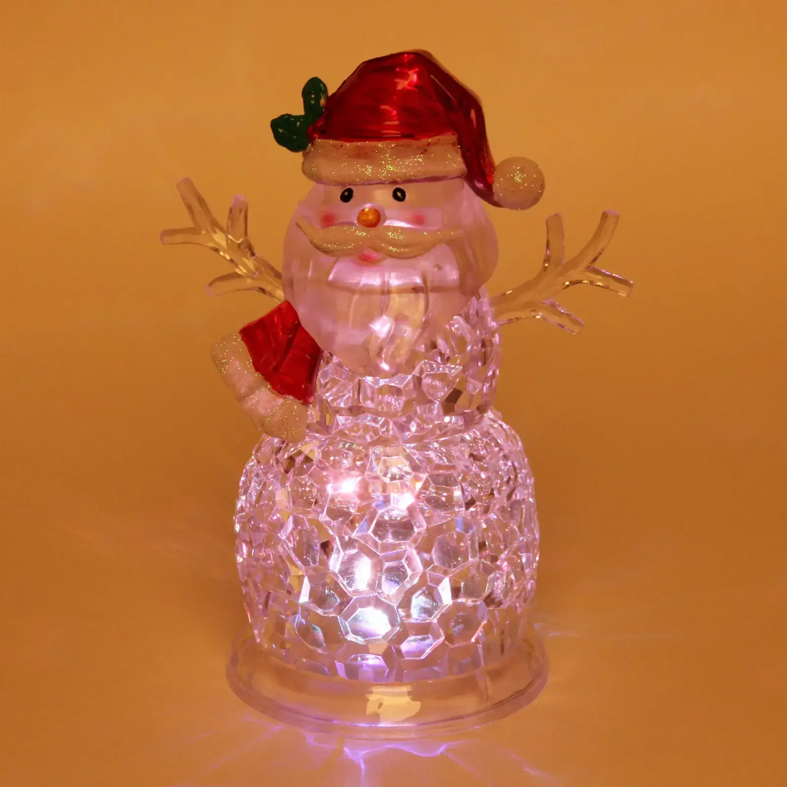 Светильник-снеговик "Хрустальный Дед Мороз", пластик, 24*17.8 см, с подсветкой