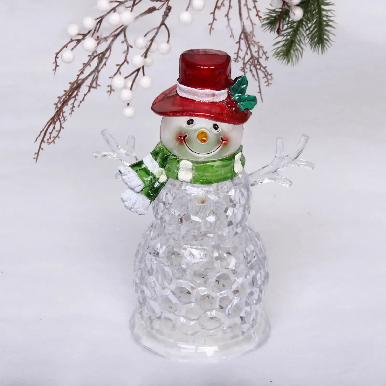 Светящийся снеговик 'Хрустальный', 24*17.8 см, пластик, с подсветкой