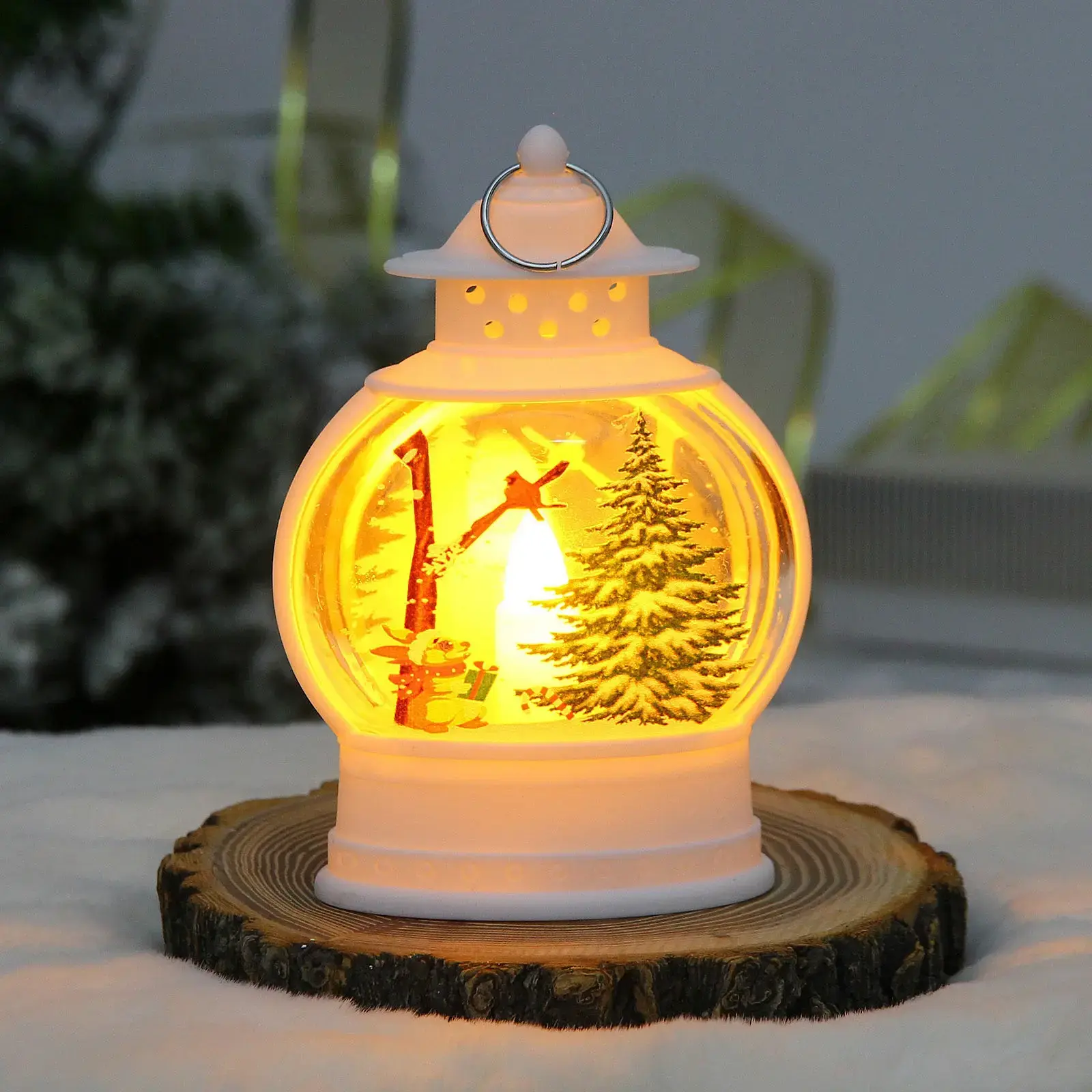 Теплое свечение лампы создает особую атмосферу домашнего уюта, а изящный дизайн с зимними мотивами станет прекрасным дополнением праздничного декора.