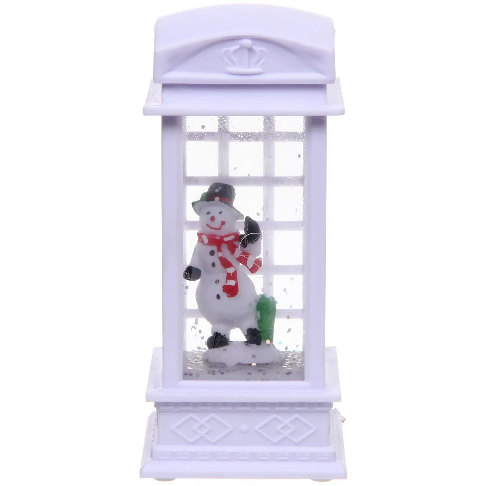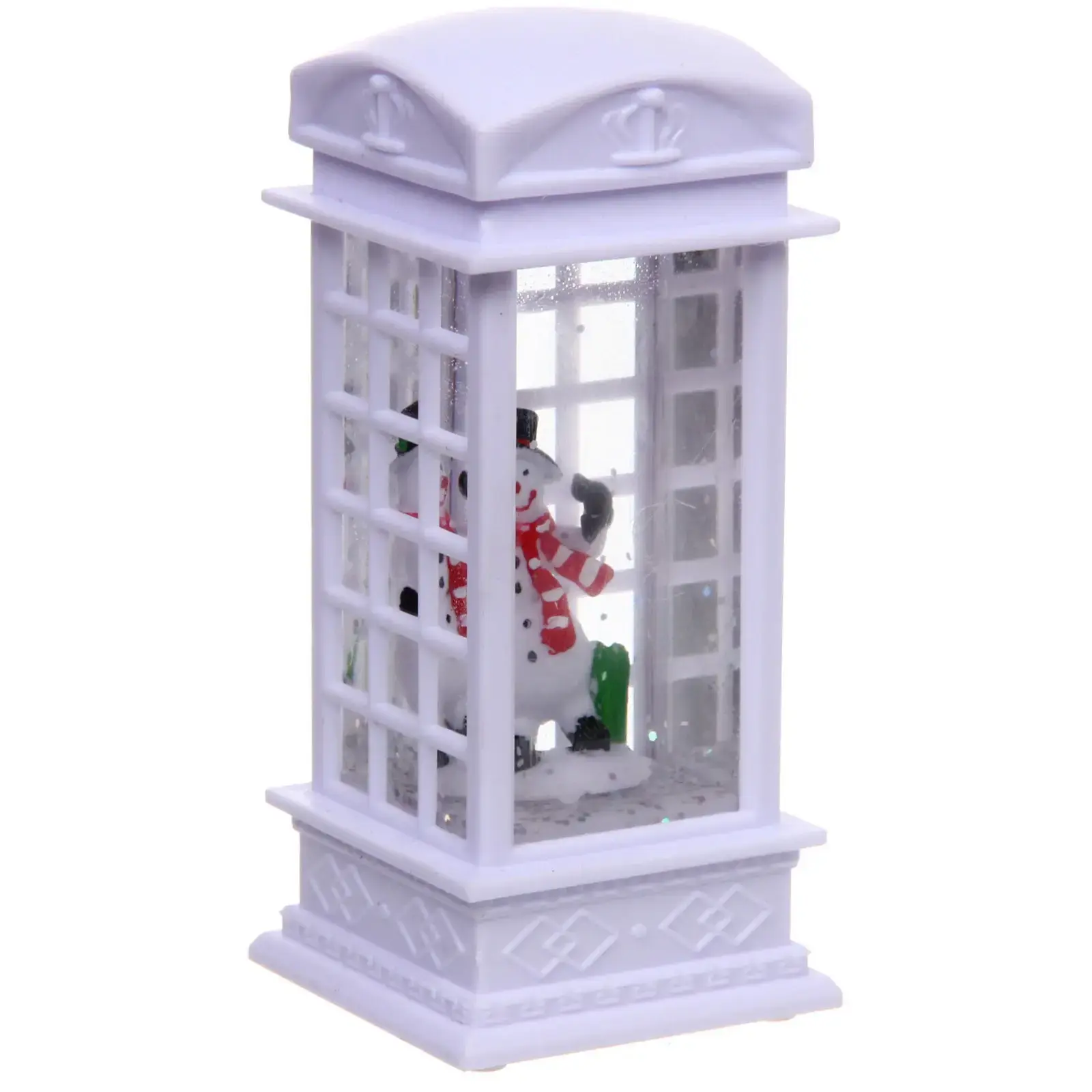 Этот уникальный сувенир с подсветкой станет идеальным дополнением вашего новогоднего декора. Он не только украсит ваш дом, но и создаст уютную атмосферу, наполняя пространство теплом и светом. С фигуркой снеговика внутри телефонной будки, выполненной в белом цвете с розовыми элементами, этот сувенир станет настоящим украшением вашего интерьера.