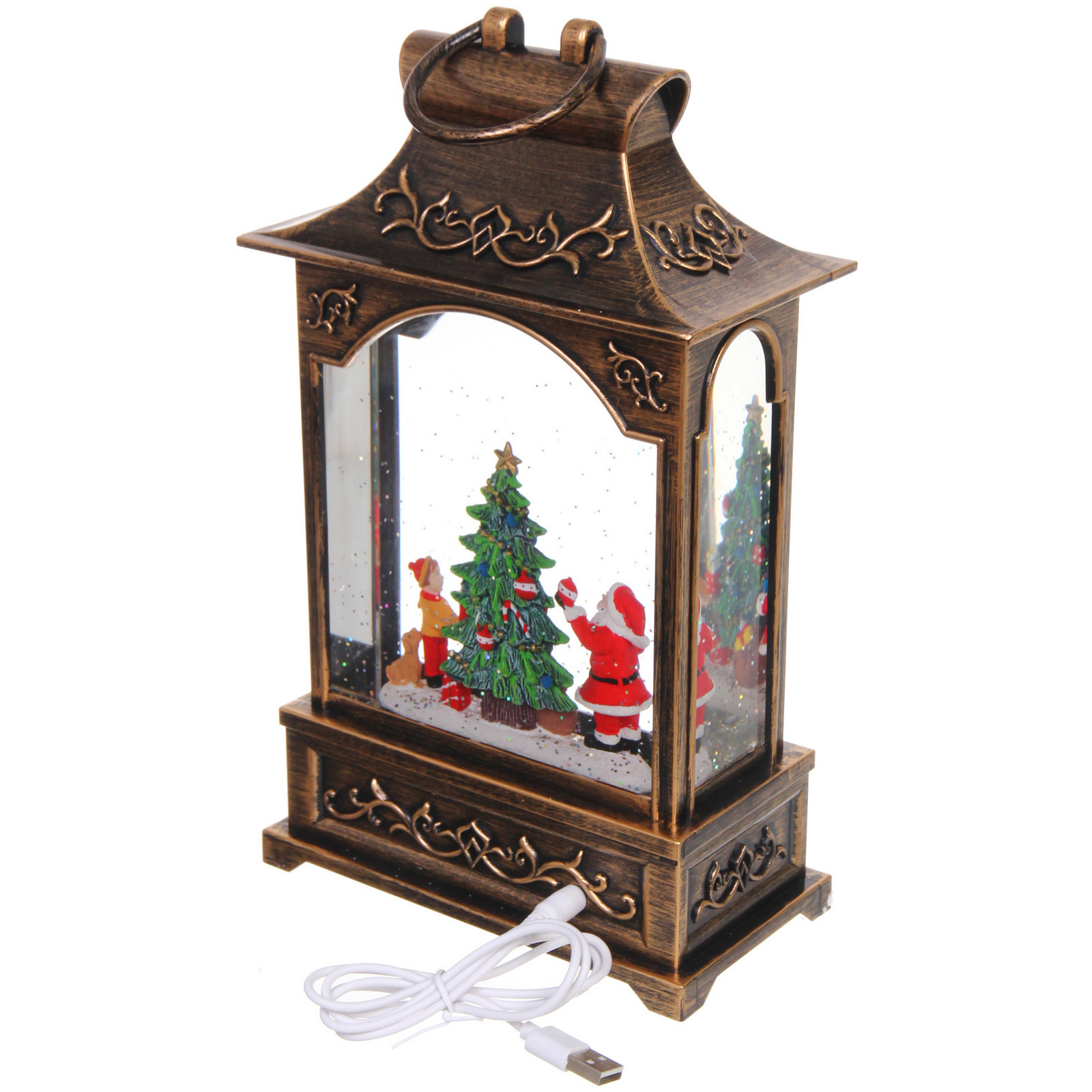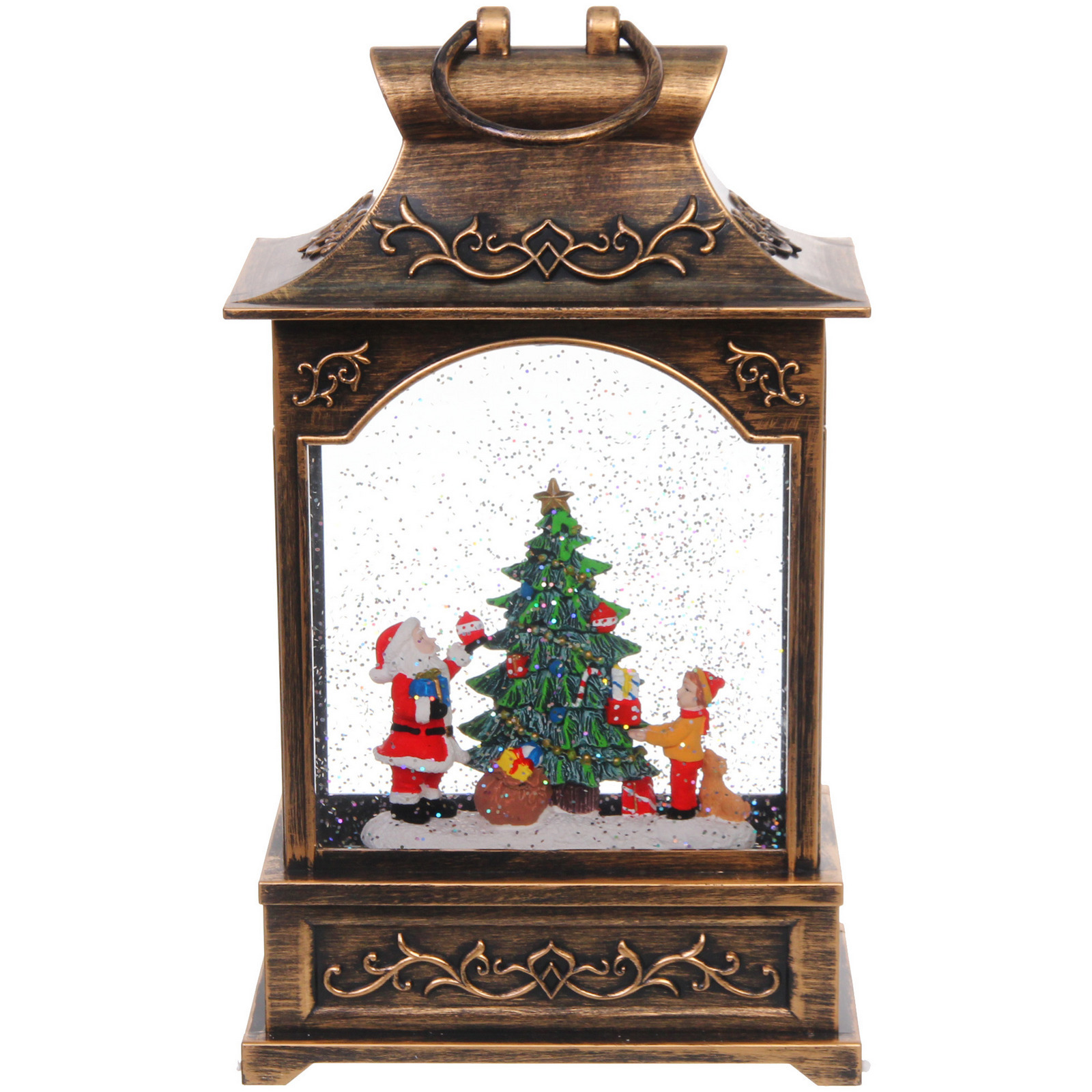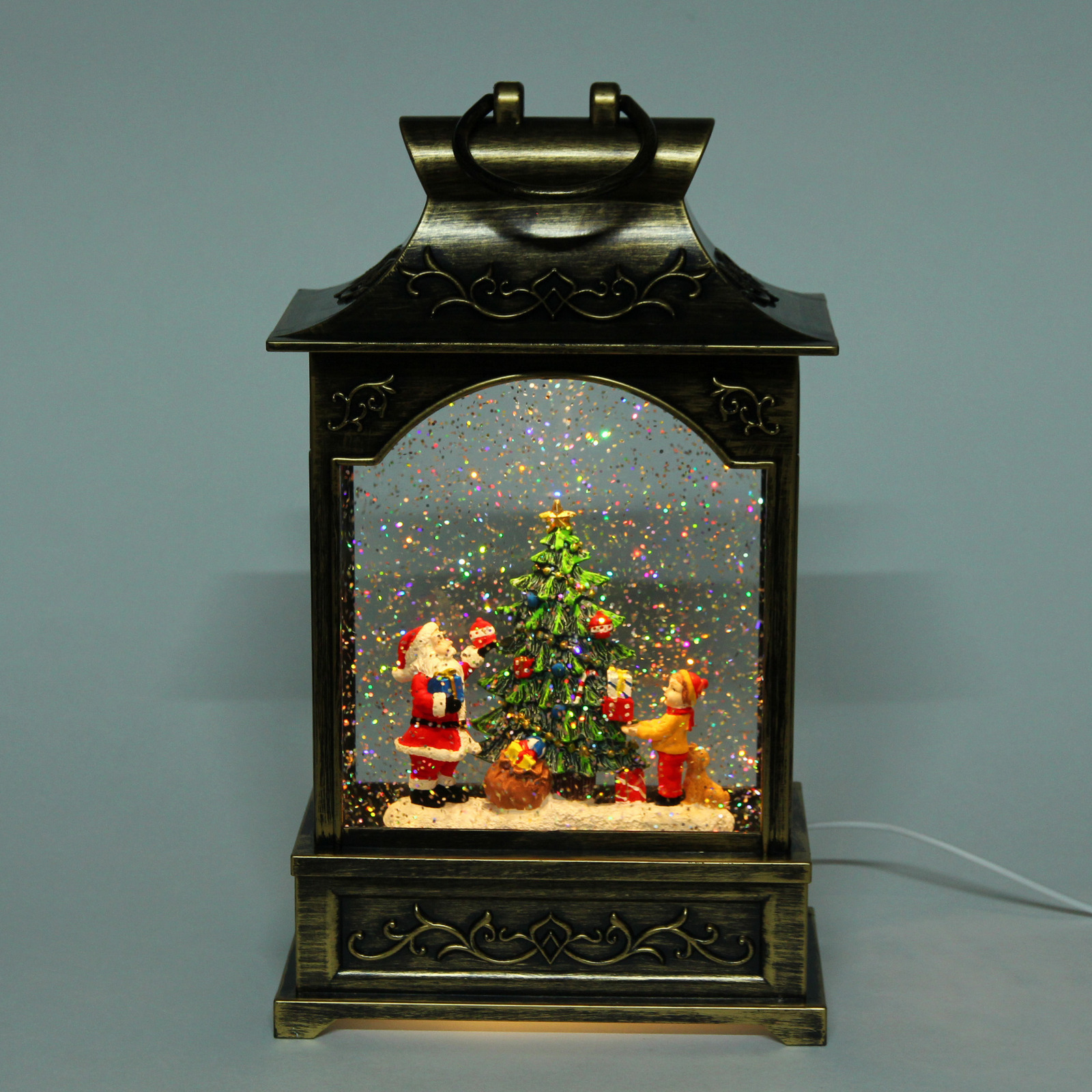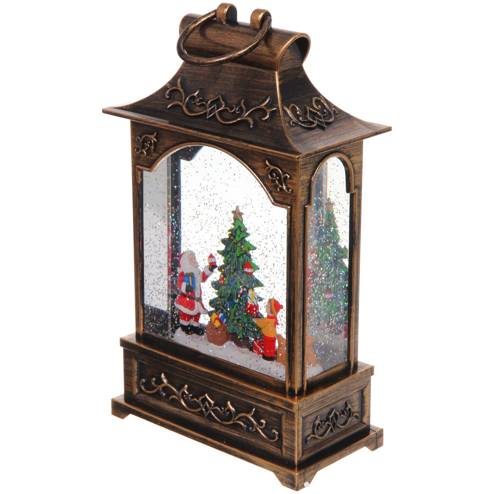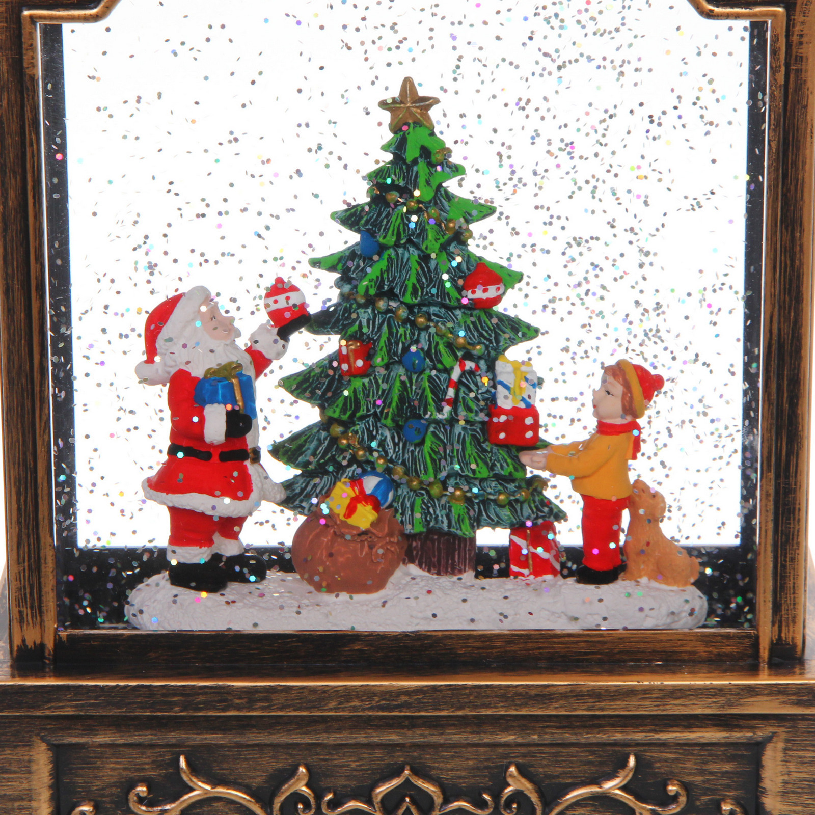 Выбирая этот фонарь, вы получаете не просто украшение, а целую новогоднюю сцену с фигурками Санта-Клауса и снеговика, стоящими перед рождественским деревом. Внутри фонаря находятся блестки, которые создают эффект падающего снега при включении, добавляя волшебства в ваш праздник. Этот фонарь станет отличным подарком для друзей и близких, а также прекрасным дополнением к вашему новогоднему декору.
