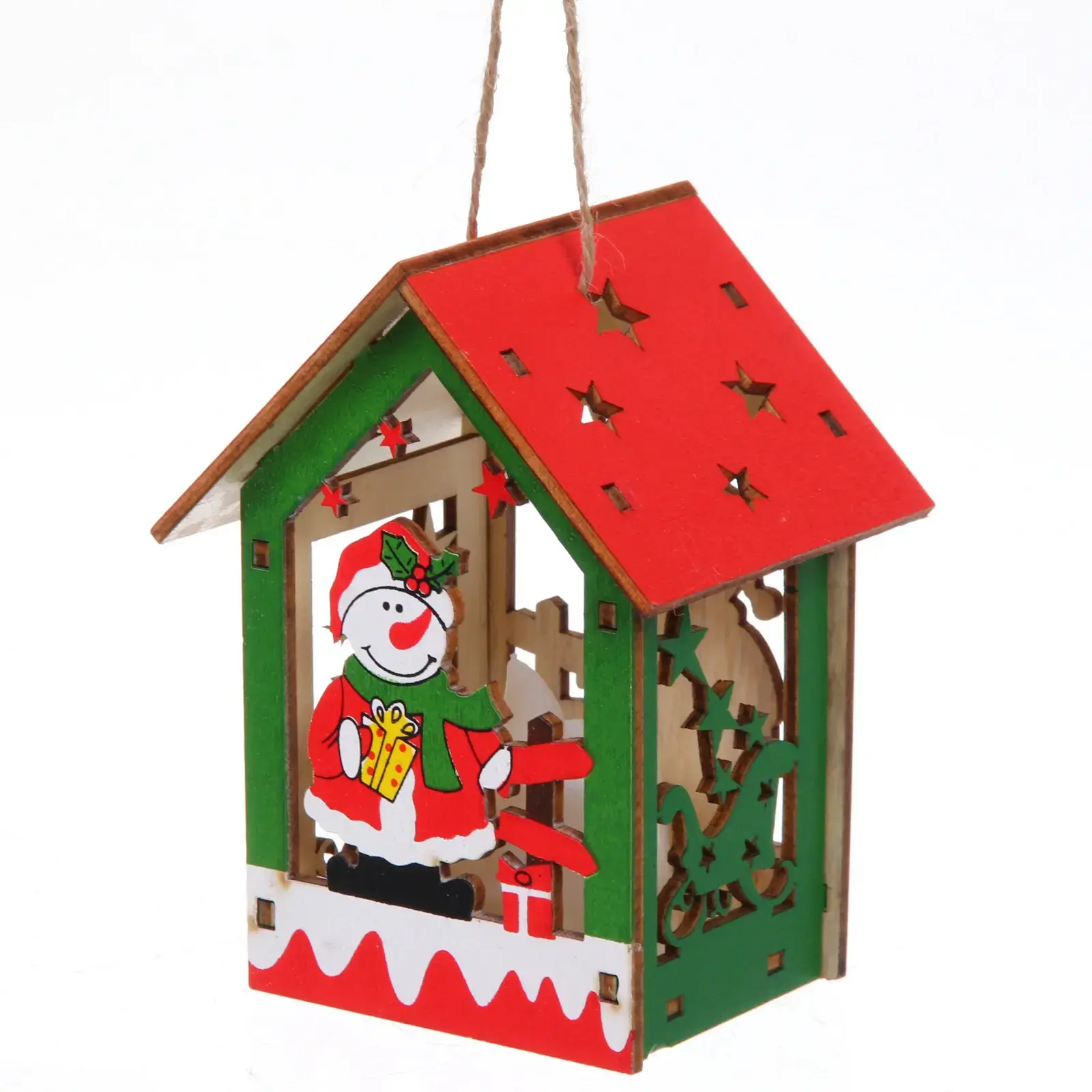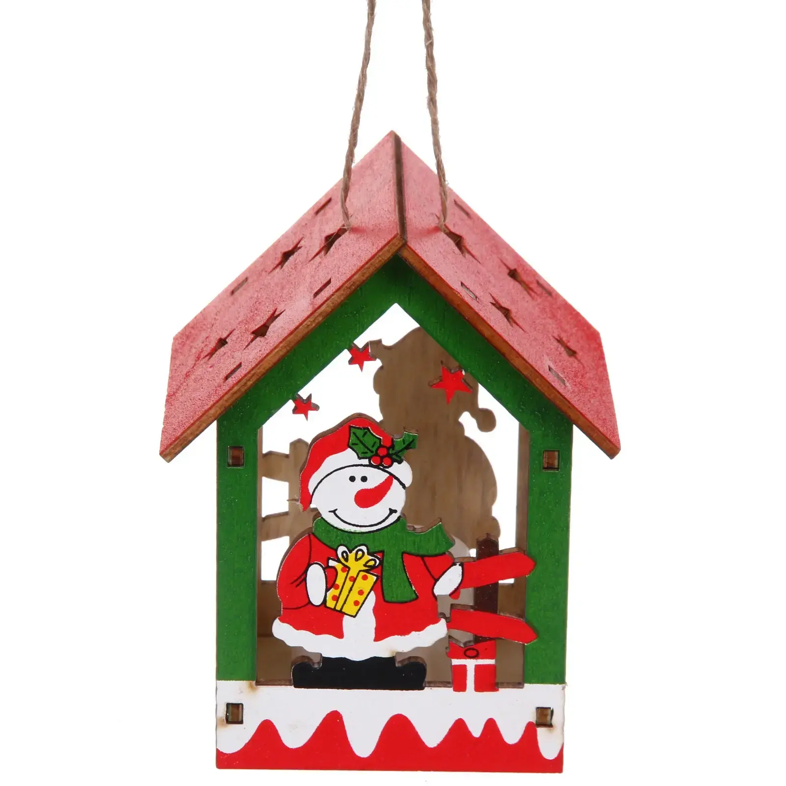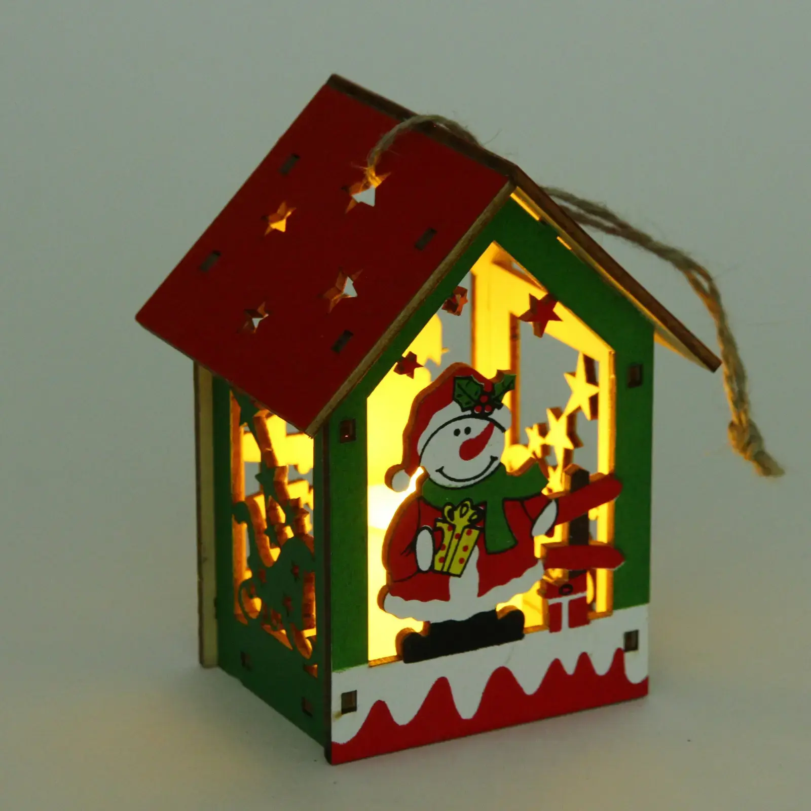 Сувенир выполнен из качественного дерева, что обеспечивает его долговечность и надежность. Яркие цвета и детализированный дизайн делают его привлекательным для всех возрастов. Внутреннее освещение создает теплый свет, который подчеркивает красоту домика и делает его центром внимания. Кроме того, наличие петли для подвешивания позволяет легко разместить его в любом удобном месте.