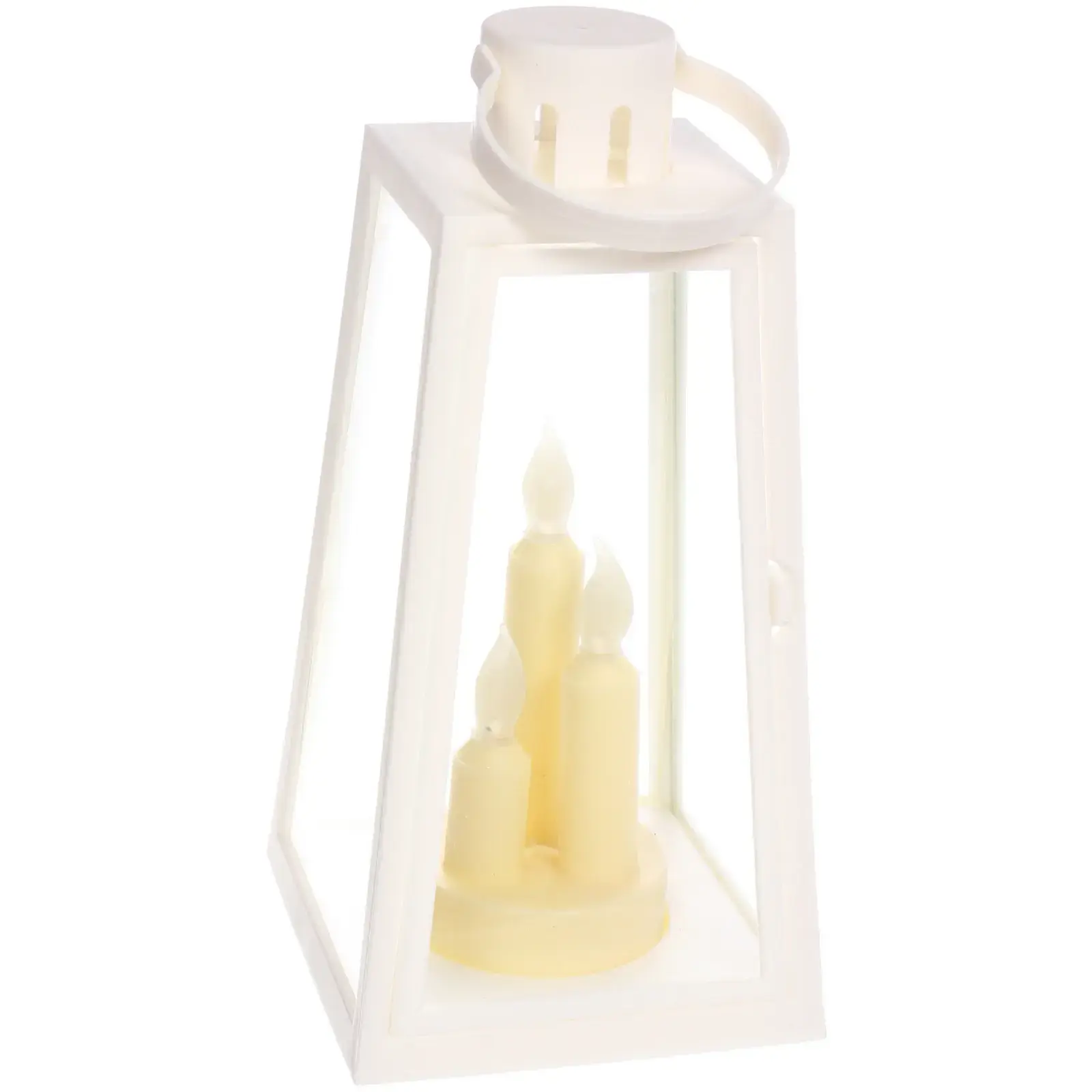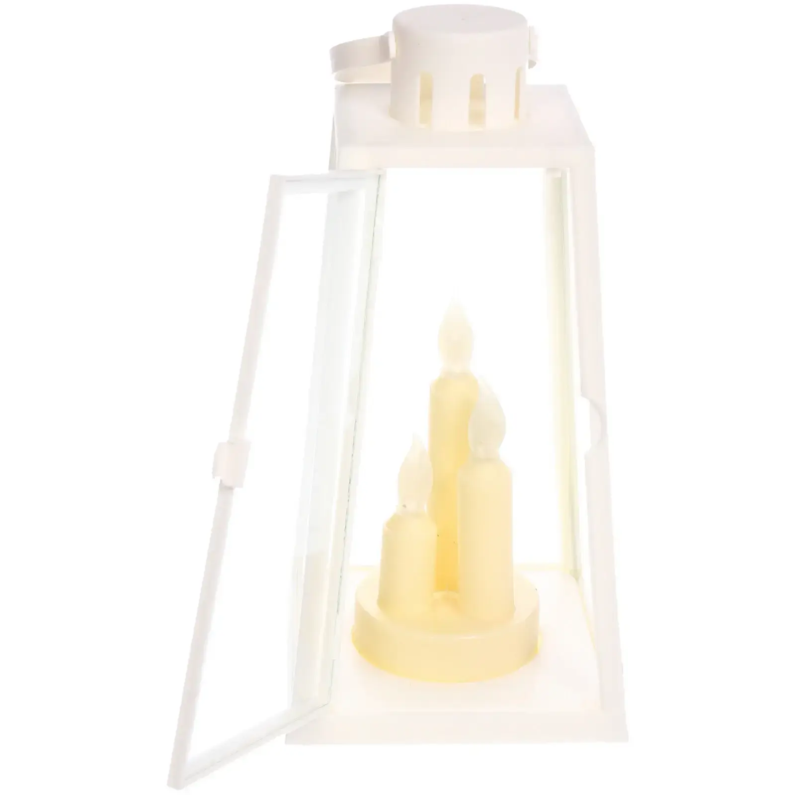Размеры фонаря составляют 13х13х26 см, что делает его компактным и легким для размещения на столе или полке. Белый цвет и современный дизайн позволяют ему вписаться в любой интерьер, добавляя нотку элегантности. Этот фонарь станет не только источником света, но и стильным акцентом в вашем доме.