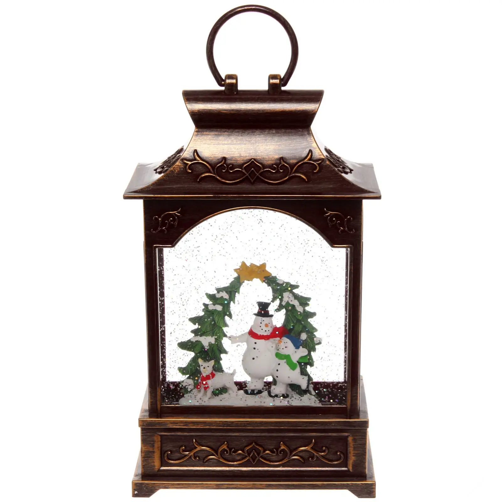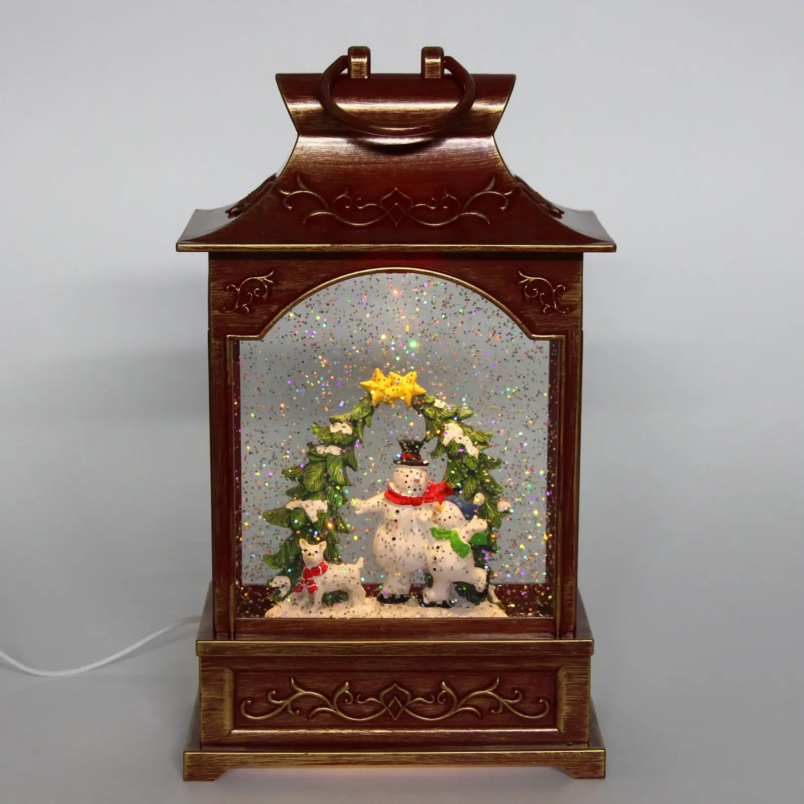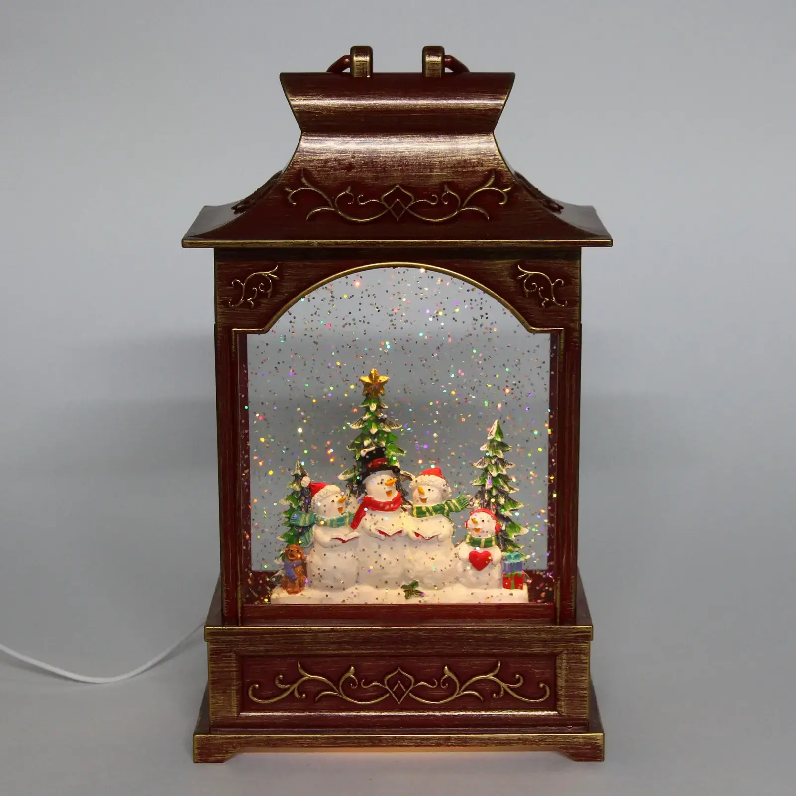 Фонарь «Сказка» выделяется своим уникальным дизайном и качественными материалами. Он изготовлен из прочного пластика и стекла, что обеспечивает долговечность и надежность. Внутри фонаря находятся фигурки снеговиков и елок, окруженные блестками, создающими эффект снежного покрова. Это делает его не только источником света, но и стильным элементом декора.