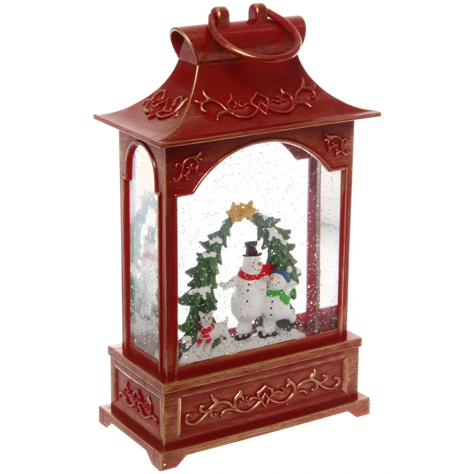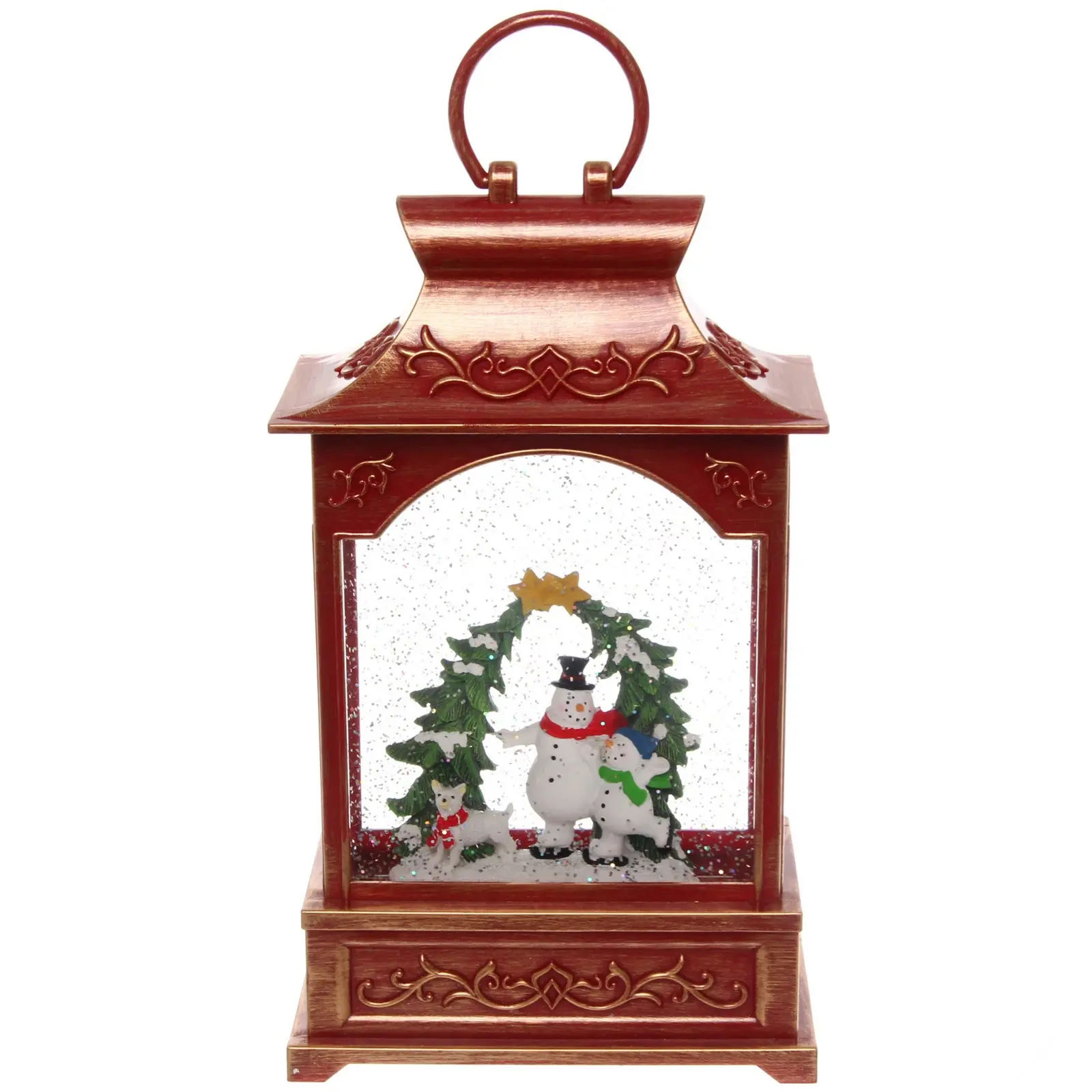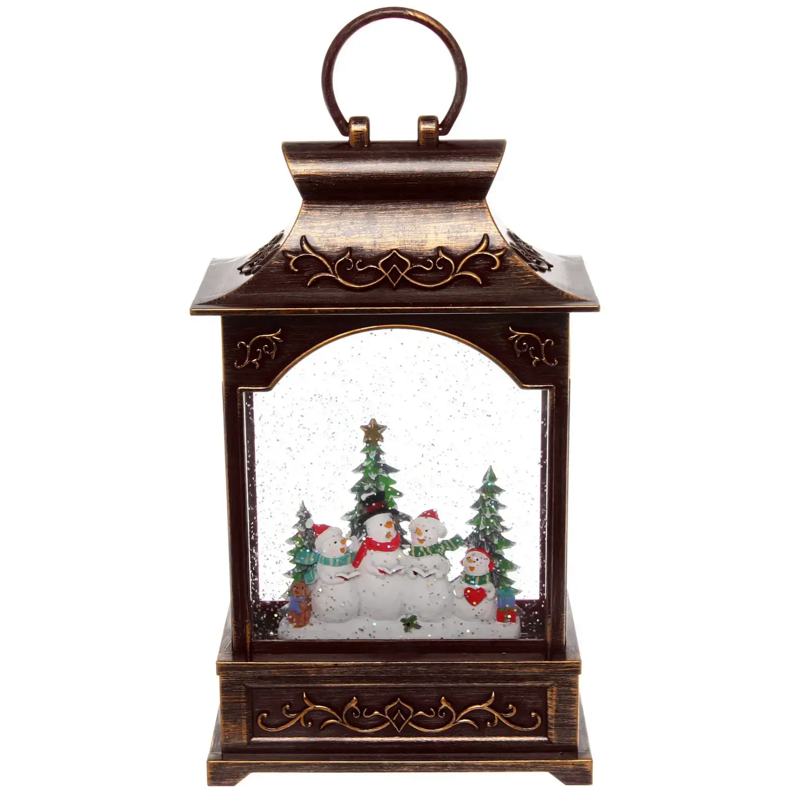 Фонарь «Сказка» выделяется своим уникальным дизайном и качественными материалами. Он изготовлен из прочного пластика и стекла, что обеспечивает долговечность и надежность. Внутри фонаря находятся фигурки снеговиков и елок, окруженные блестками, создающими эффект снежного покрова. Это делает его не только источником света, но и стильным элементом декора.