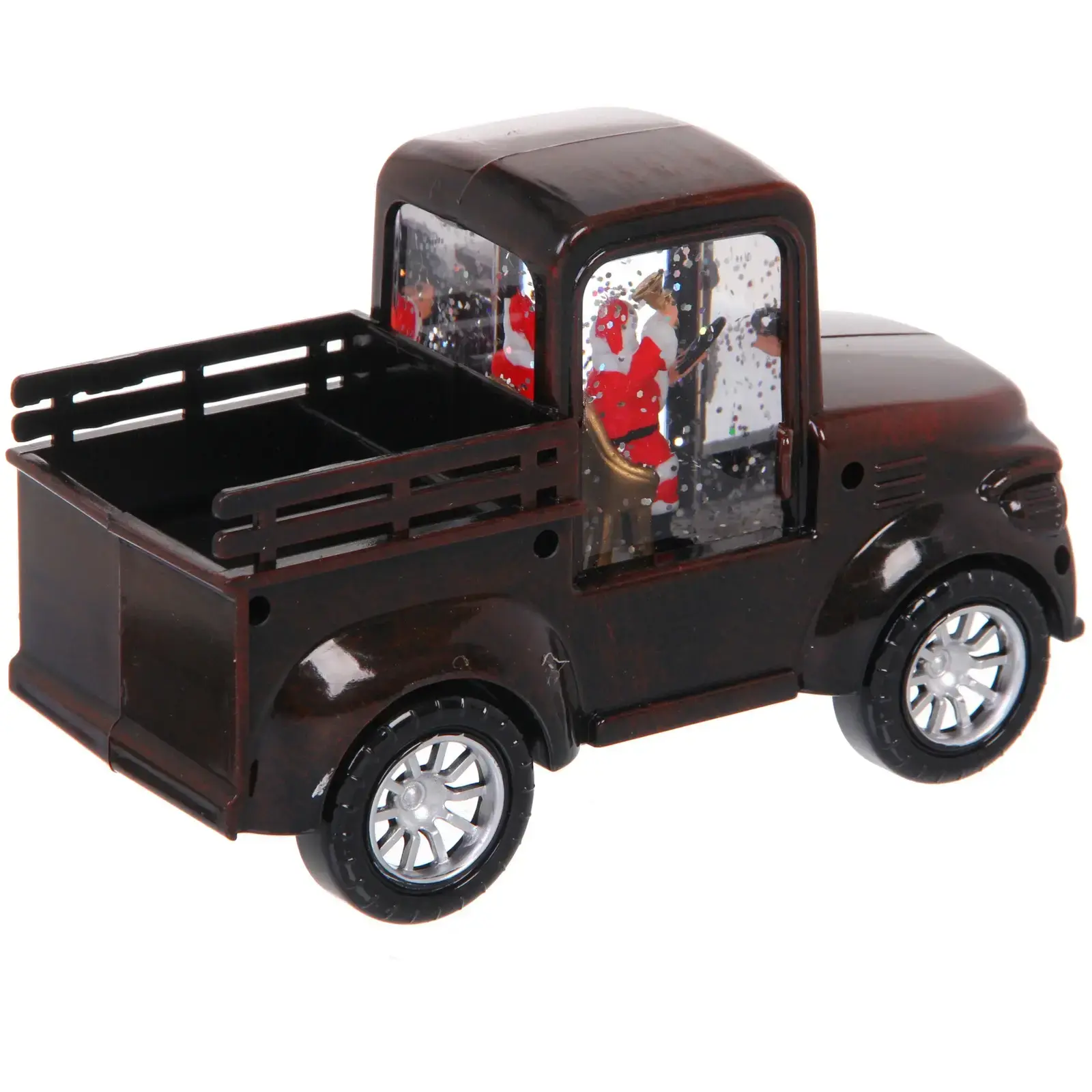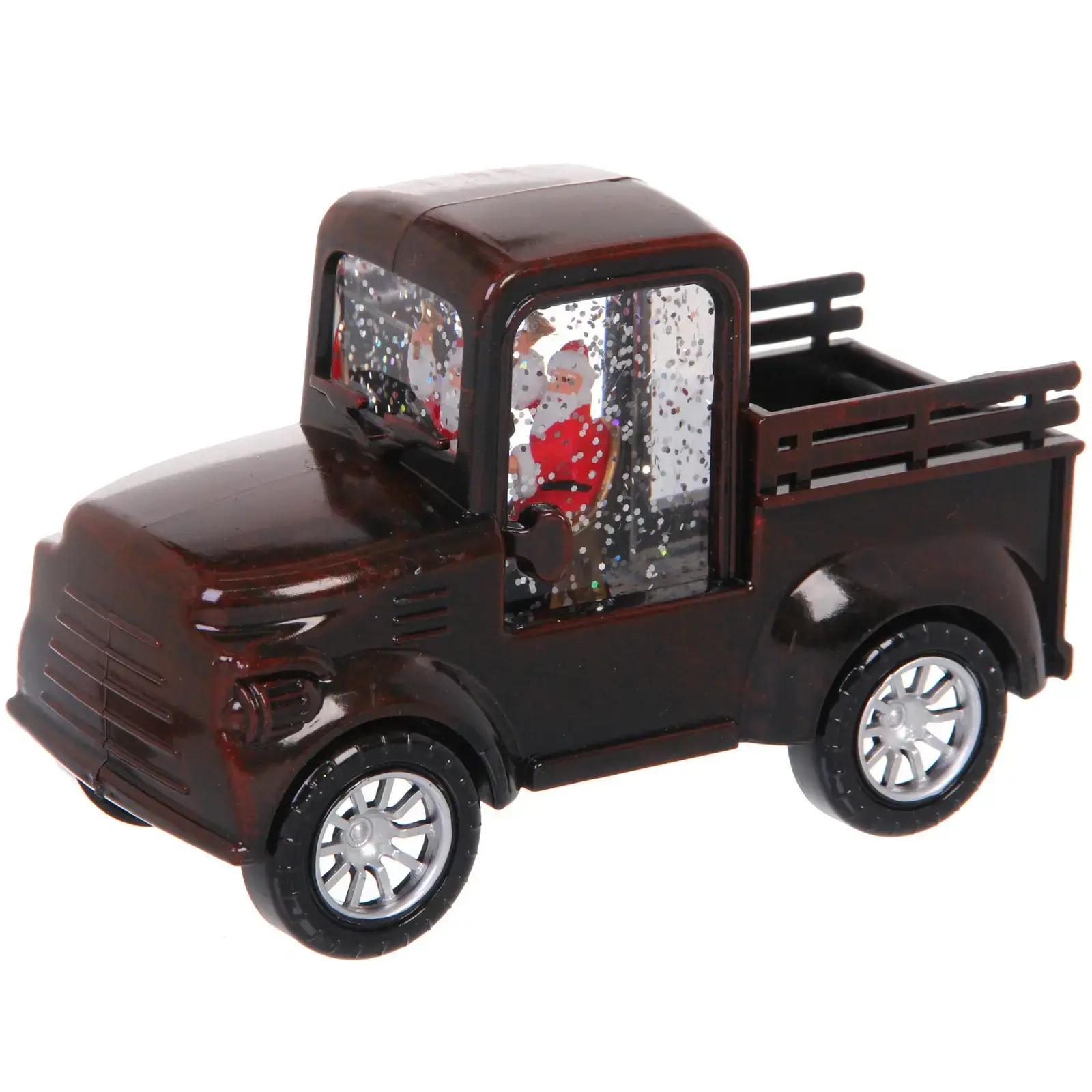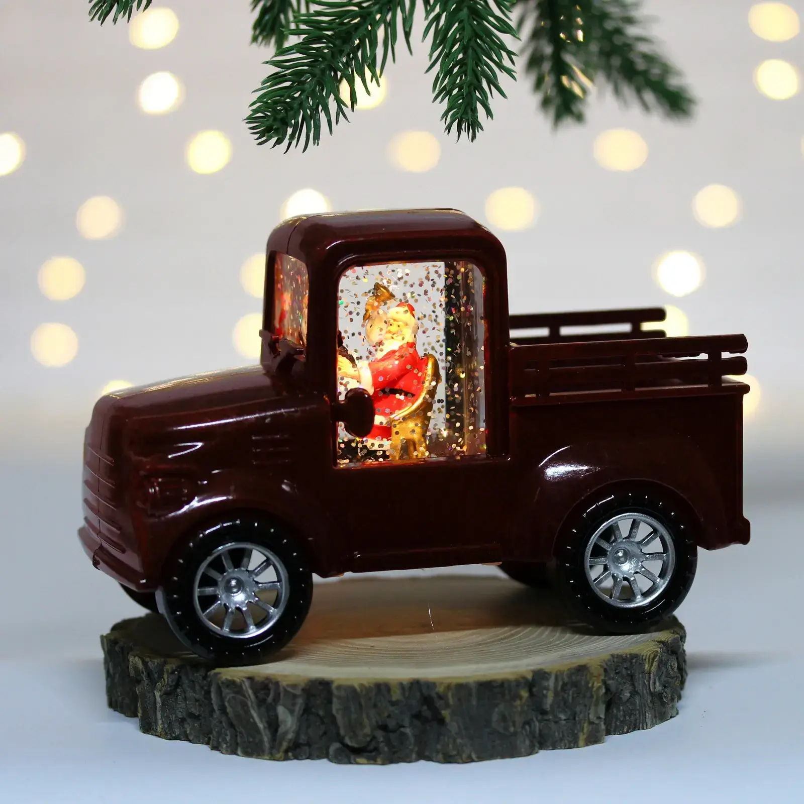 Декоративный грузовик с фигуркой Санта-Клауса и мерцающей подсветкой создаст атмосферу зимней сказки в вашем доме. Идеальный элемент новогоднего декора для камина, праздничного стола или подарка близким.
