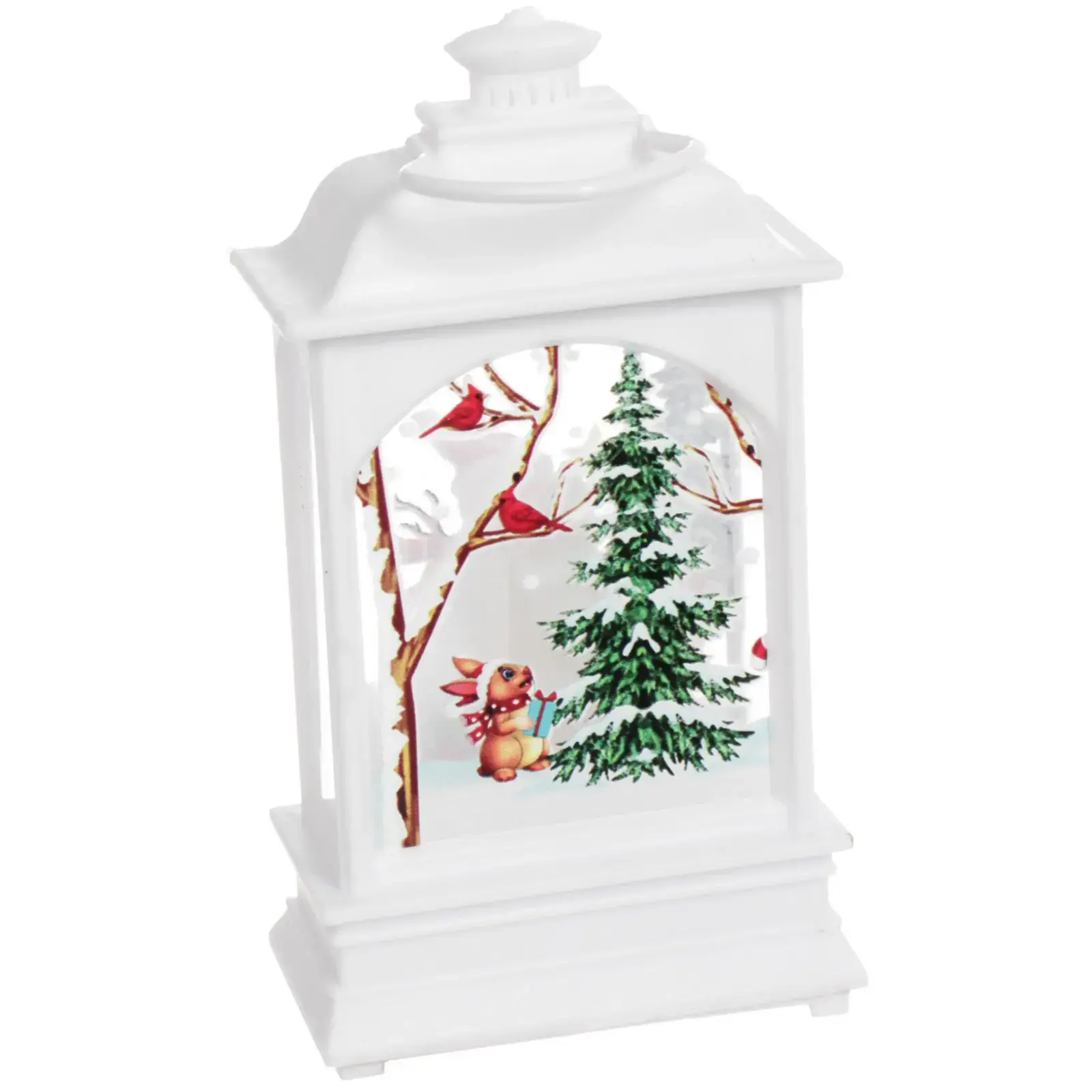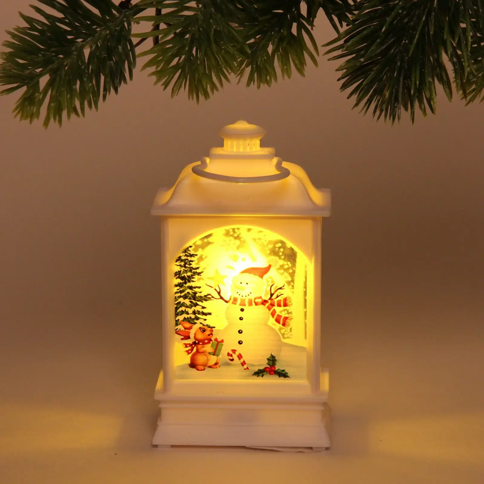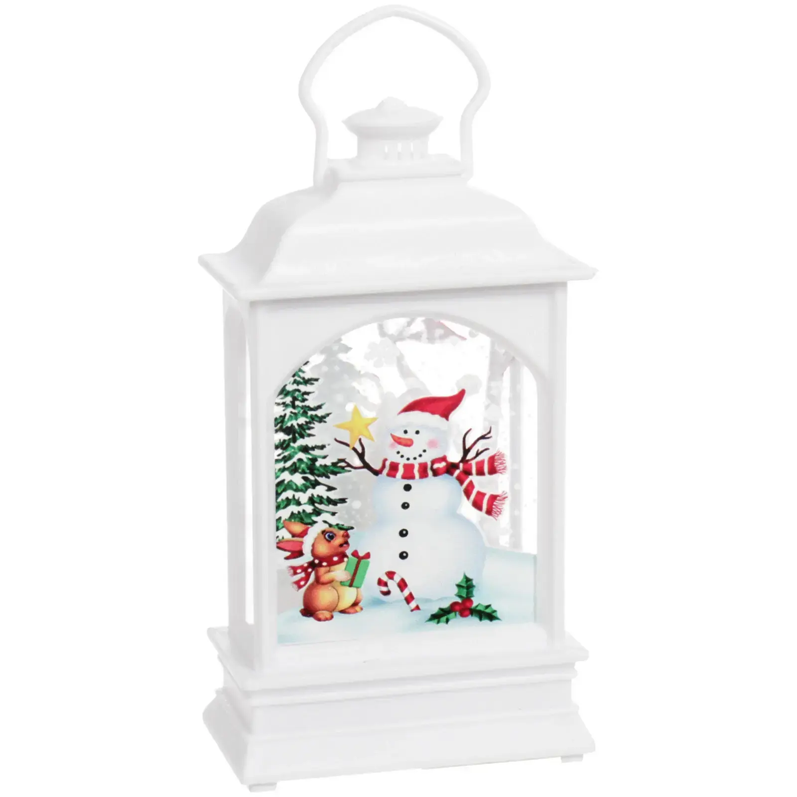 Этот декоративный светильник в форме фонаря станет идеальным элементом новогоднего декора, добавляя уют и тепло в ваш дом. Его белый цвет и оригинальный дизайн с изображением снеговика, оленя и зимнего пейзажа создают волшебное настроение, которое порадует как детей, так и взрослых.