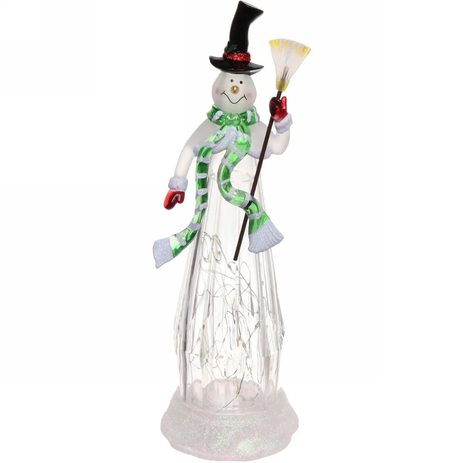 Фигурка снеговика с подсветкой «Снеговик с метлой», новогодний декор, пластик, 34х11 см
