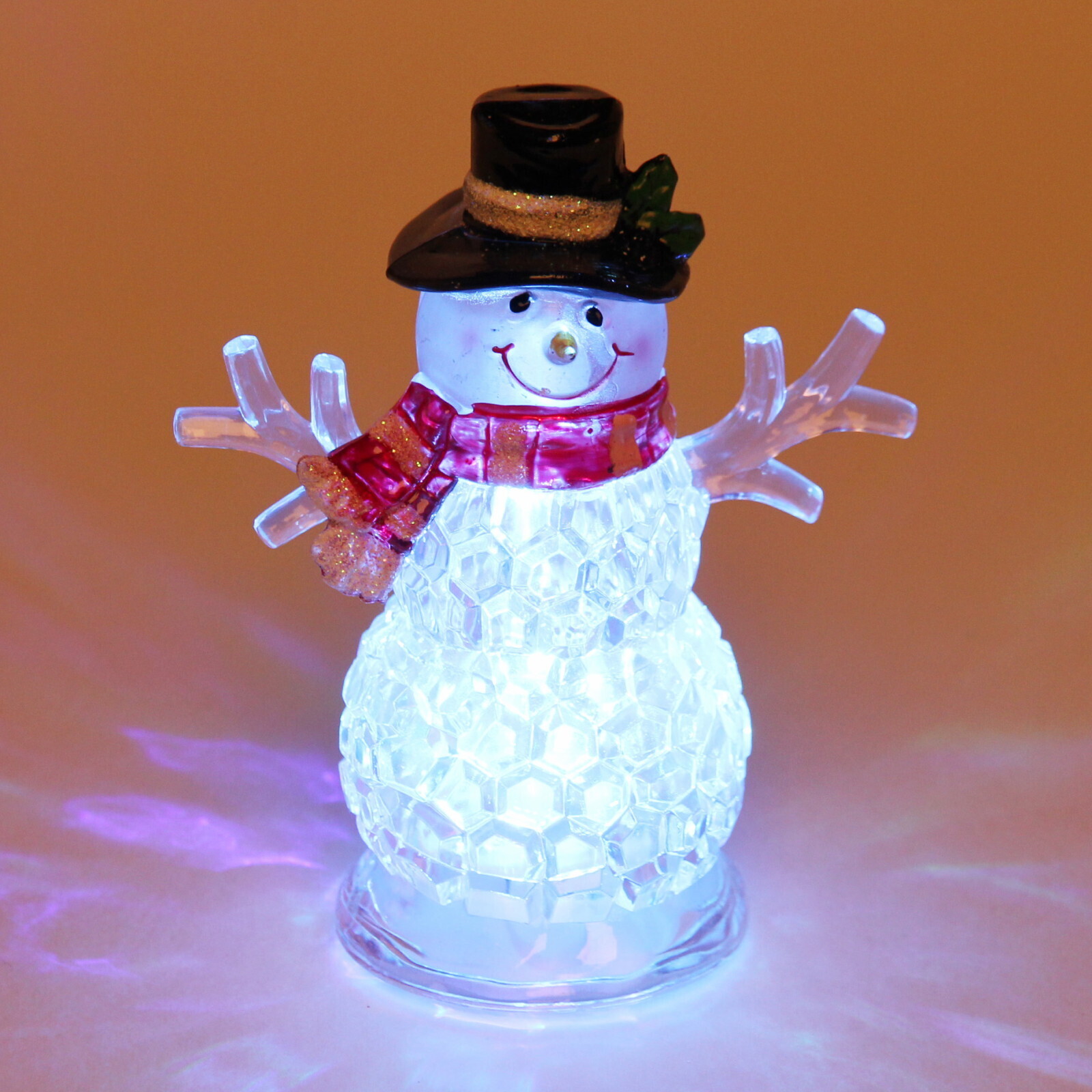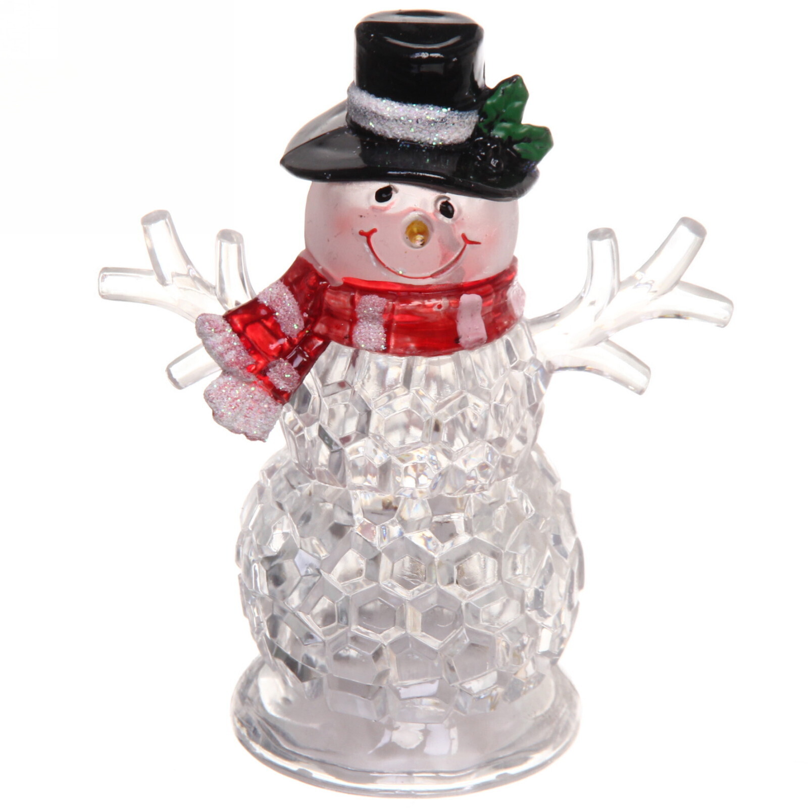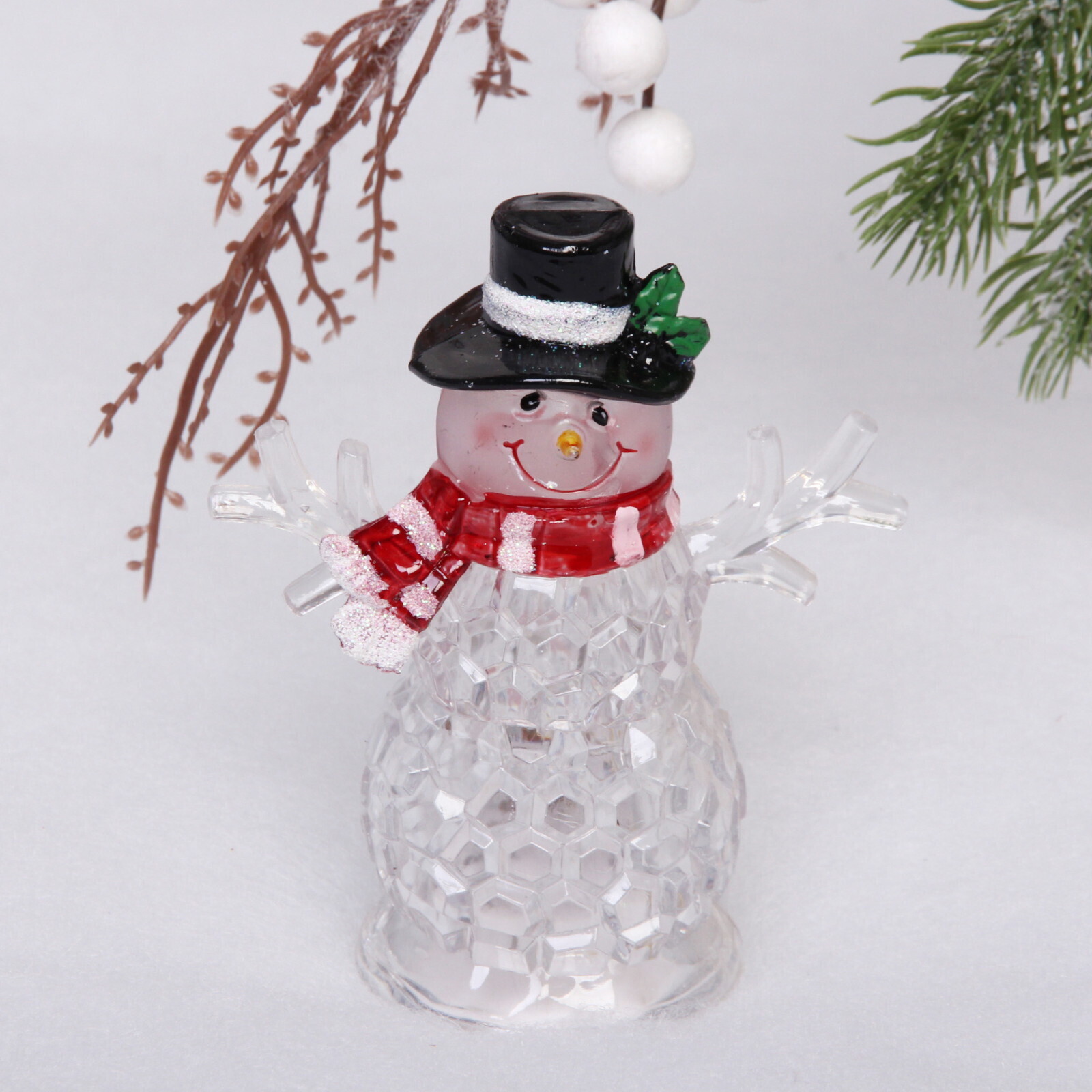 Снеговик имеет округлую форму и выполнен из прозрачного материала, что позволяет ему излучать мягкое свечение благодаря встроенным светодиодам. Он станет не только украшением, но и источником света, создавая уютную атмосферу в вашем доме. Не упустите возможность добавить этот уникальный сувенир в свою коллекцию новогодних украшений!