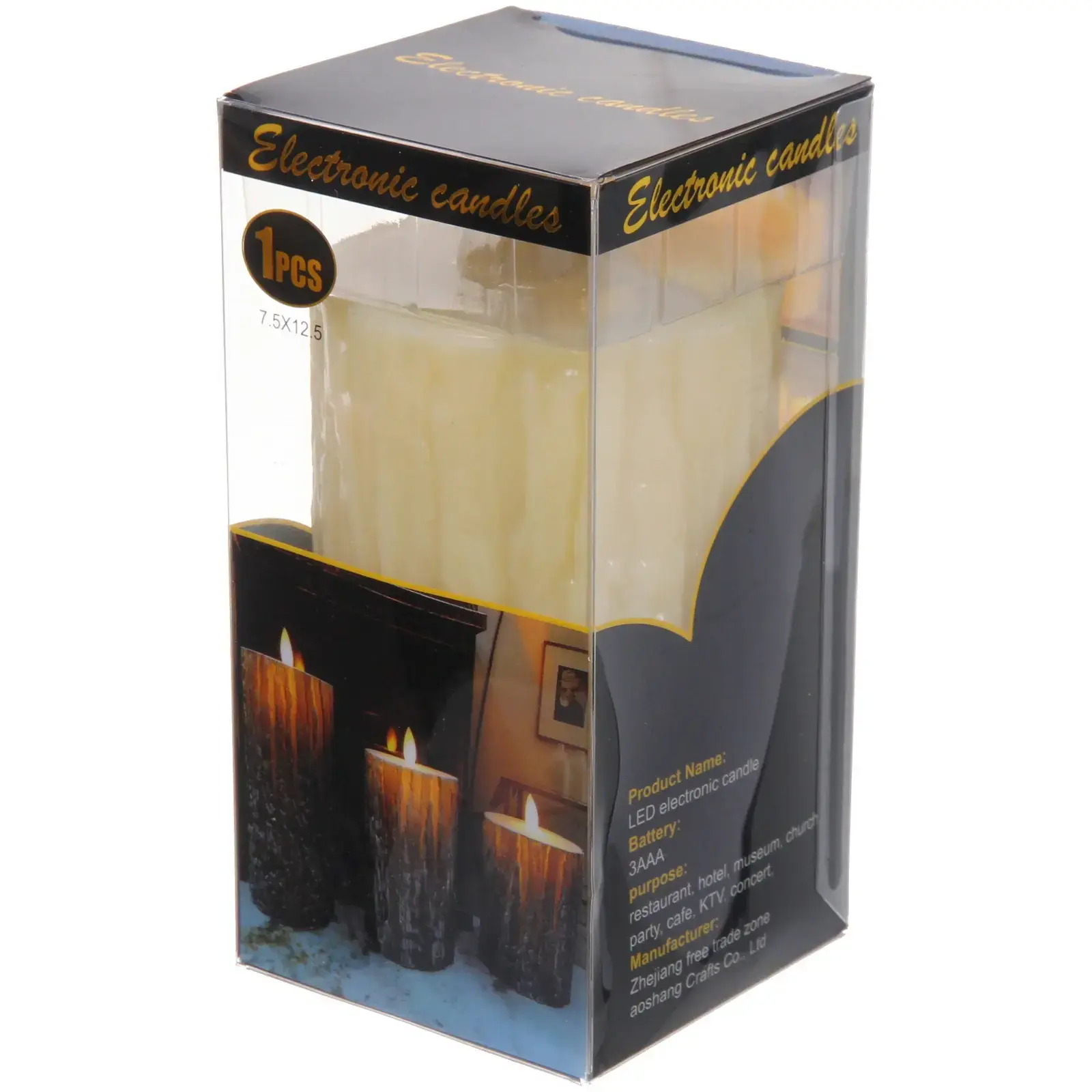 Свеча выполнена из качественного пластика, имитирующего потёки воска, и оснащена светящимся многогранным искусственным огоньком. Удобная для использования: работает от 3 батареек типа AAA, легко устанавливается и заменяется.