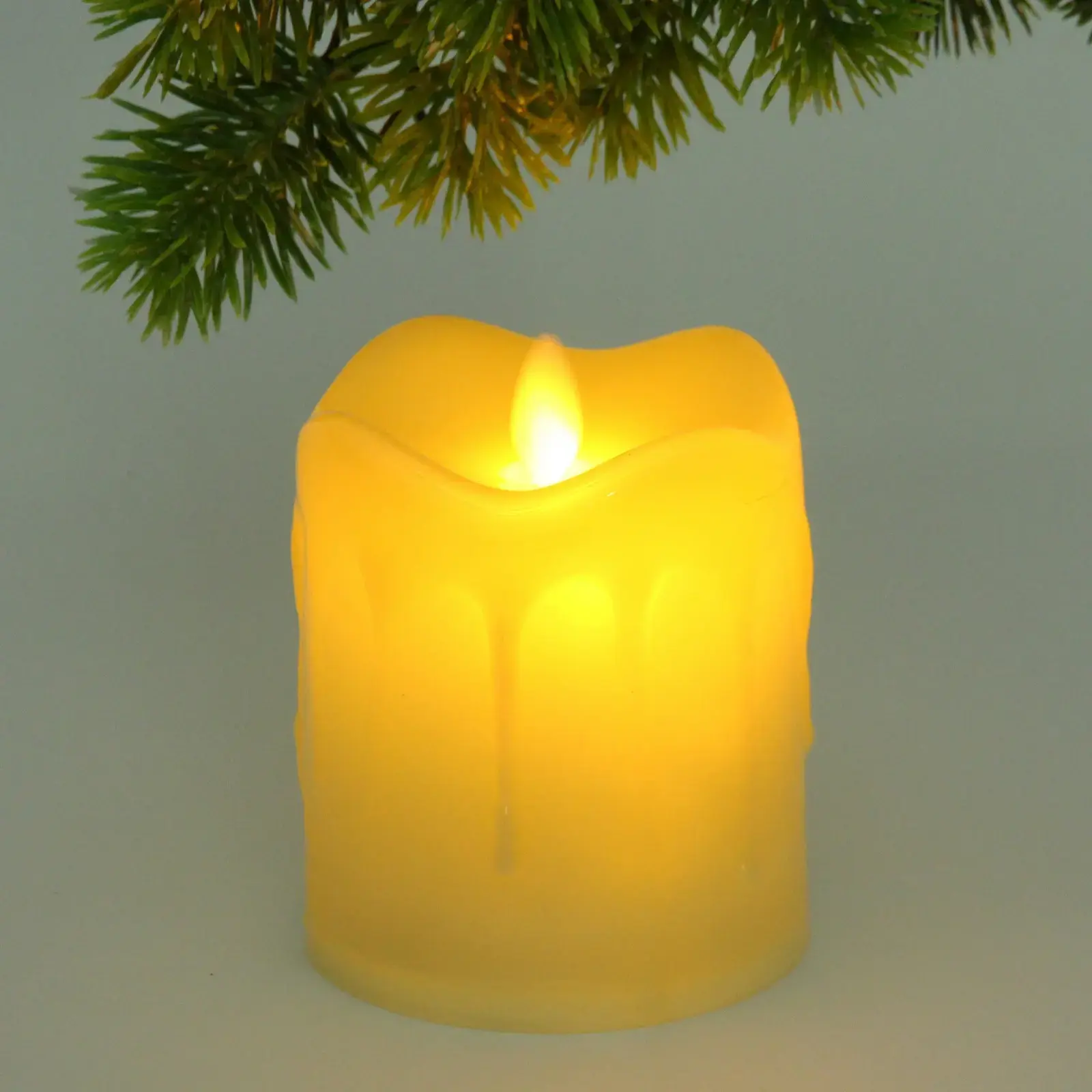 Этот декоративный сувенир с подсветкой представляет собой цилиндрическую свечу в размерах 9х10 см, выполненную из пластика с имитацией воска и подтёками. Оснащена внутренним световым элементом в виде пламени, который создает эффект мерцающего огня. Работает от 3 батареек типа АА, что обеспечивает простоту использования и мобильность. Подходит для оформления интерьера, подарка или уютного декора дома и офиса.