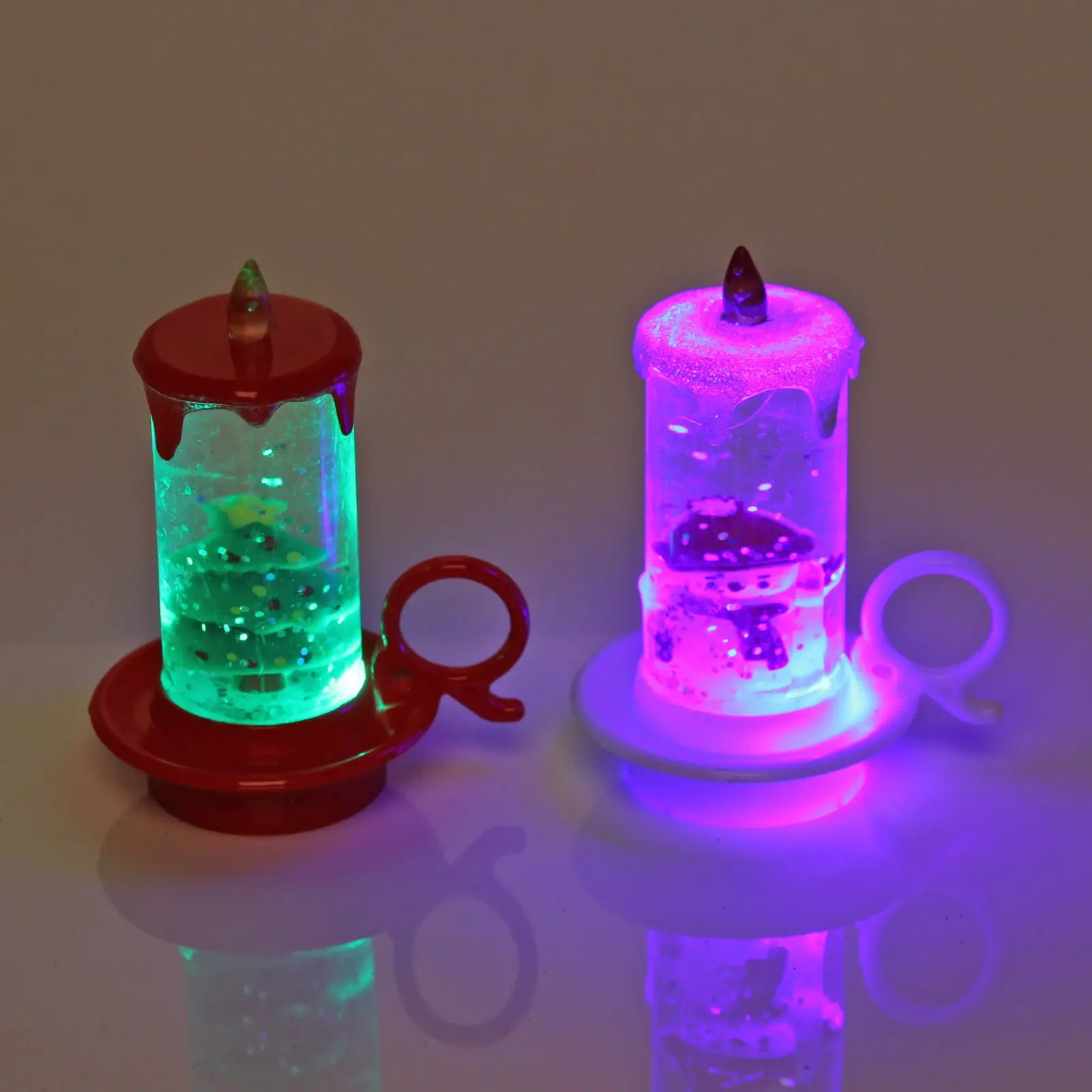 Светильники имеют прозрачный корпус, что позволяет видеть внутренние декоративные элементы, такие как миниатюрные елочки и снеговики, которые добавляют дополнительный шарм. Они оснащены подставками, что обеспечивает стабильность и удобство размещения. Эти свечи станут не только украшением вашего дома, но и источником радости и тепла в холодные зимние вечера.