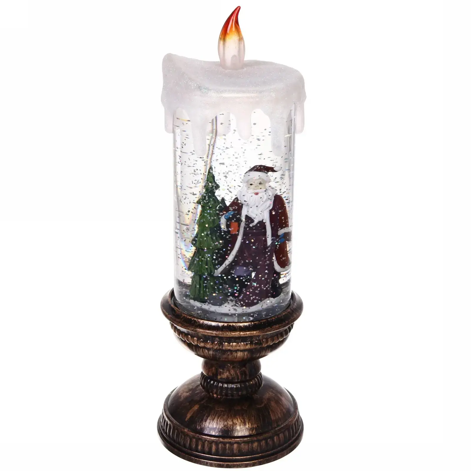 Свеча декоративная с подсветкой 'Дед Мороз', 30см, пластик/стекло, эффект снегопада