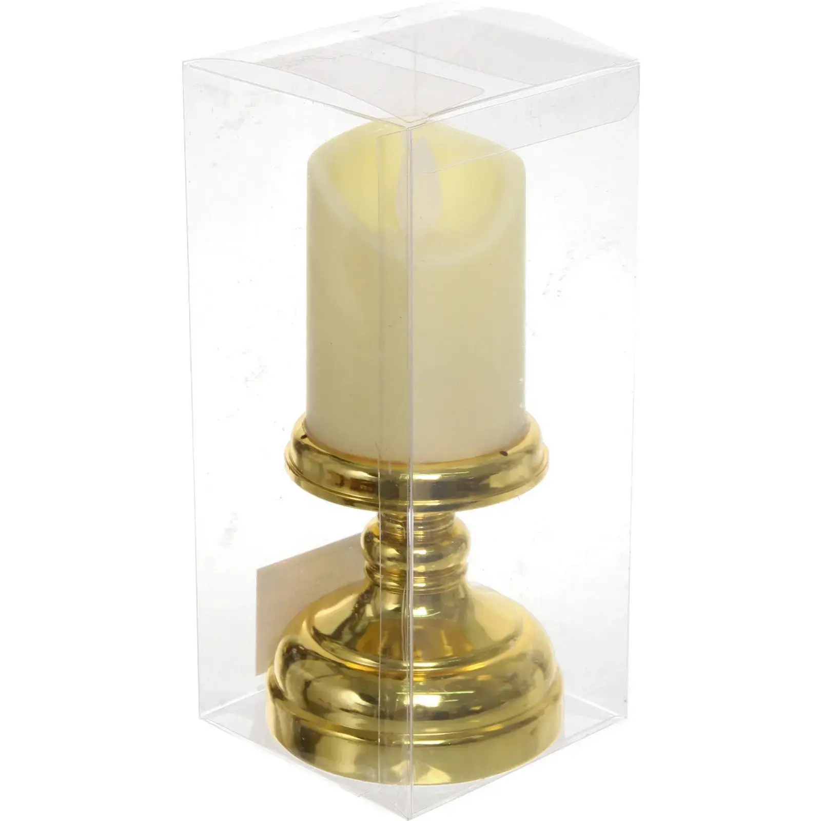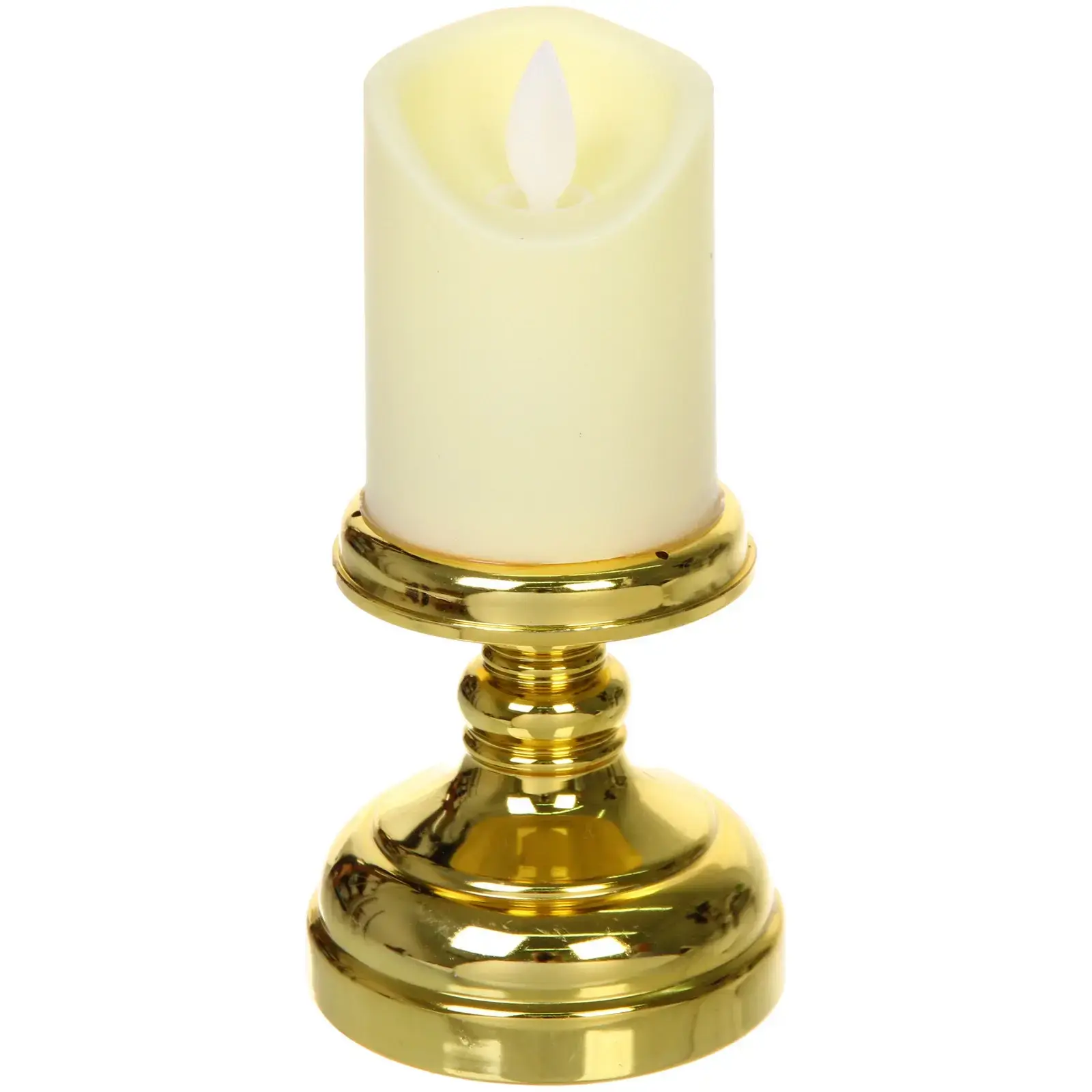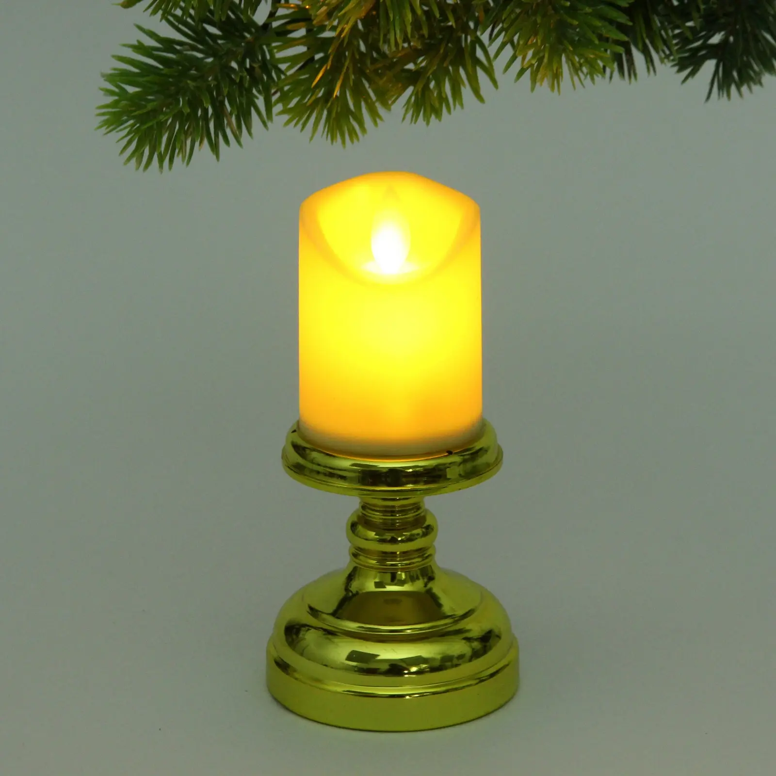 Используйте его для создания расслабляющей обстановки в квартире или офисе, а также как стильный подарок близким. Работает от батареек AAA, что обеспечивает мобильность и удобство эксплуатации. Внешний материал — пластиковый корпус с имитацией свечи и металлическая подставка с глянцевым покрытием, устойчивой к воздействию влаги и механических повреждений. Размер 7,5х15 см делает его компактным и легко размещаемым в любой зоне.
