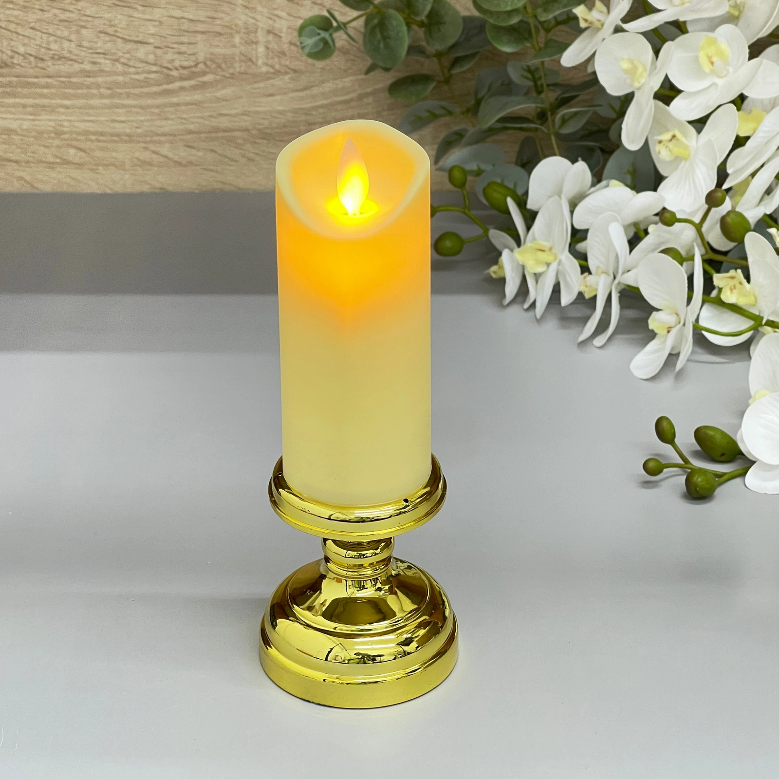 Погрузитесь в мягкое сияние этой LED‑свечи «Шик», которая создаёт атмосферу уюта и тепла даже в самых тихих комнатах. Светоотражающие элементы имитируют пламенеющий огонь, мягко наполняя пространство золотистыми и желтоватыми оттенками.