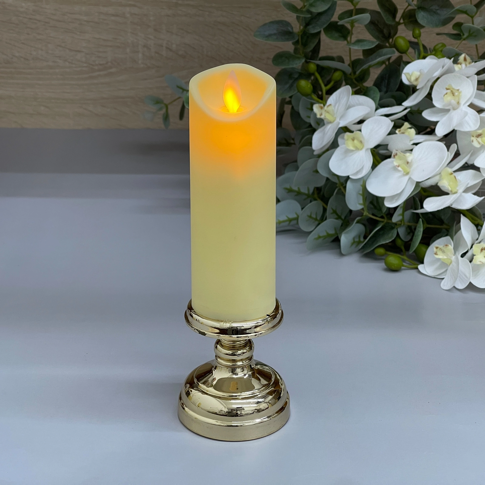 Сувенир «Свеча – Шик» 7,5×23 см – это идеальный элемент декора, который превращает любой уголок в уголок уюта. Плавный жёлто‑оранжевый свет, имитирующий пламя, создаёт атмосферу вечернего отдыха прямо у вас дома.