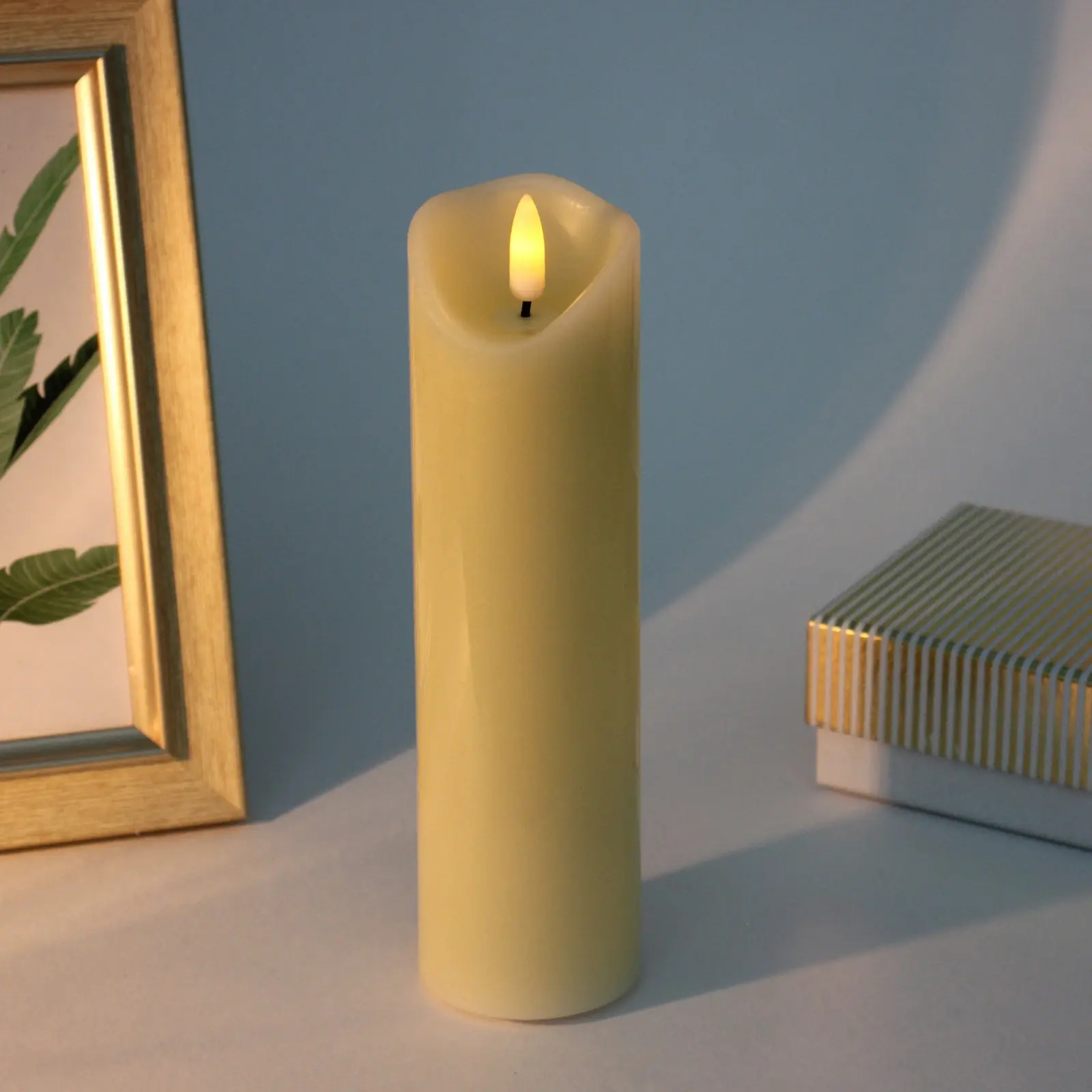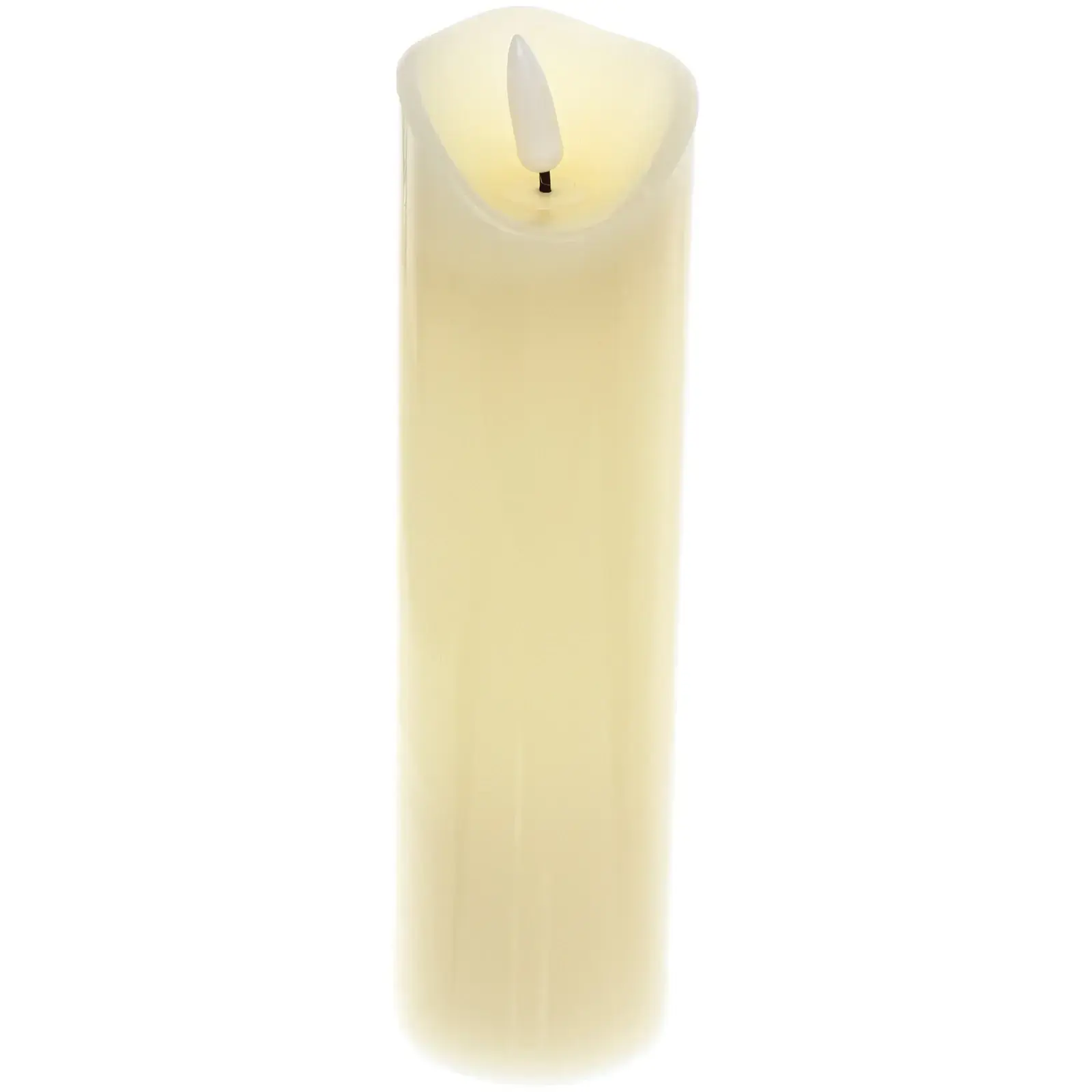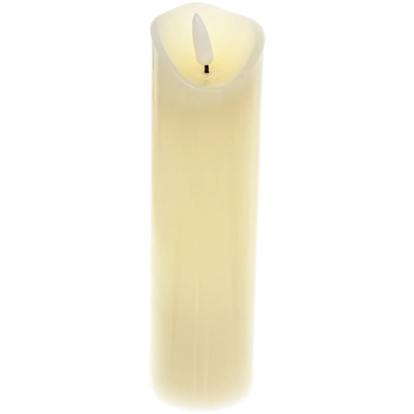 Этот изысканный сувенир в виде восковой свечи высотой 20 см отлично подчеркнёт интерьер и создаст уютную атмосферу. Оснащён встроенной подсветкой, которая имитирует пламя, делая его эффектным украшением для дома или офисных пространств в тёплом светлом оттенке.