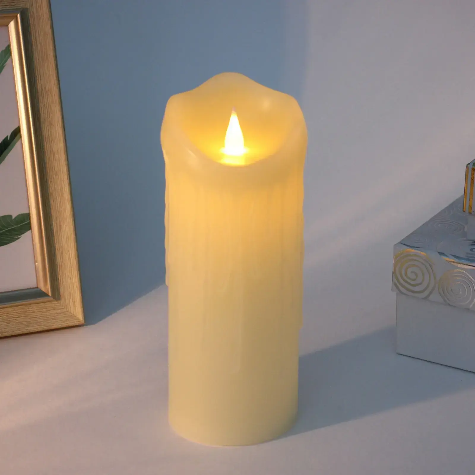 Свеча работает от трёх батареек типа AAA, что позволяет легко разместить её в любом месте без необходимости использовать провода. Она станет отличным украшением гостиной, спальни или террасы, а также подойдёт для декора на свадьбу, вечеринки или фотосъёмку.