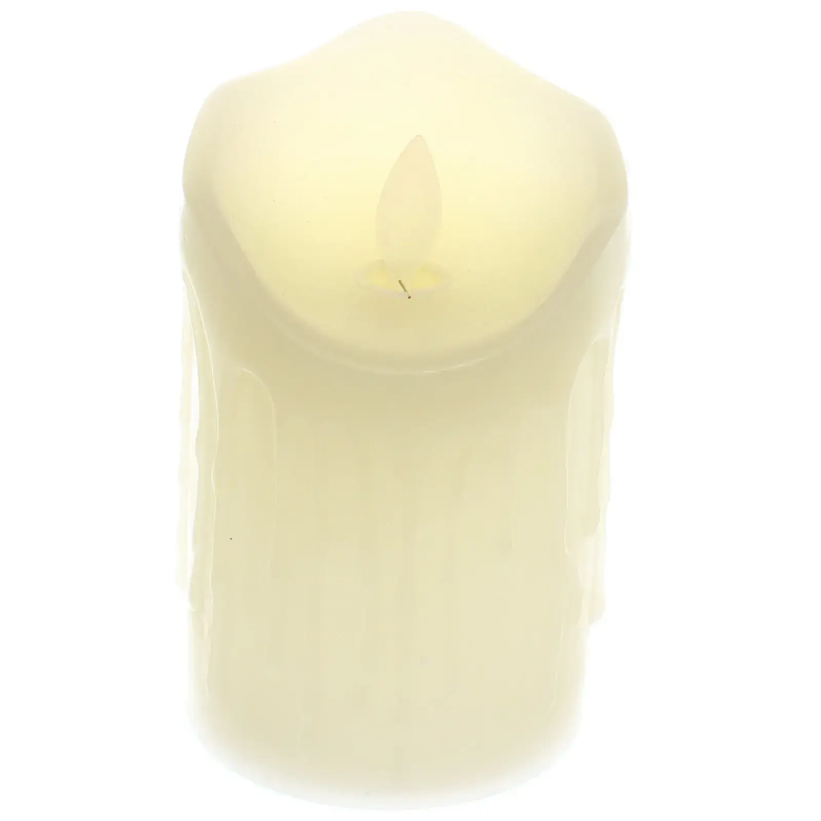 Материал: воск и пластик. Цвет: светло‑бежовый. Работает от 3 AAA‑батареек. Размеры: 7,5 × 12,5 см. Внутреннее светодиодное кольцо обеспечивает ровный свет.