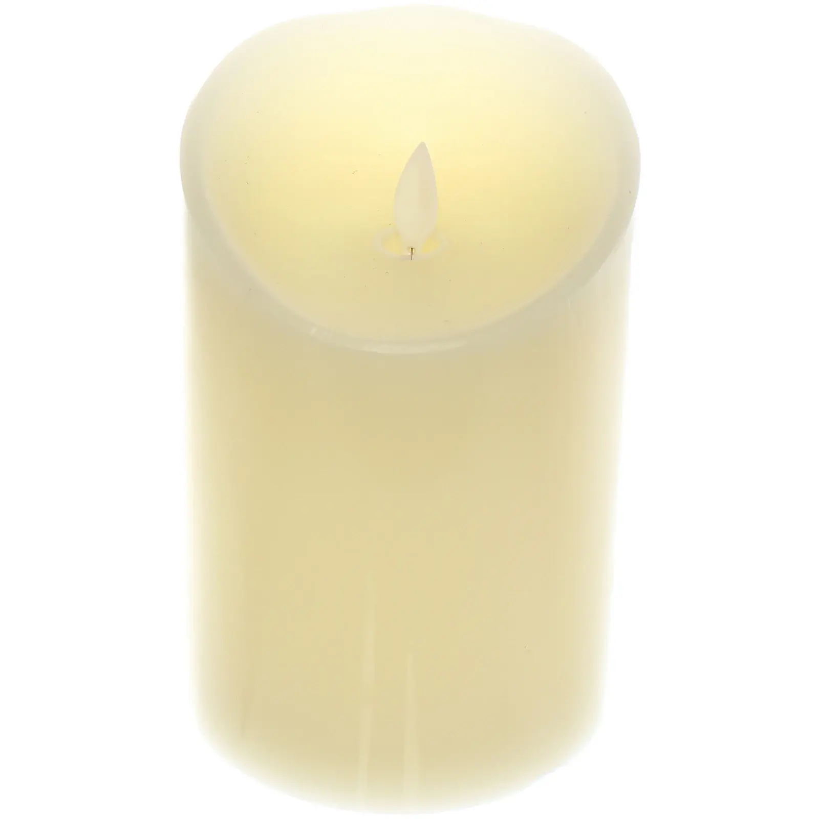 Размер свечи — 10×15 см, форма цилиндрическая, цвет светло-жёлтый или кремовый. Поверхность гладкая, верх с углублением под декоративное пламя. Материалы: воск и пластик. Отгружается один товар.