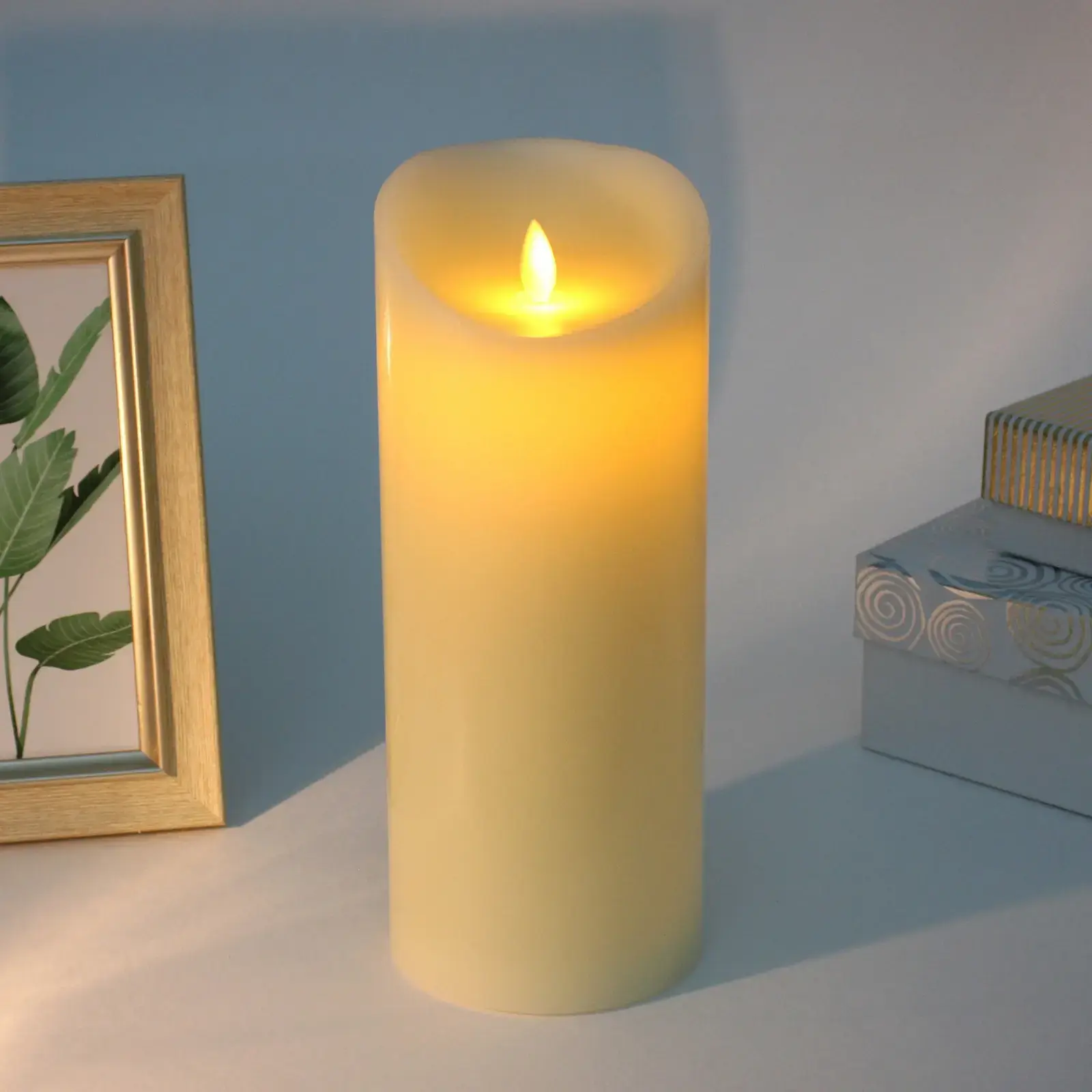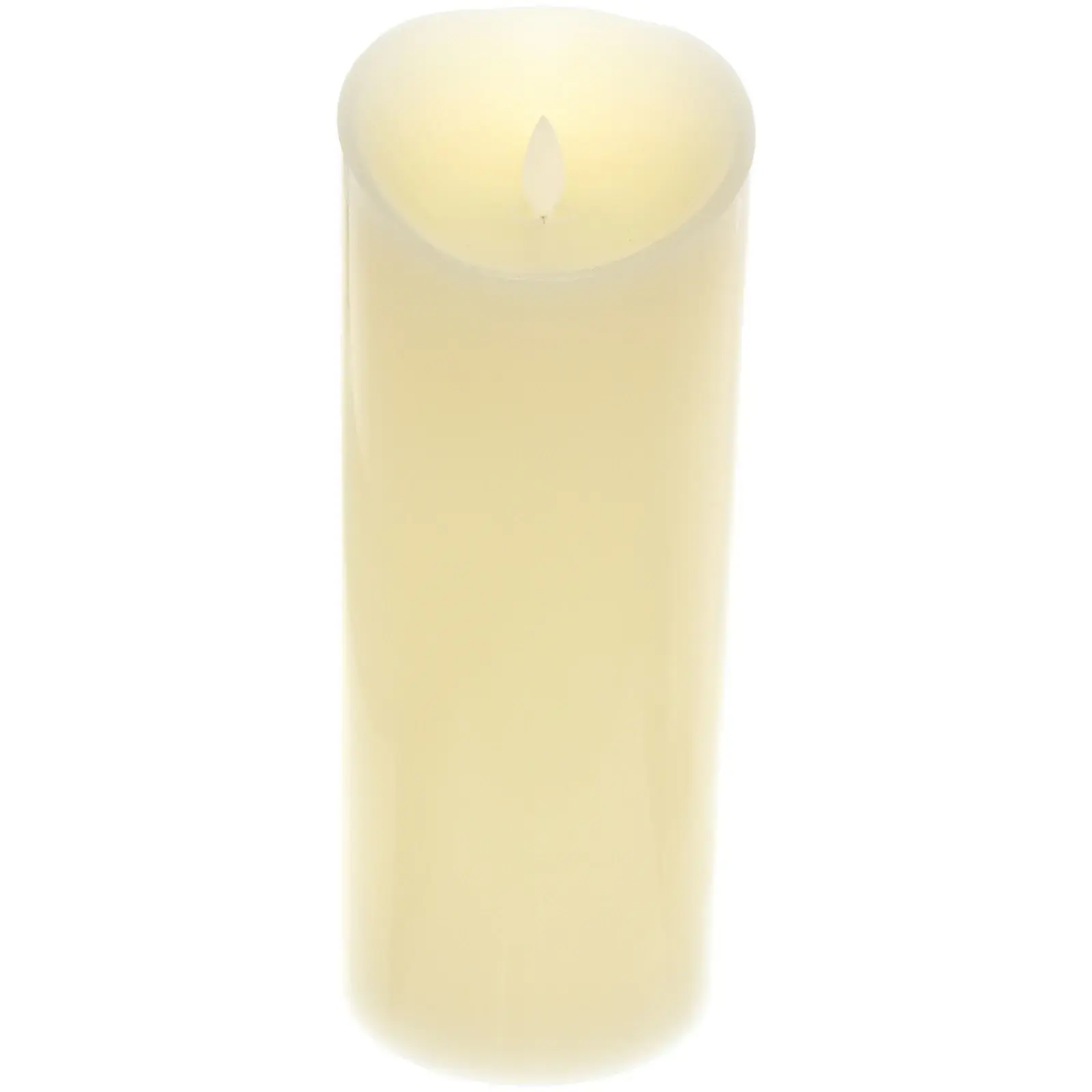 Высота свечи — 25 см, диаметр — 10 см. Свет теплого желто-оранжевого оттенка создает мягкое освещение, уместное как в повседневной обстановке, так и на торжественных мероприятиях. Компактные размеры позволяют легко вписать свечу в любой интерьер, а автономная работа даёт свободу выбора места установки.