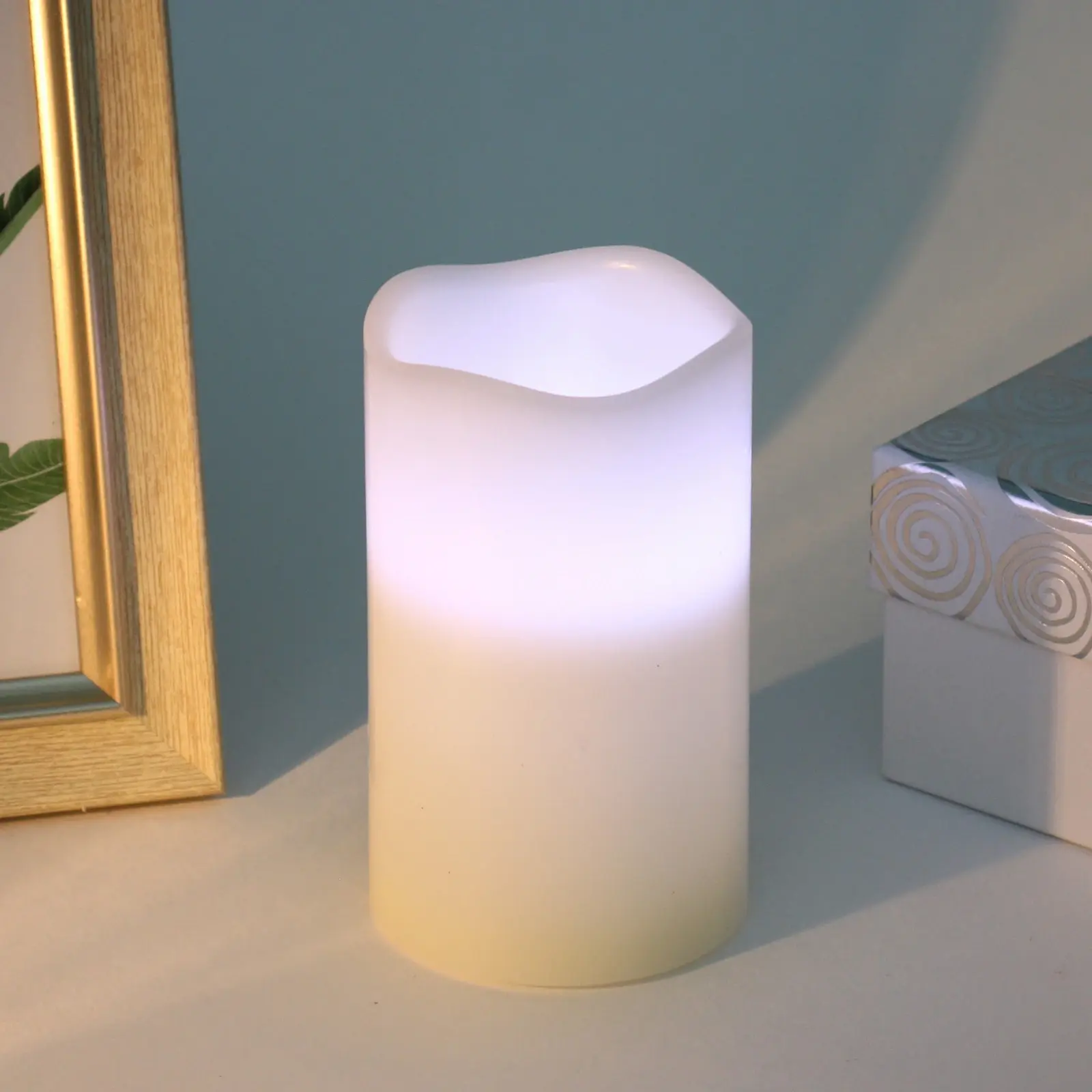 Изготовлен из воска и пластика, что гарантирует долговечность и безопасность использования. Размер изделия (7,5х12,5 см) обеспечивает его универсальность для украшения столов, полок или свечных композиции, а внутри расположена светящаяся часть, имитирующая пламя свечи.