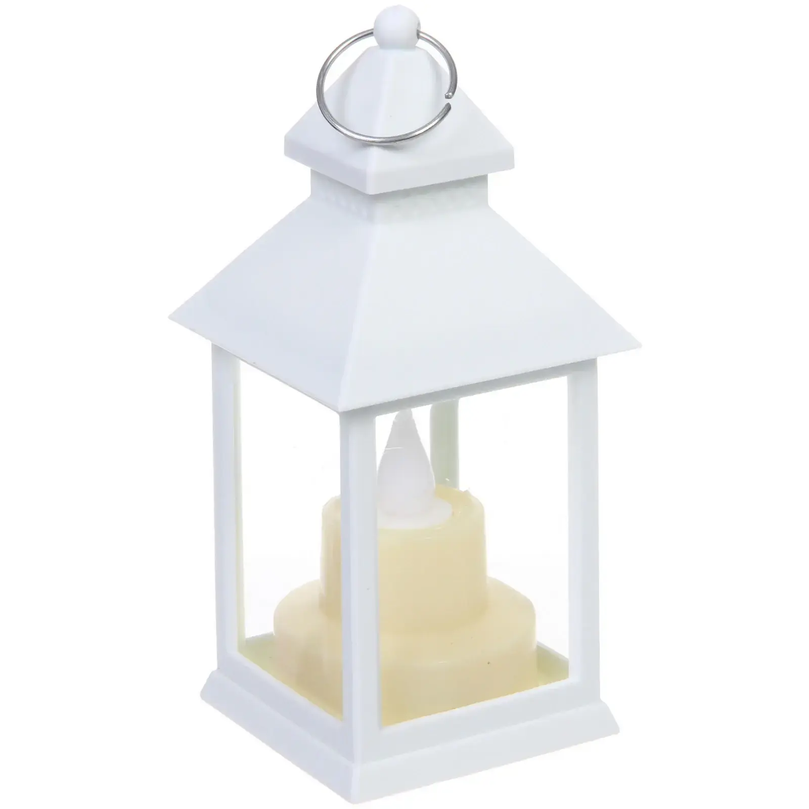 Фонарь выполнен из качественного пластика, что обеспечивает его долговечность и легкость. Прозрачные панели позволяют видеть внутреннюю часть фонаря, создавая эффект настоящего пламени. Его белый цвет и геометрическая форма делают фонарь стильным элементом декора, который будет радовать вас и ваших гостей.