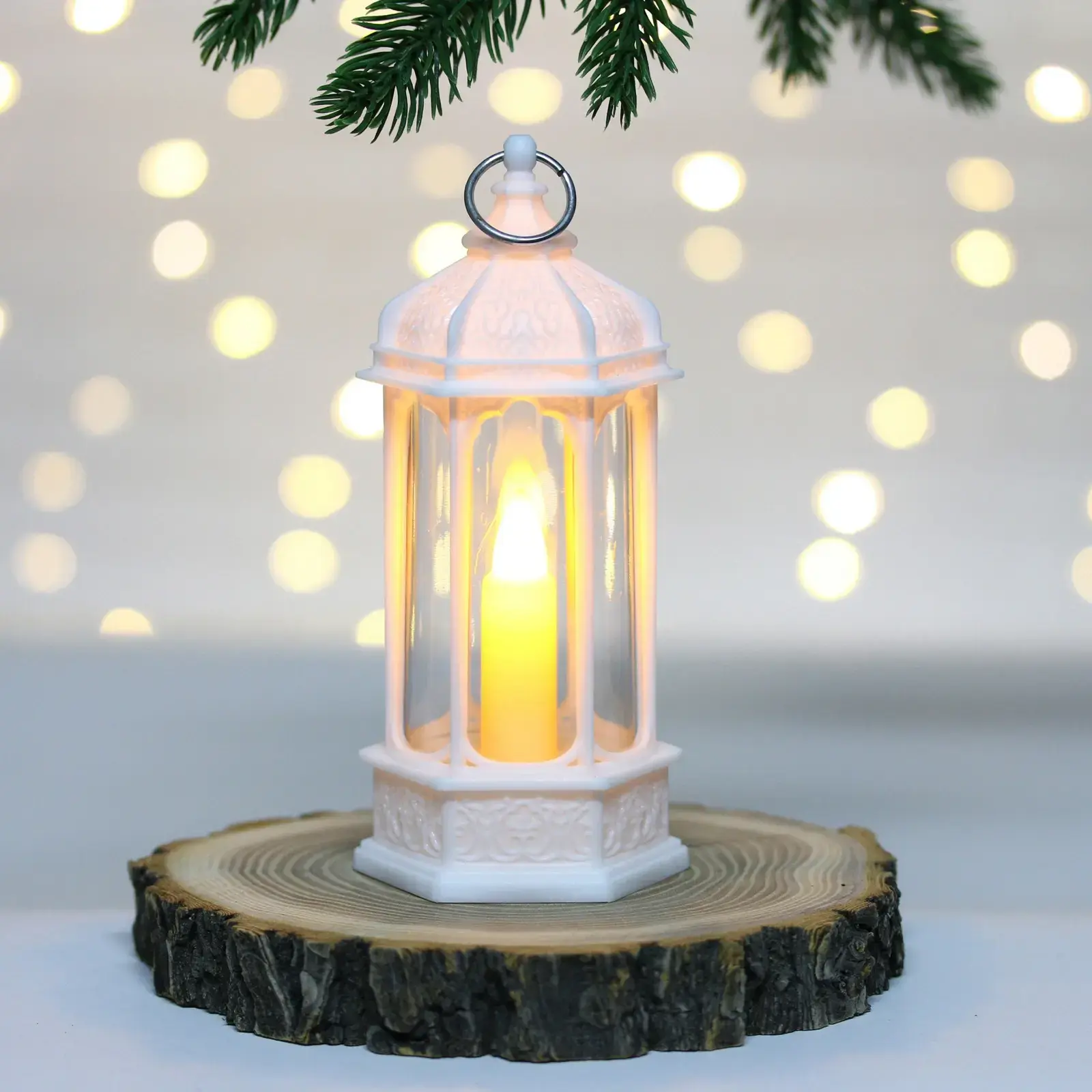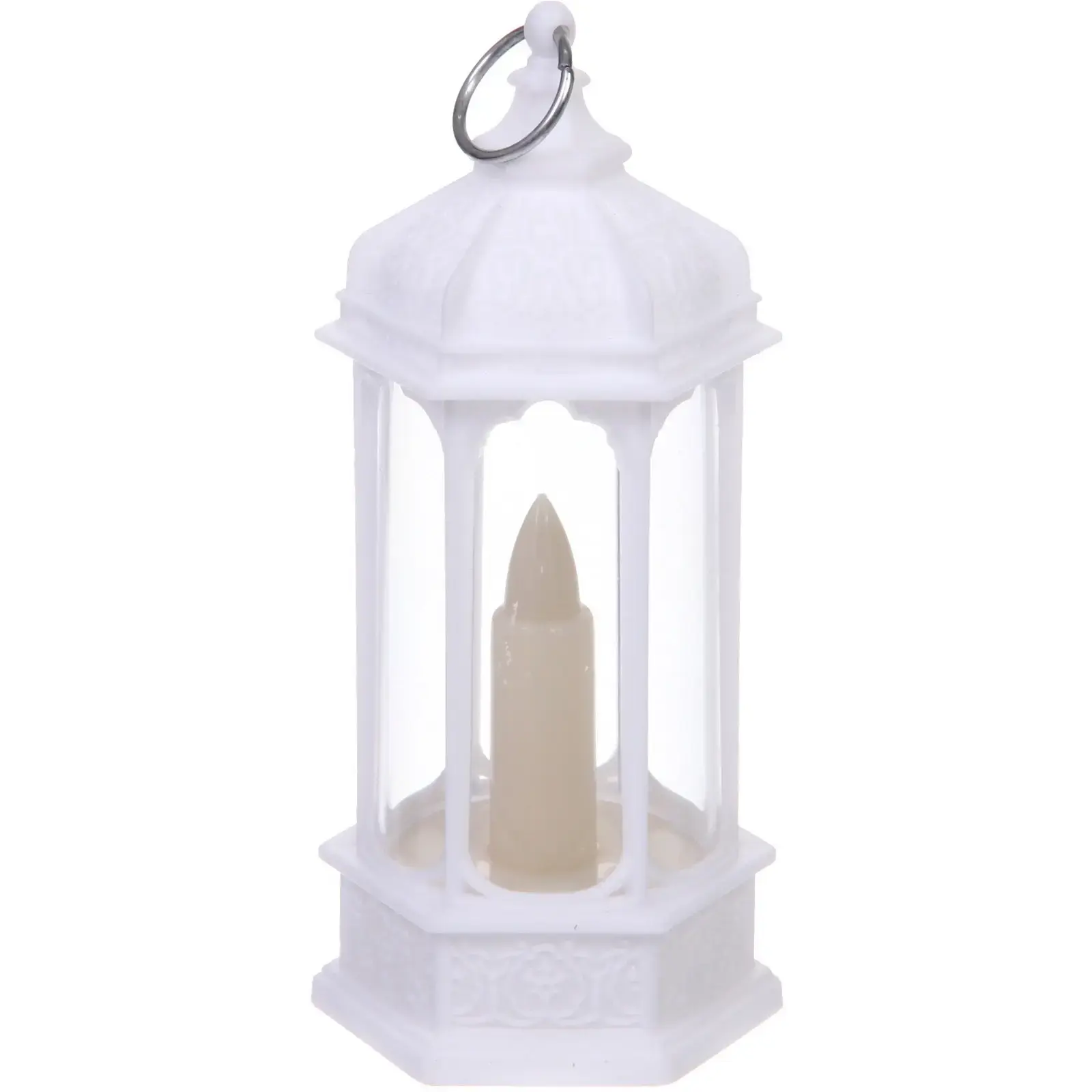 Фонарь выполнен из белого пластика с прозрачными элементами, что создает эффект свечи внутри. Он работает от трех батареек LR44, что делает его удобным в использовании — не нужно беспокоиться о проводах и розетках. Благодаря кольцу для подвешивания, вы можете легко разместить его в любом удобном месте, будь то на столе, полке или на стене. Этот светильник идеально подходит для создания романтической обстановки на ужине или для украшения праздников.