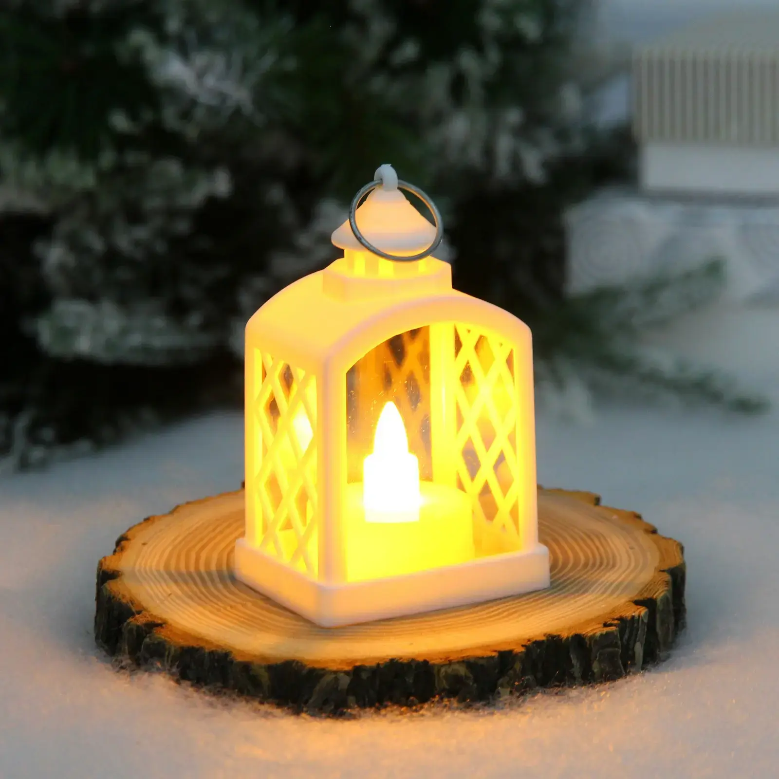 Этот маленький фонарь удобно размещать на полке, столе или подставке. Металлическое кольцо на верхней части позволяет повесить его там, где свет будет заметен, а светлая внутренняя подсветка создаёт эффект свечи без риска ожога. Отлично подходит для интерьеров, гостиных, спален и детских комнат, а также как практичный и стильный элемент декора на праздники или повседневные вечера.